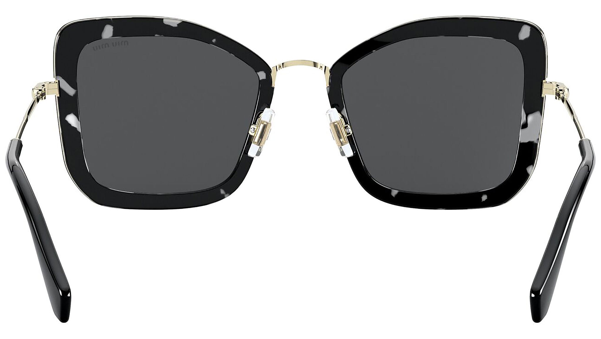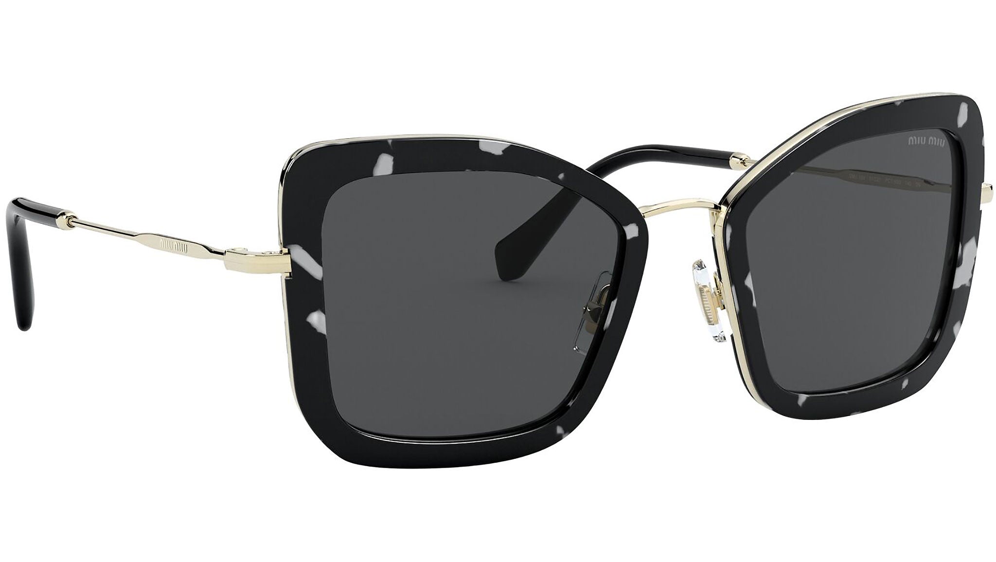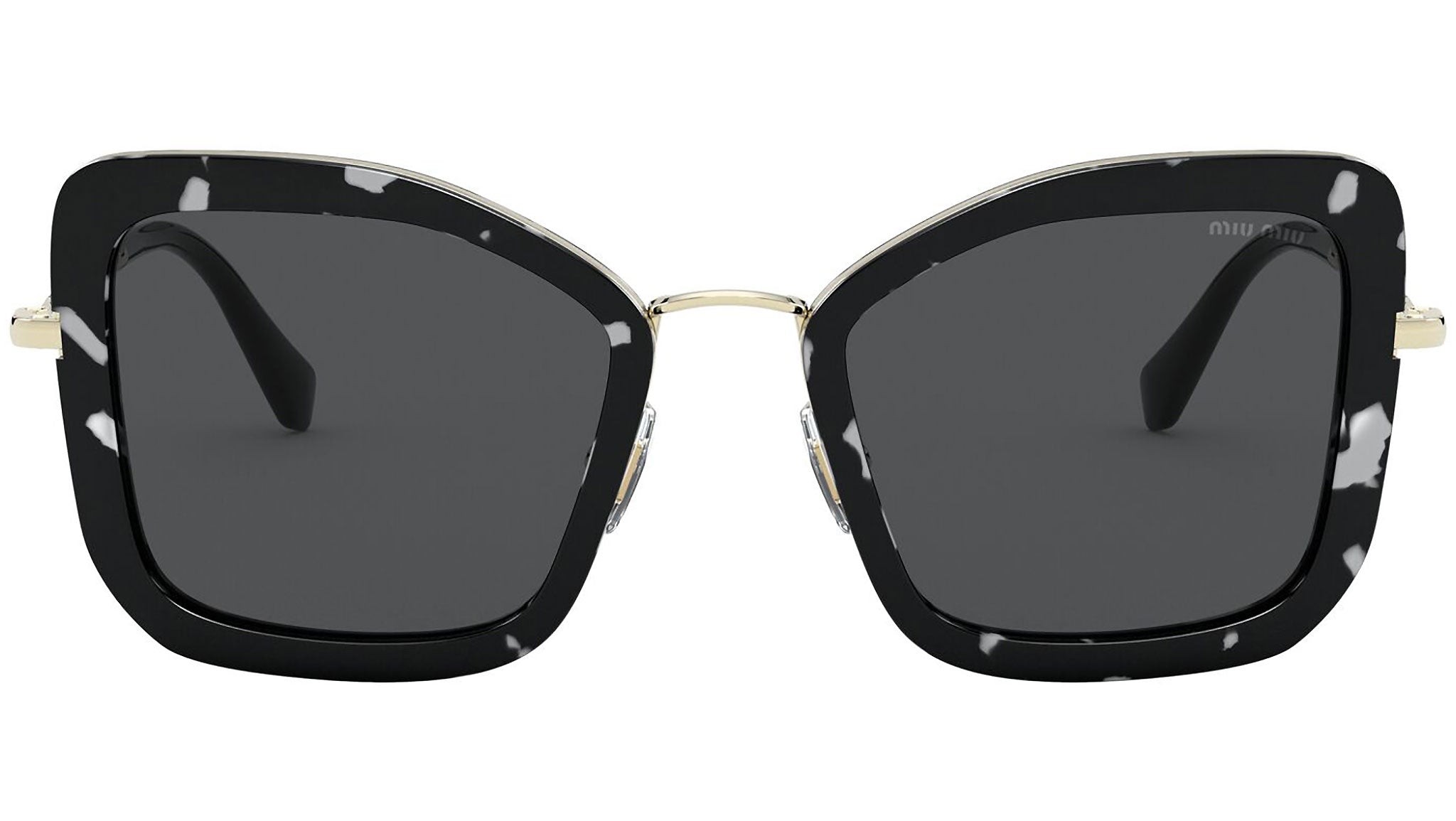 Occhiali da sole Miu Miu modello MU 55VS variante colore PC75S0 avana bianco e nero, con lenti color grigio scuro. Miu Miu offre creazioni uniche, in cui la costante ricerca stilistica si combina perfettamente con la maestria artigianale della lavorazione. Le silhouette femminili e sinuose delle montature sono espressione di una ricchezza dei dettagli che rispecchia pienamente i codici stilistici e l’indiscusso talento del brand nell’unire il design non convenzionale ad un romanticismo dai rimandi retrò.