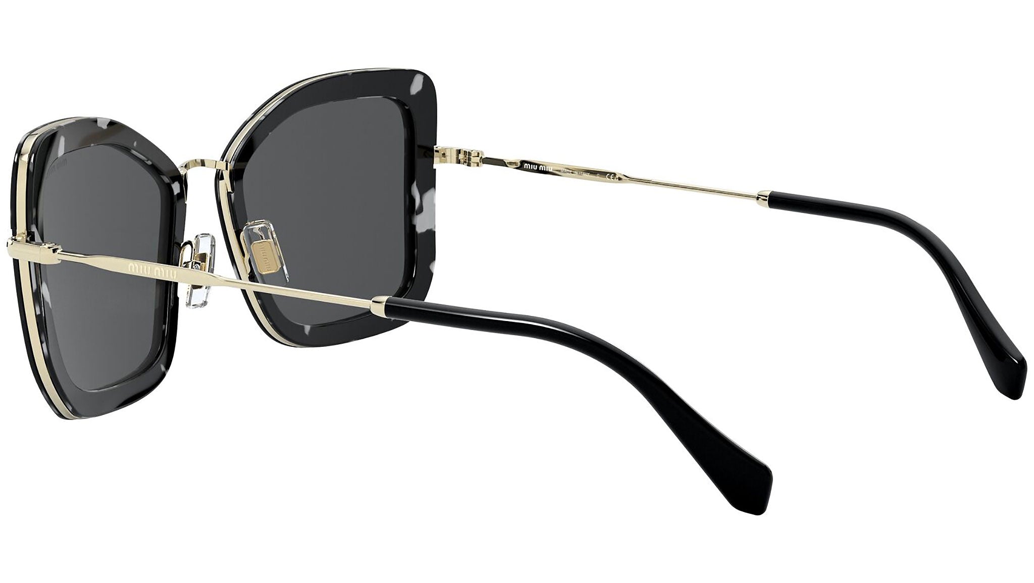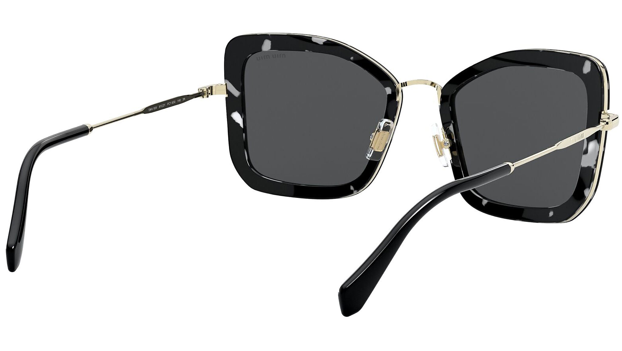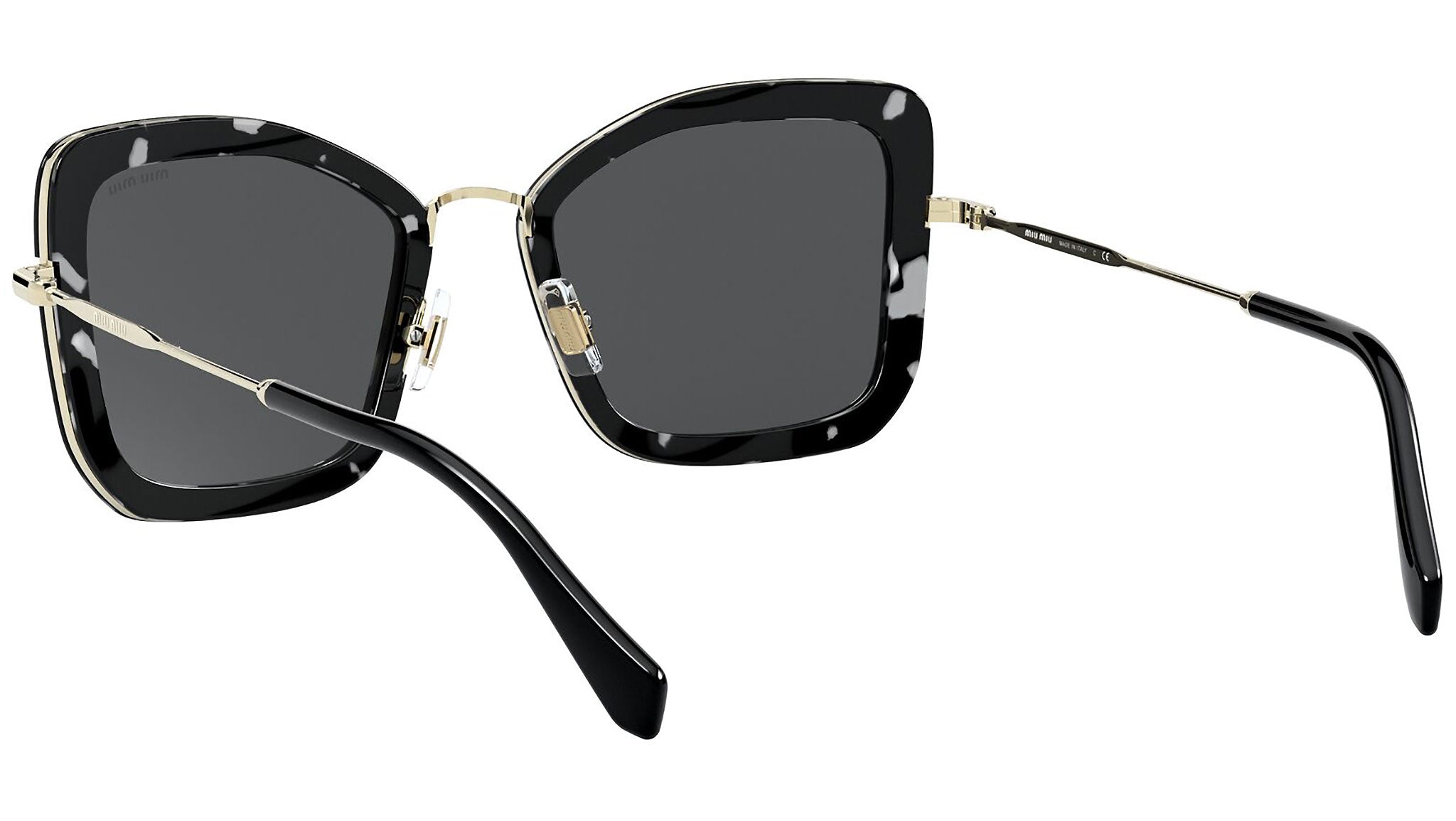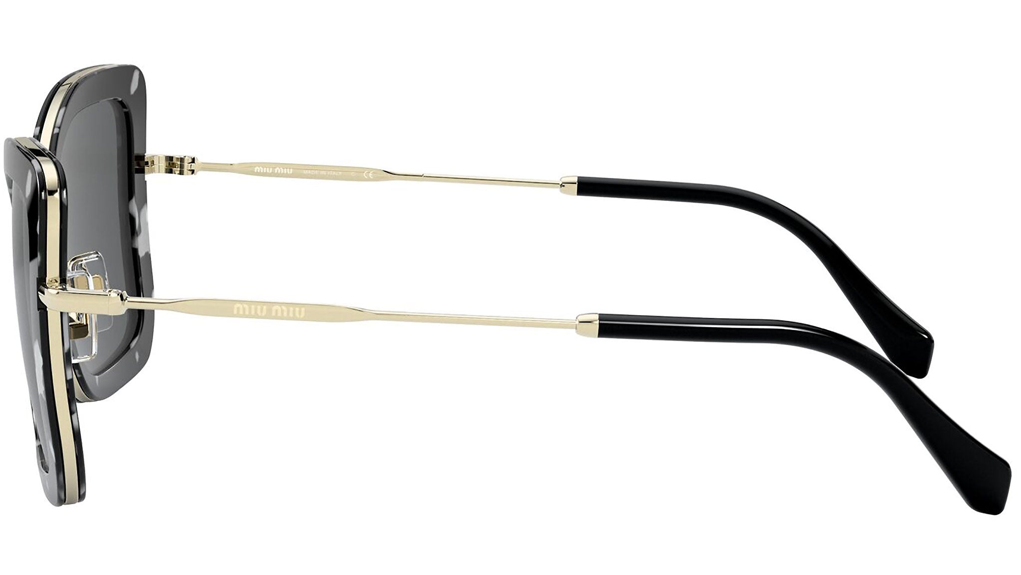 Occhiali da sole Miu Miu modello MU 55VS variante colore PC75S0 avana bianco e nero, con lenti color grigio scuro. Miu Miu offre creazioni uniche, in cui la costante ricerca stilistica si combina perfettamente con la maestria artigianale della lavorazione. Le silhouette femminili e sinuose delle montature sono espressione di una ricchezza dei dettagli che rispecchia pienamente i codici stilistici e l’indiscusso talento del brand nell’unire il design non convenzionale ad un romanticismo dai rimandi retrò.