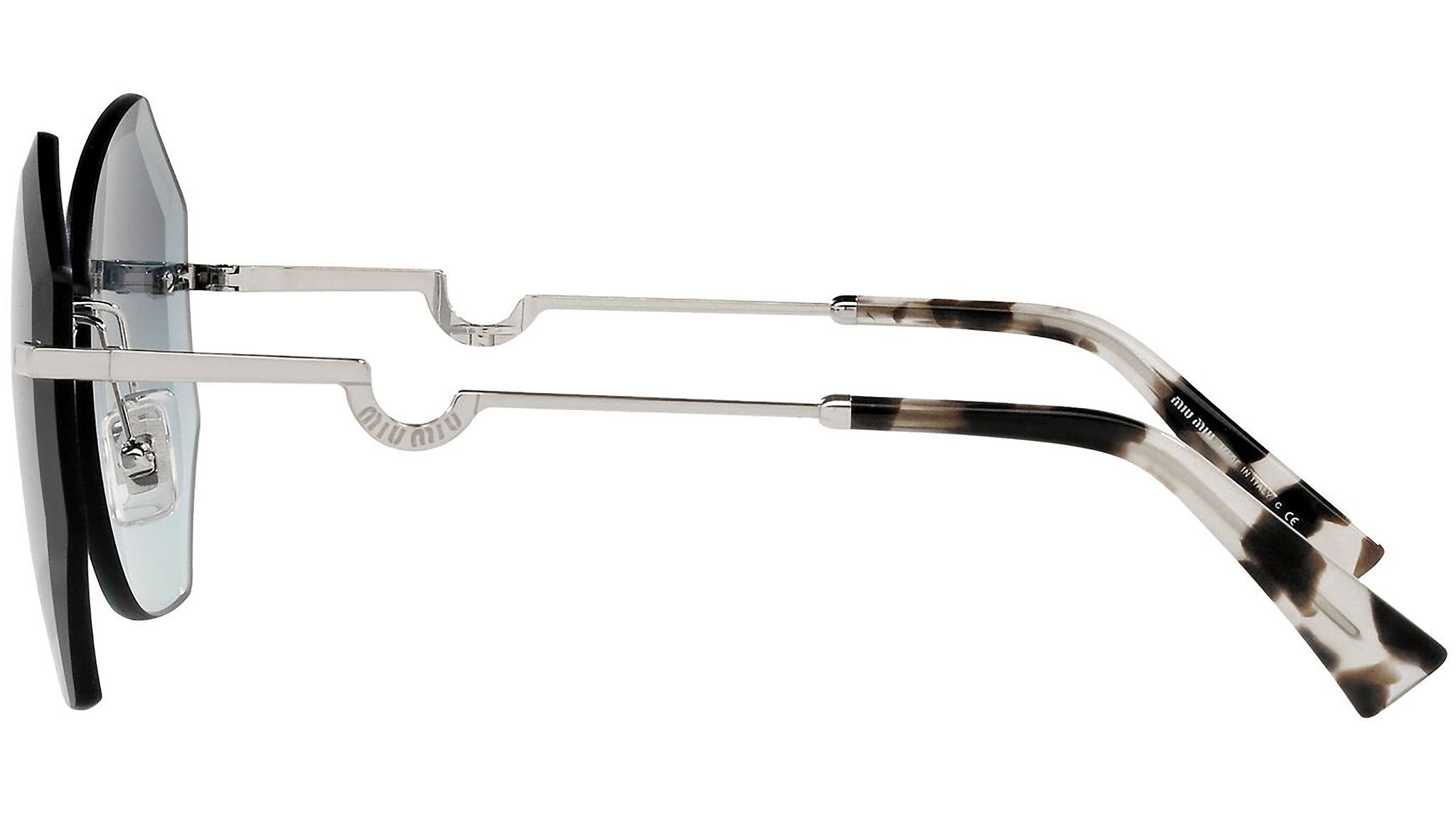 Occhiali da sole Miu Miu modello MU 55XS variante colore 1BC05N argento, con lenti color azzurro sfumato blu scuro. Miu Miu offre creazioni uniche, in cui la costante ricerca stilistica si combina perfettamente con la maestria artigianale della lavorazione. Le silhouette femminili e sinuose delle montature sono espressione di una ricchezza dei dettagli che rispecchia pienamente i codici stilistici e l’indiscusso talento del brand nell’unire il design non convenzionale ad un romanticismo dai rimandi retrò.