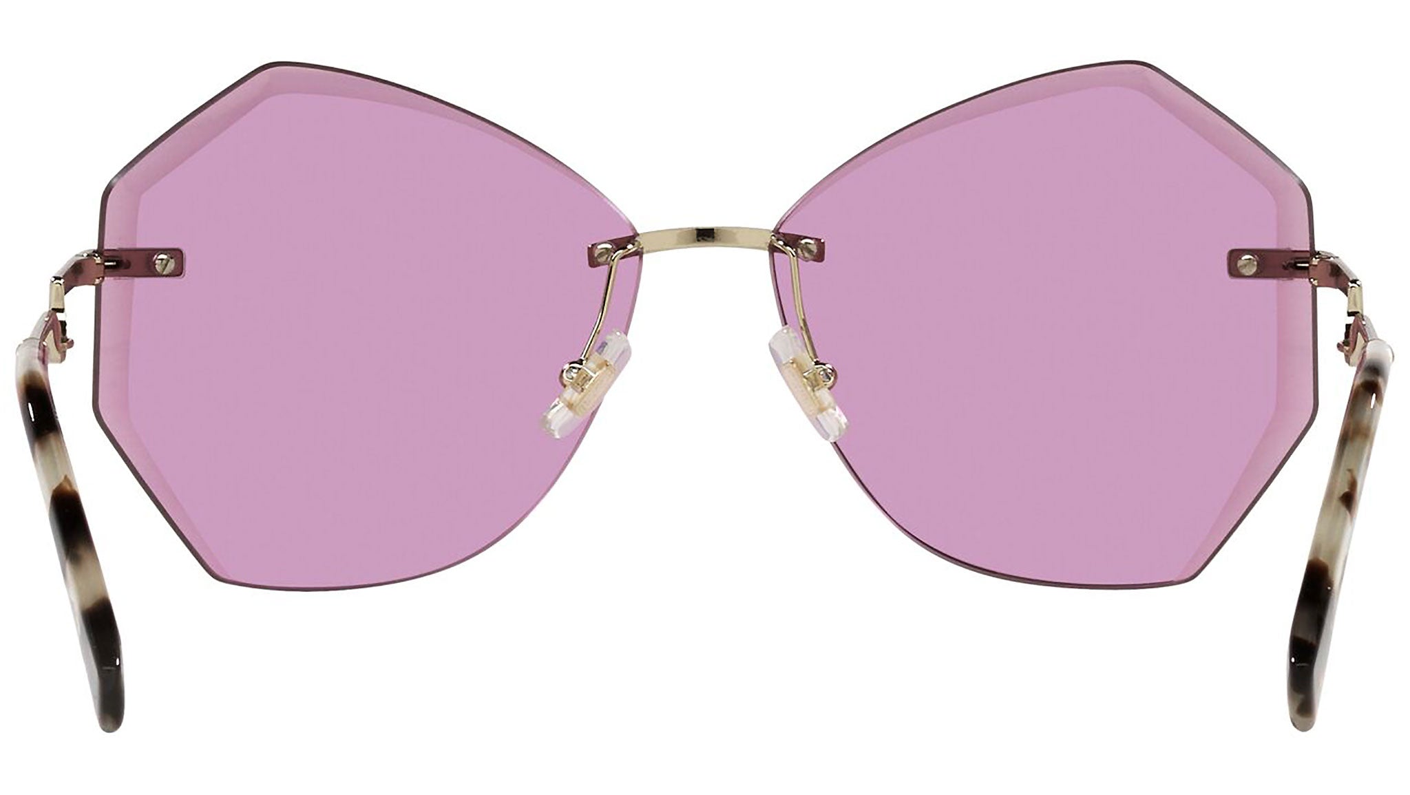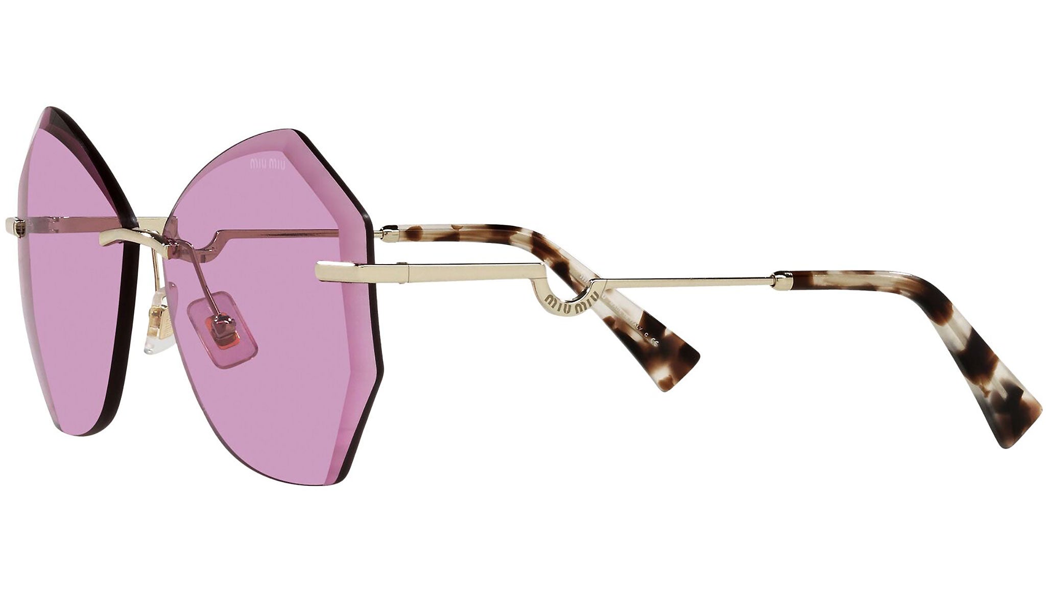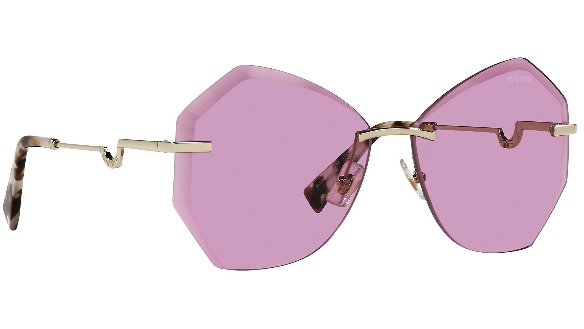 Occhiali da sole Miu Miu modello MU 55XS variante colore ZVN0B4 oro chiaro, con lenti color viola scuro. Miu Miu offre creazioni uniche, in cui la costante ricerca stilistica si combina perfettamente con la maestria artigianale della lavorazione. Le silhouette femminili e sinuose delle montature sono espressione di una ricchezza dei dettagli che rispecchia pienamente i codici stilistici e l’indiscusso talento del brand nell’unire il design non convenzionale ad un romanticismo dai rimandi retrò.