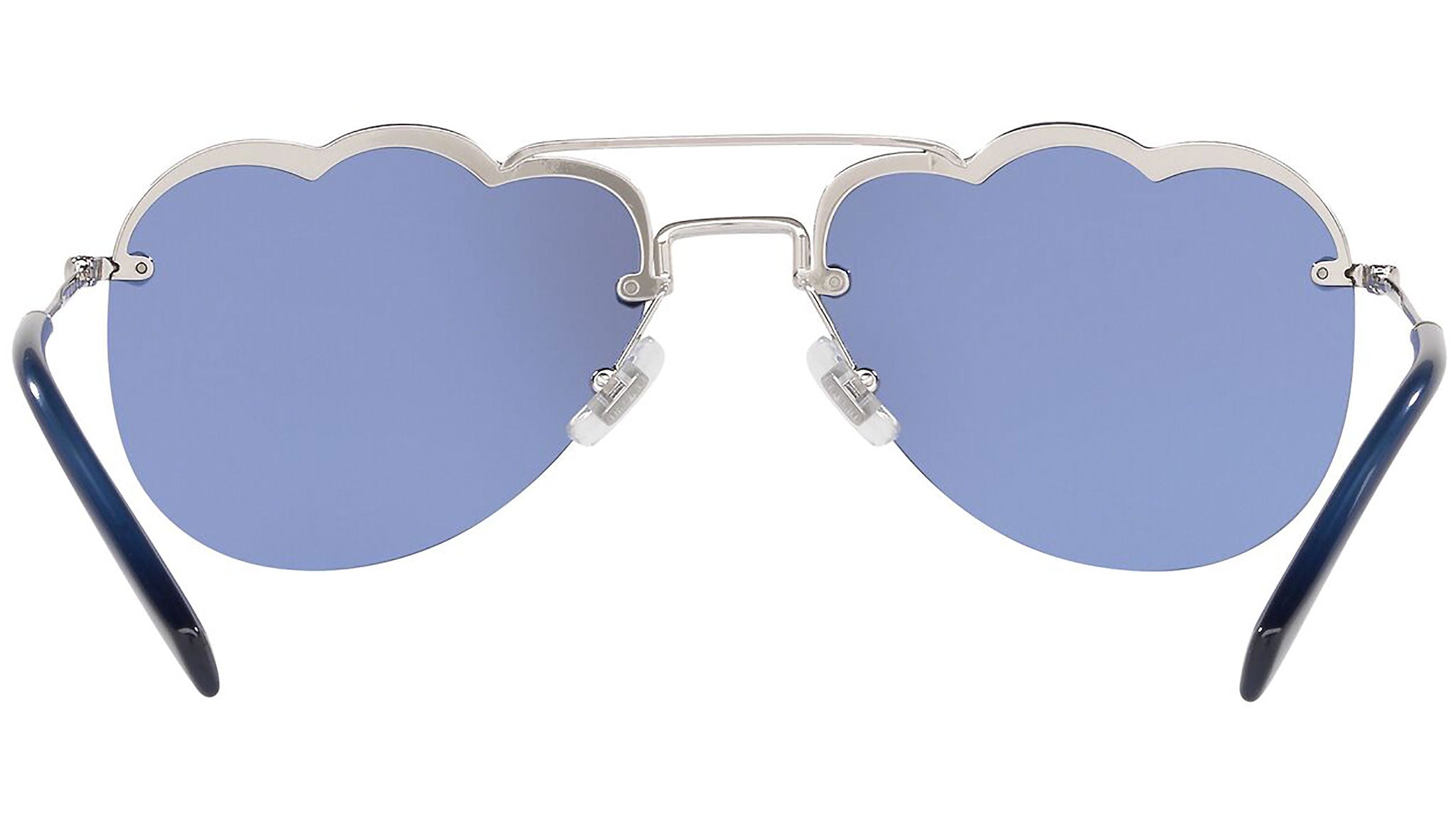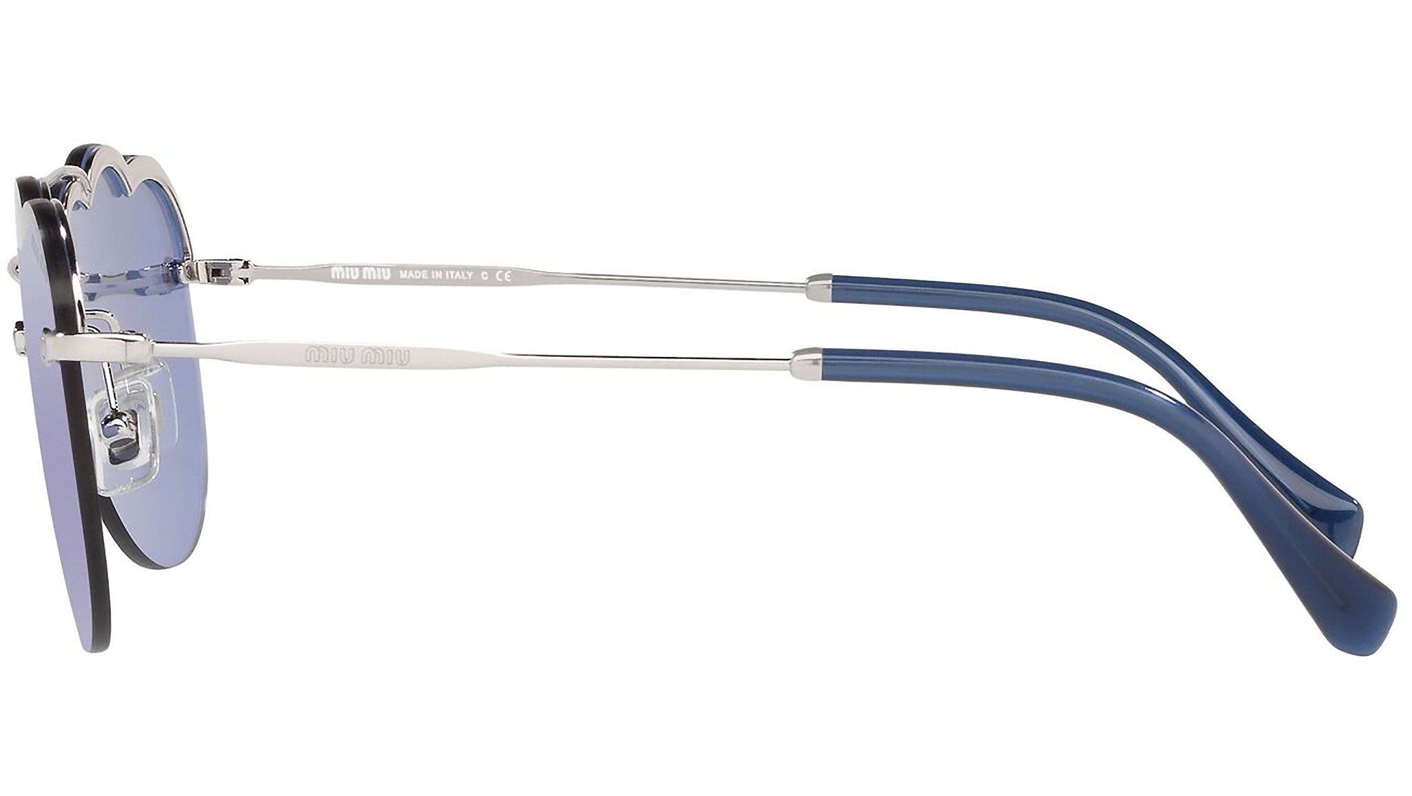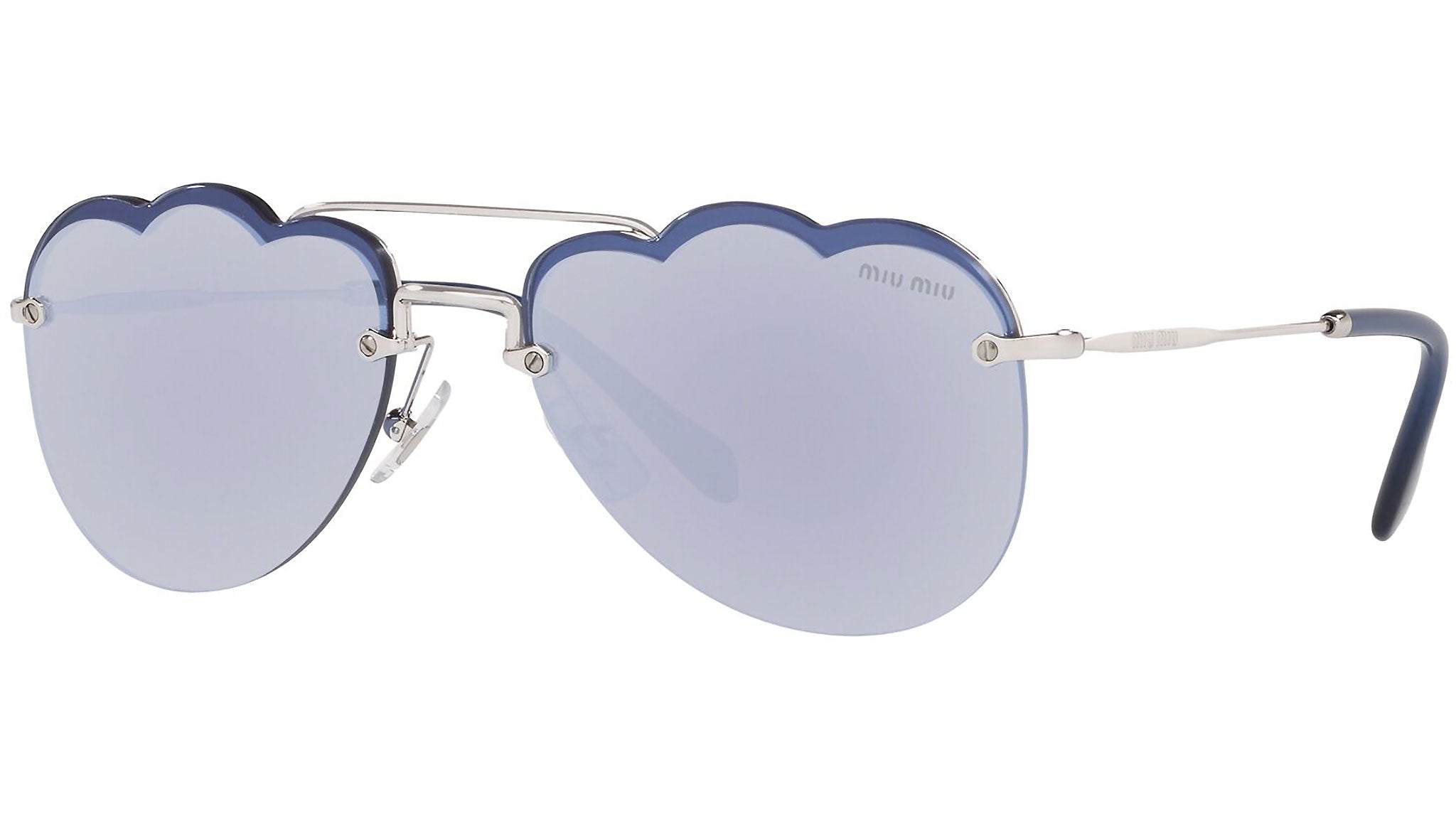 Occhiali da sole Miu Miu modello MU 56US variante colore 1BC178 argento, con lenti color viola scuro a specchio argento . Miu Miu offre creazioni uniche, in cui la costante ricerca stilistica si combina perfettamente con la maestria artigianale della lavorazione. Le silhouette femminili e sinuose delle montature sono espressione di una ricchezza dei dettagli che rispecchia pienamente i codici stilistici e l’indiscusso talento del brand nell’unire il design non convenzionale ad un romanticismo dai rimandi retrò.