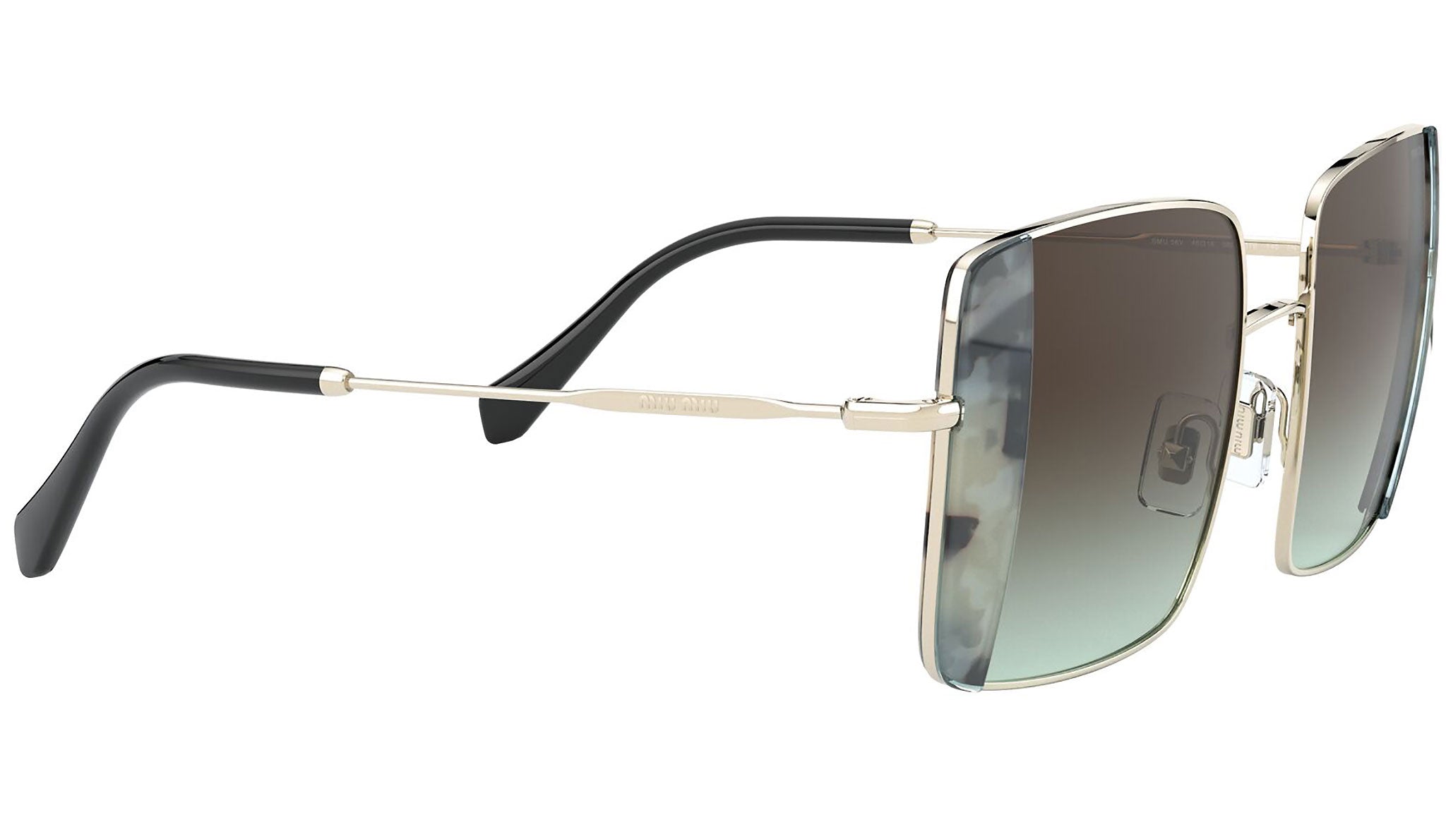 Occhiali da sole Miu Miu modello MU 56VS variante colore 08D07B oro chiaro e avana chiaro blu, con lenti color verde chiaro sfumato marrone. Miu Miu offre creazioni uniche, in cui la costante ricerca stilistica si combina perfettamente con la maestria artigianale della lavorazione. Le silhouette femminili e sinuose delle montature sono espressione di una ricchezza dei dettagli che rispecchia pienamente i codici stilistici e l’indiscusso talento del brand nell’unire il design non convenzionale ad un romanticismo dai rimandi retrò.