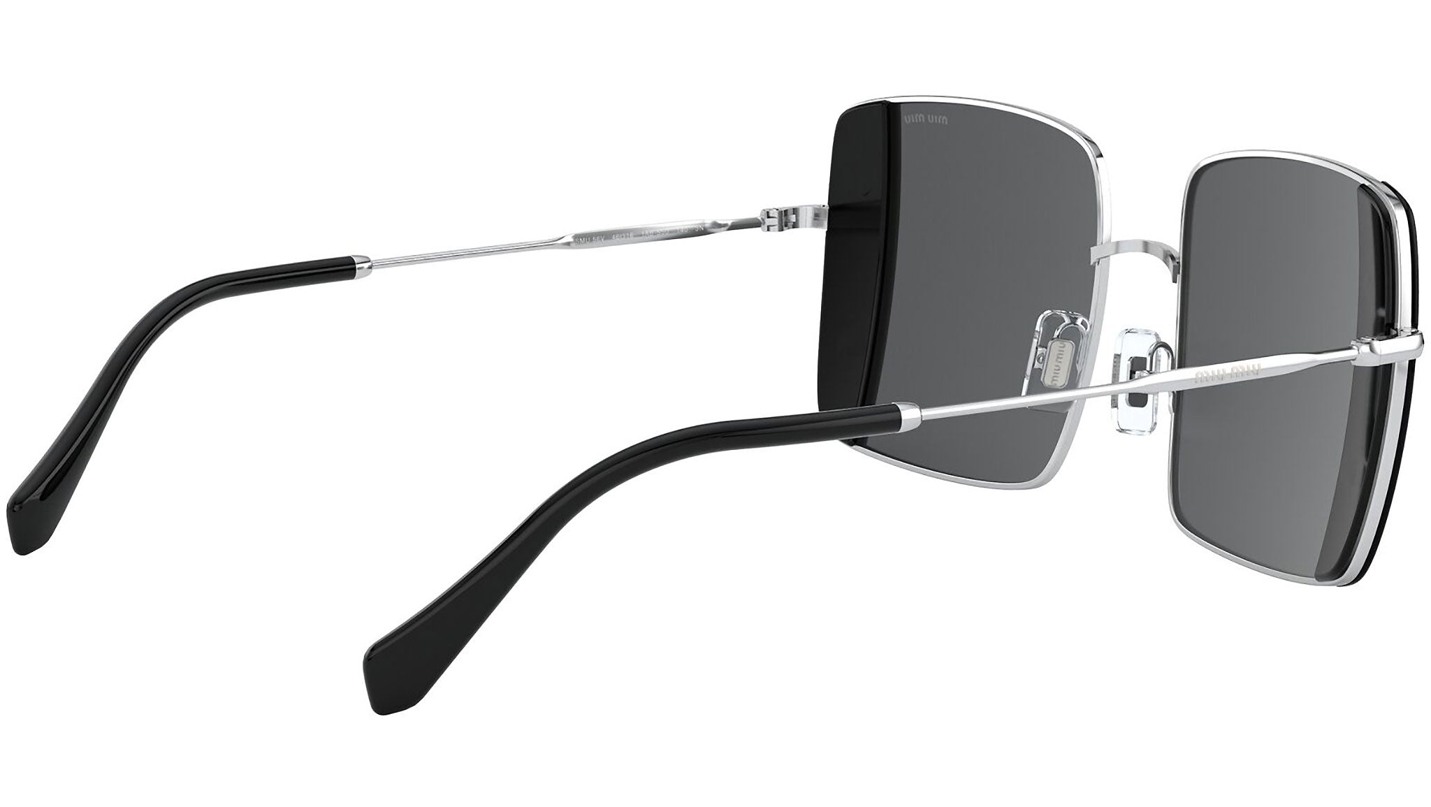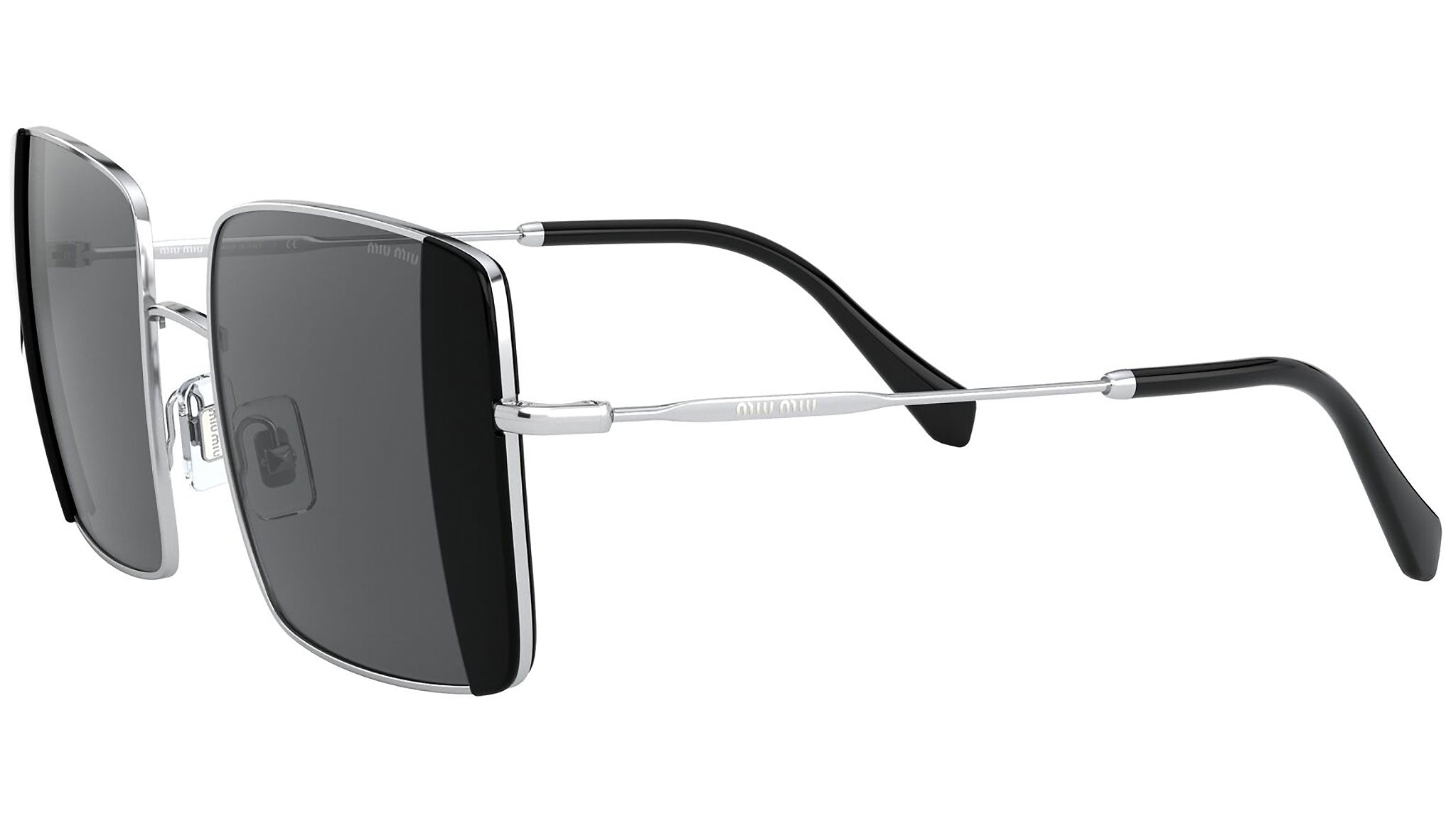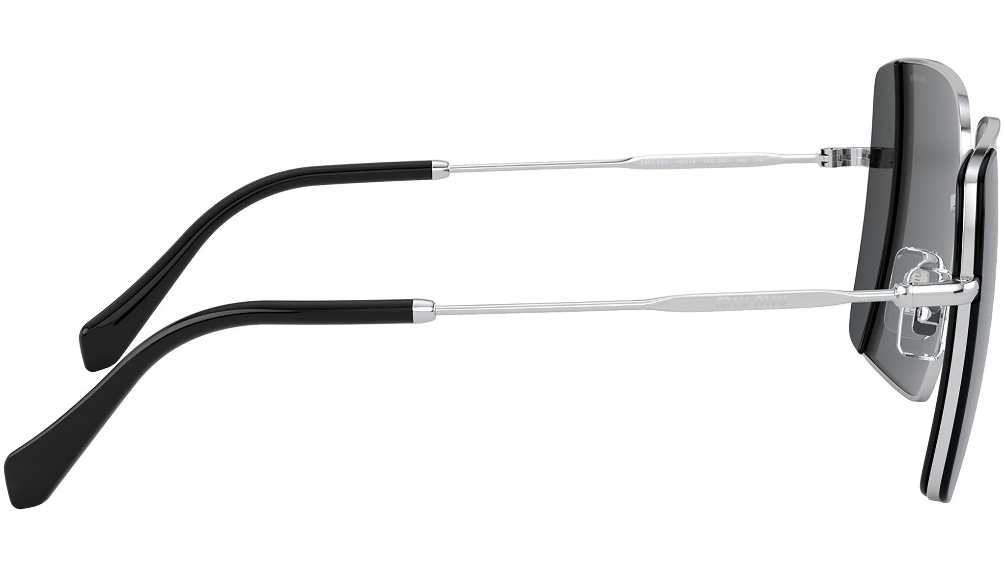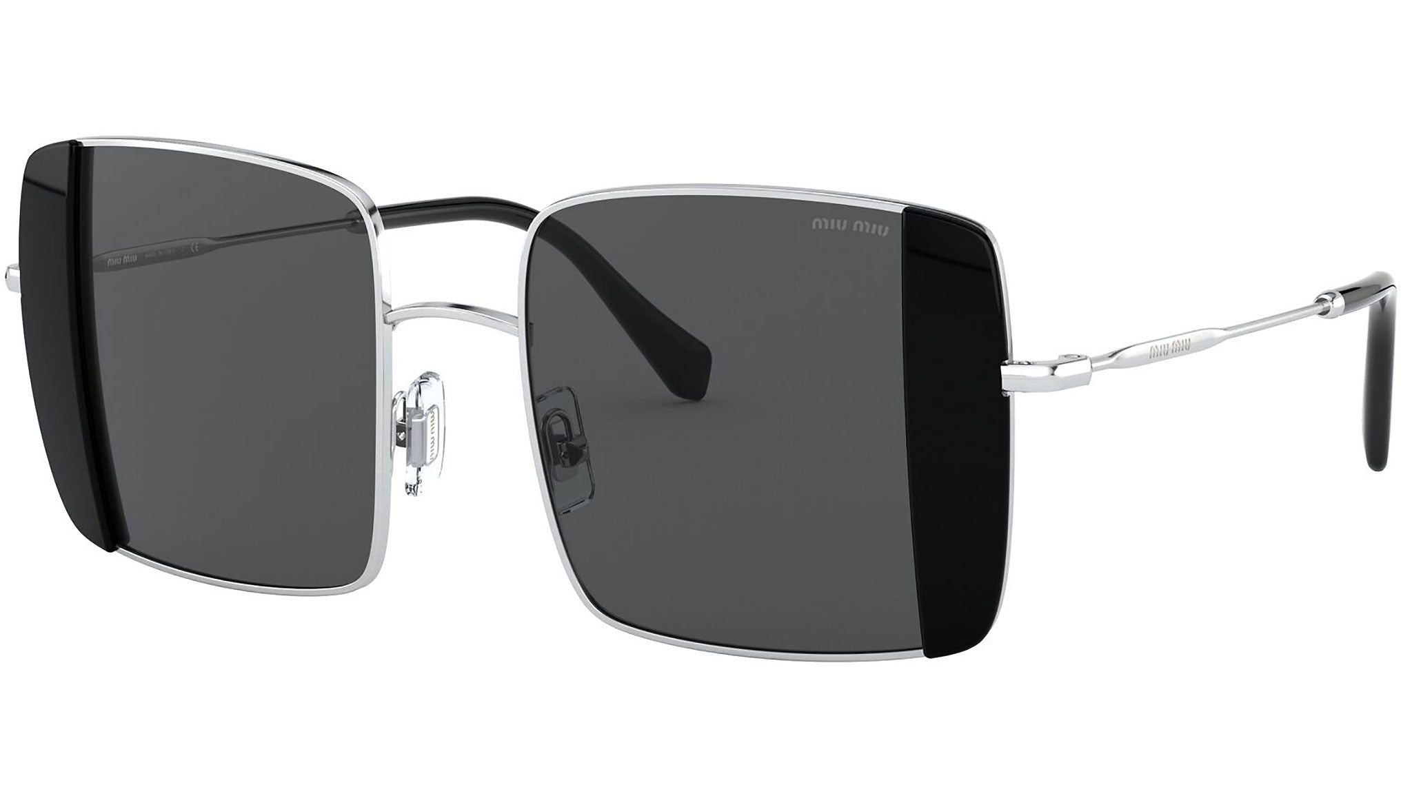 Occhiali da sole Miu Miu modello MU 56VS variante colore 1AB5S0 argento e nero, con lenti color grigio. Miu Miu offre creazioni uniche, in cui la costante ricerca stilistica si combina perfettamente con la maestria artigianale della lavorazione. Le silhouette femminili e sinuose delle montature sono espressione di una ricchezza dei dettagli che rispecchia pienamente i codici stilistici e l’indiscusso talento del brand nell’unire il design non convenzionale ad un romanticismo dai rimandi retrò.