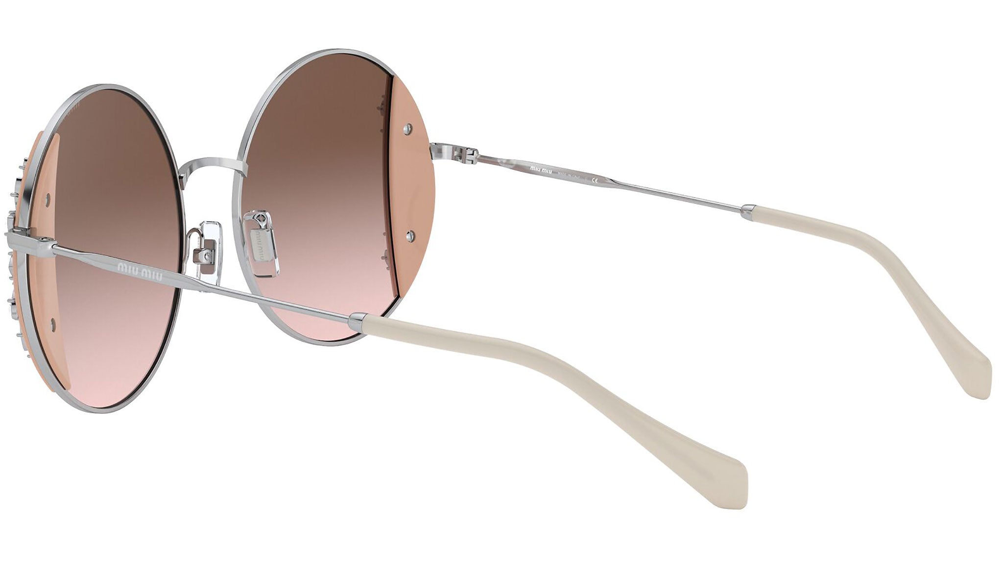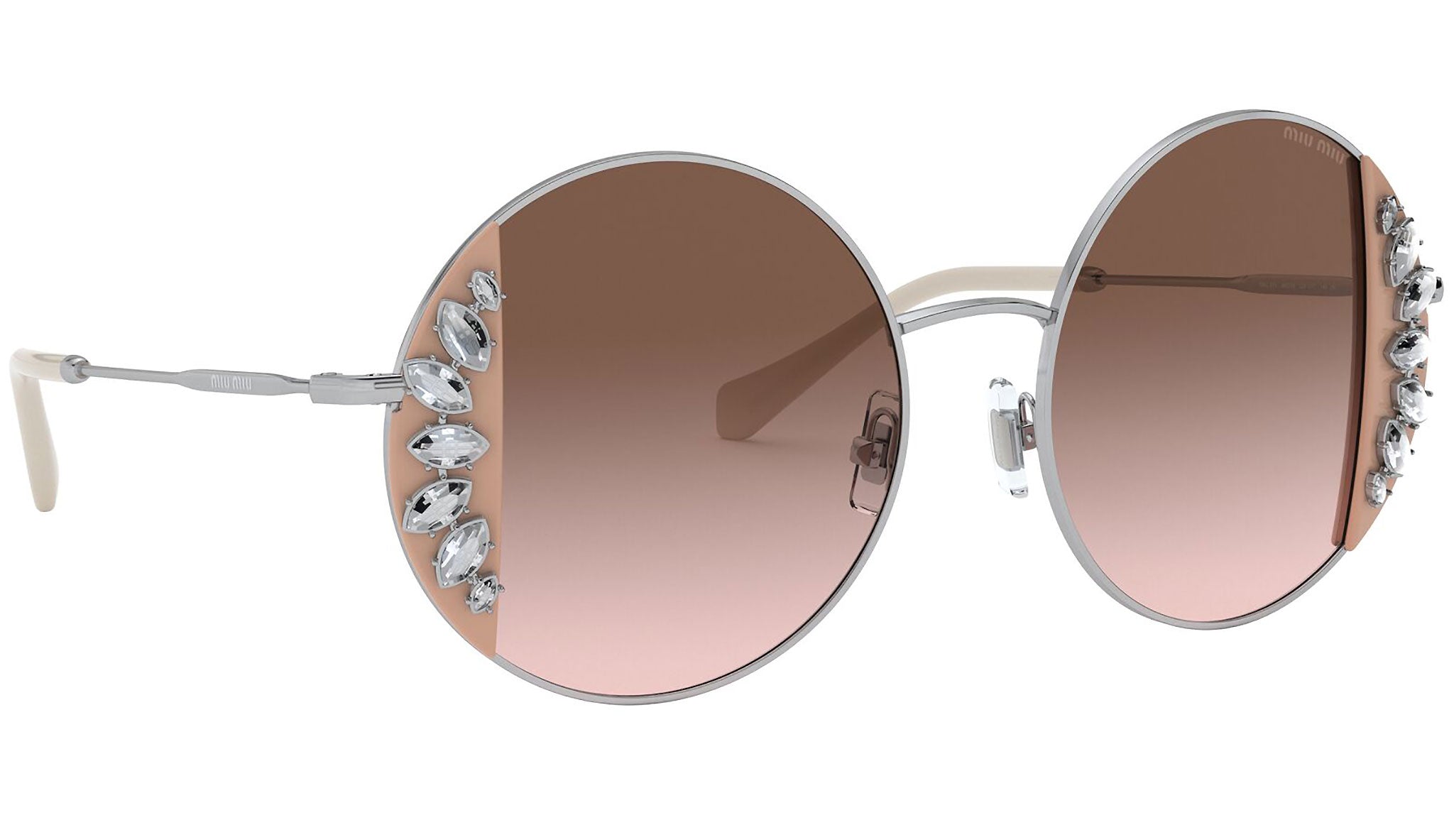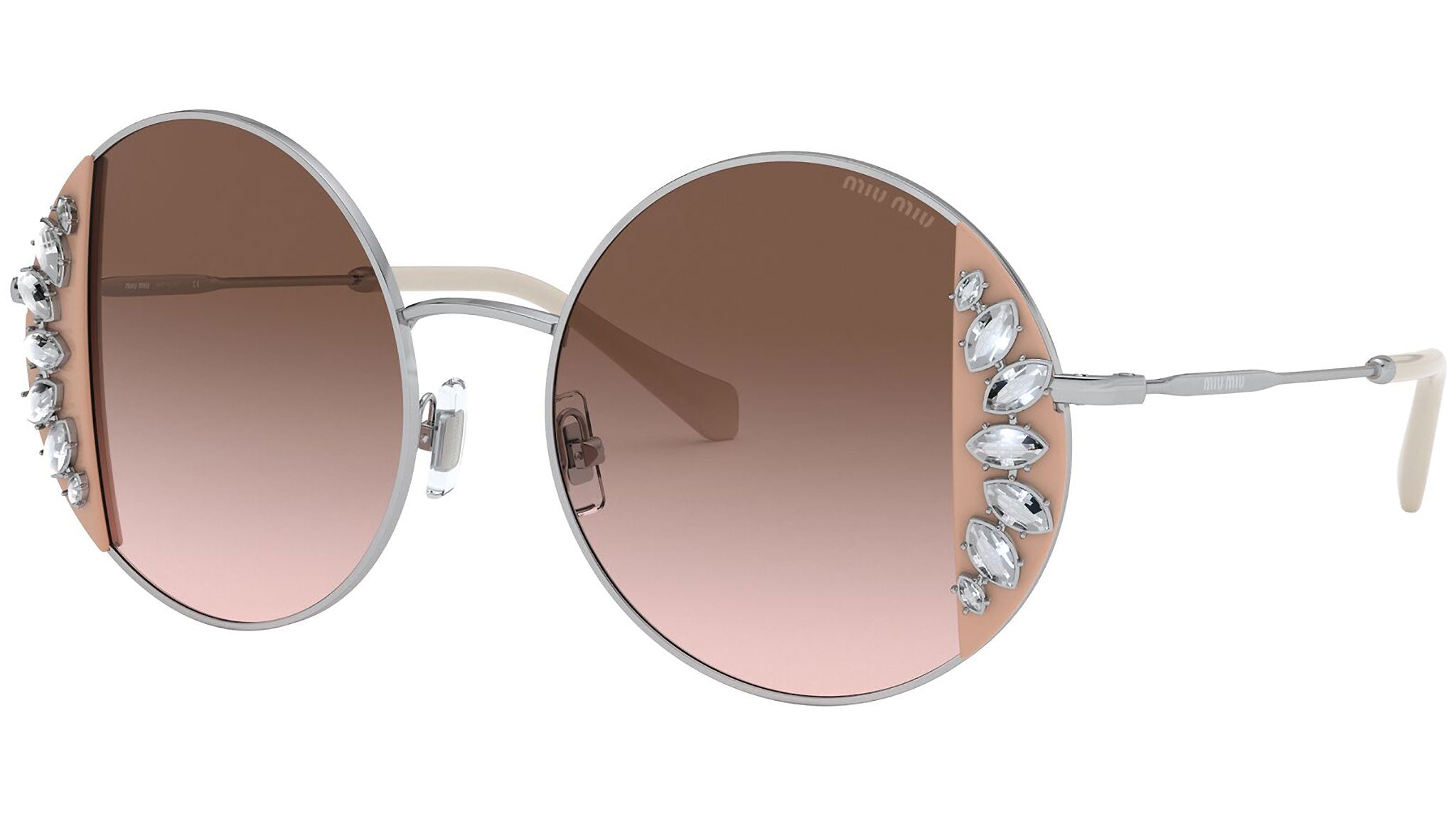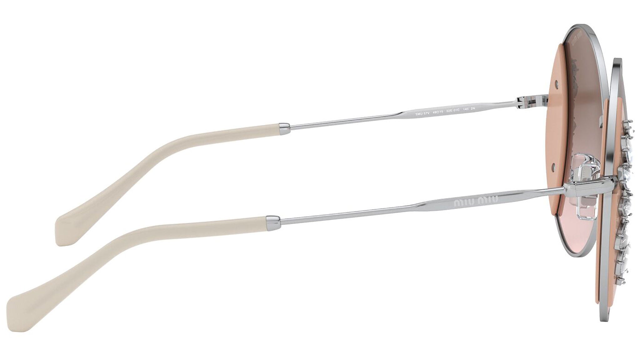 Occhiali da sole Miu Miu modello MU 57VS variante colore 02E01C rosa e argento, con lenti color marrone sfumato. Miu Miu offre creazioni uniche, in cui la costante ricerca stilistica si combina perfettamente con la maestria artigianale della lavorazione. Le silhouette femminili e sinuose delle montature sono espressione di una ricchezza dei dettagli che rispecchia pienamente i codici stilistici e l’indiscusso talento del brand nell’unire il design non convenzionale ad un romanticismo dai rimandi retrò.