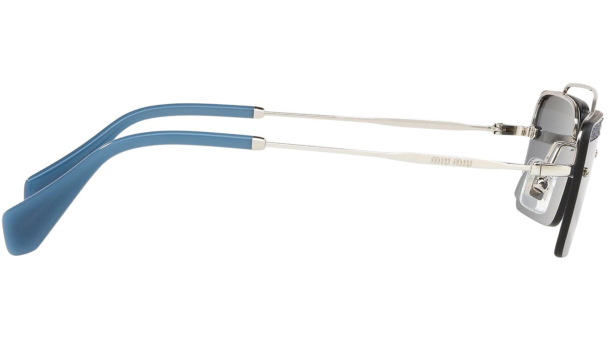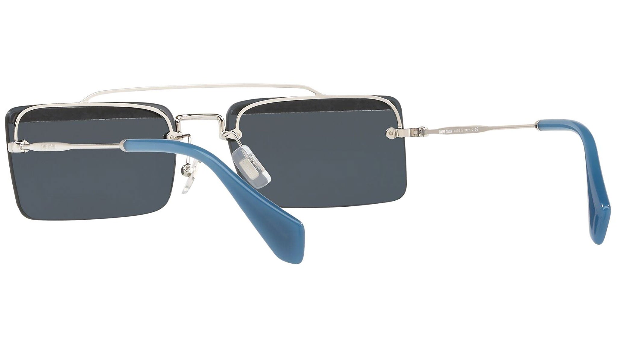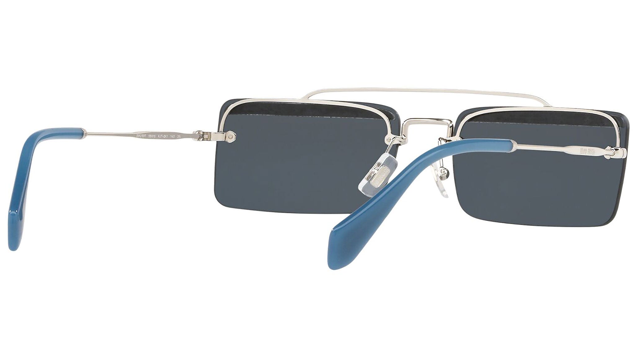 Occhiali da sole Miu Miu modello MU 59TS variante colore KJT2K1 argento, con lenti color grigio. Miu Miu offre creazioni uniche, in cui la costante ricerca stilistica si combina perfettamente con la maestria artigianale della lavorazione. Le silhouette femminili e sinuose delle montature sono espressione di una ricchezza dei dettagli che rispecchia pienamente i codici stilistici e l’indiscusso talento del brand nell’unire il design non convenzionale ad un romanticismo dai rimandi retrò.
