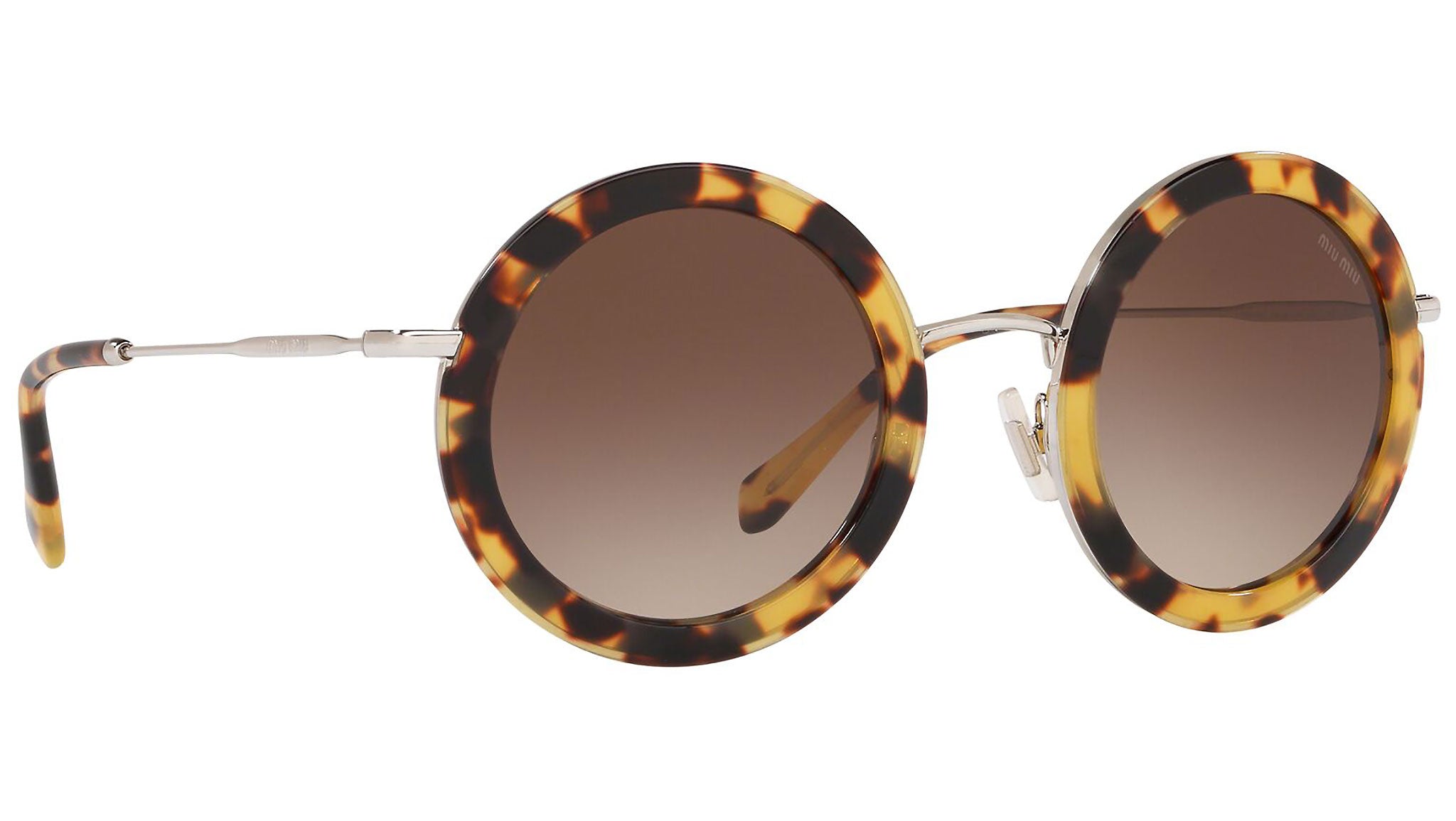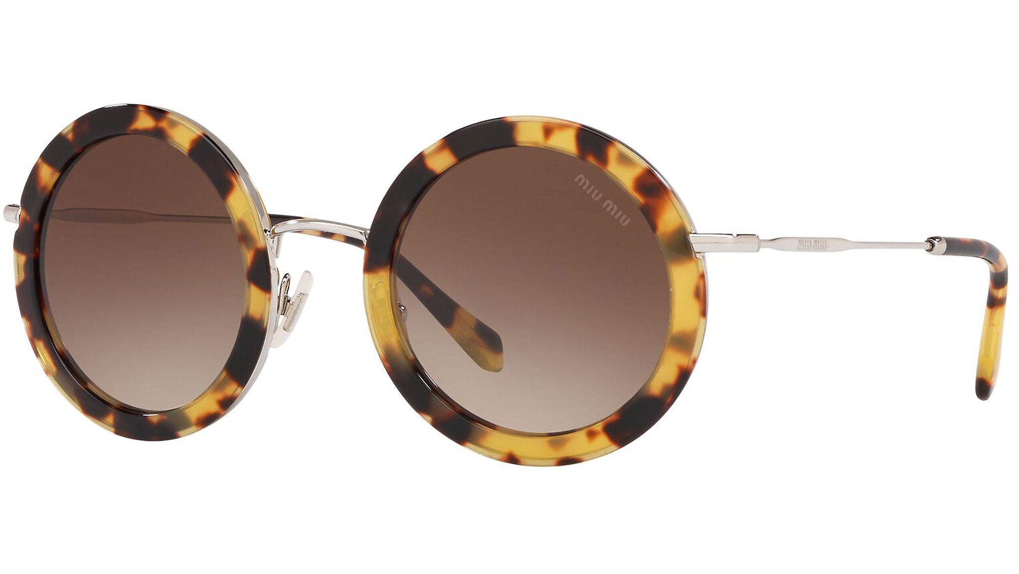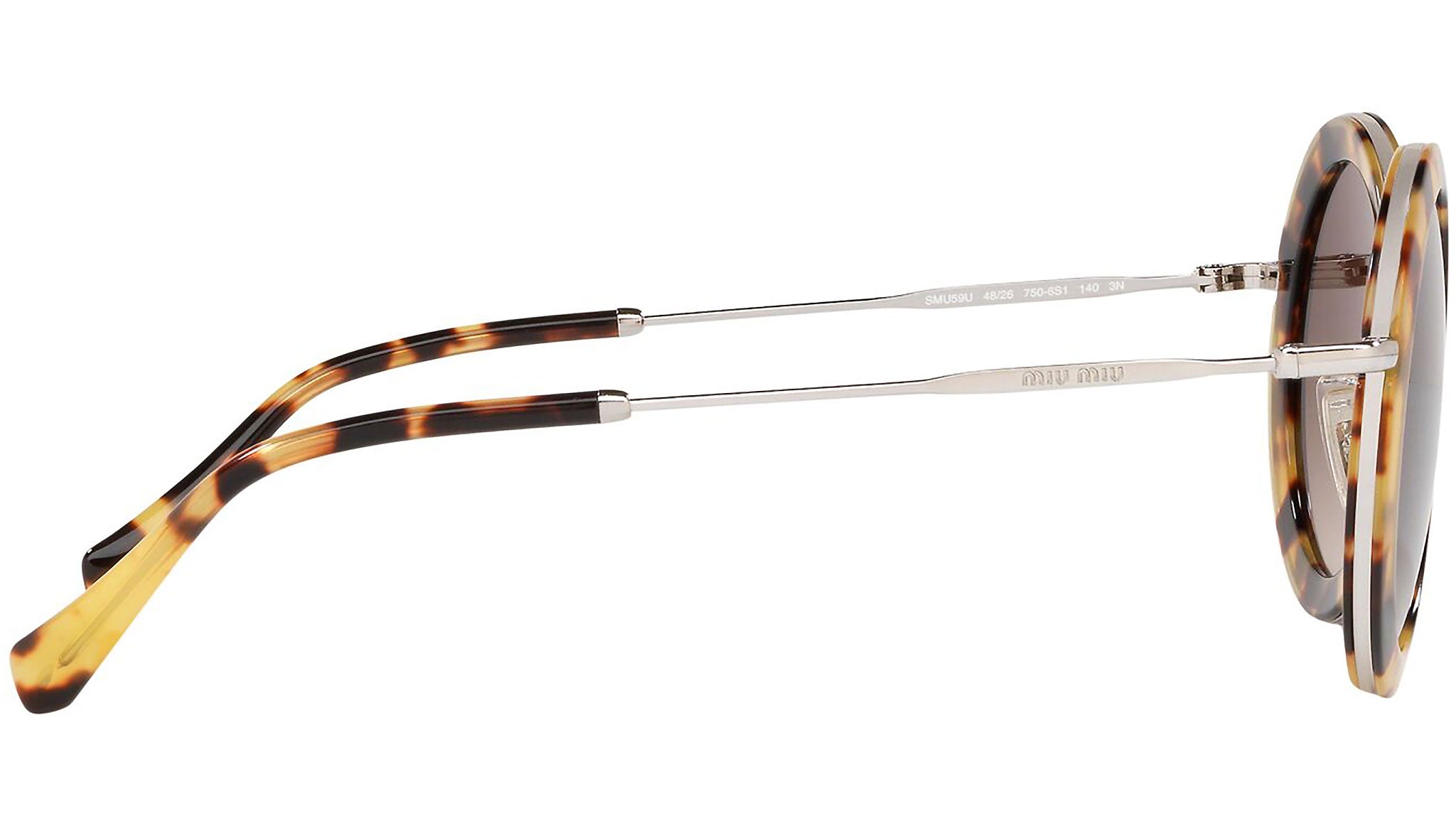 Occhiali da sole Miu Miu modello MU 59US variante colore 7S06S1 avana chiaro, con lenti color marrone sfumato. Miu Miu offre creazioni uniche, in cui la costante ricerca stilistica si combina perfettamente con la maestria artigianale della lavorazione. Le silhouette femminili e sinuose delle montature sono espressione di una ricchezza dei dettagli che rispecchia pienamente i codici stilistici e l’indiscusso talento del brand nell’unire il design non convenzionale ad un romanticismo dai rimandi retrò.