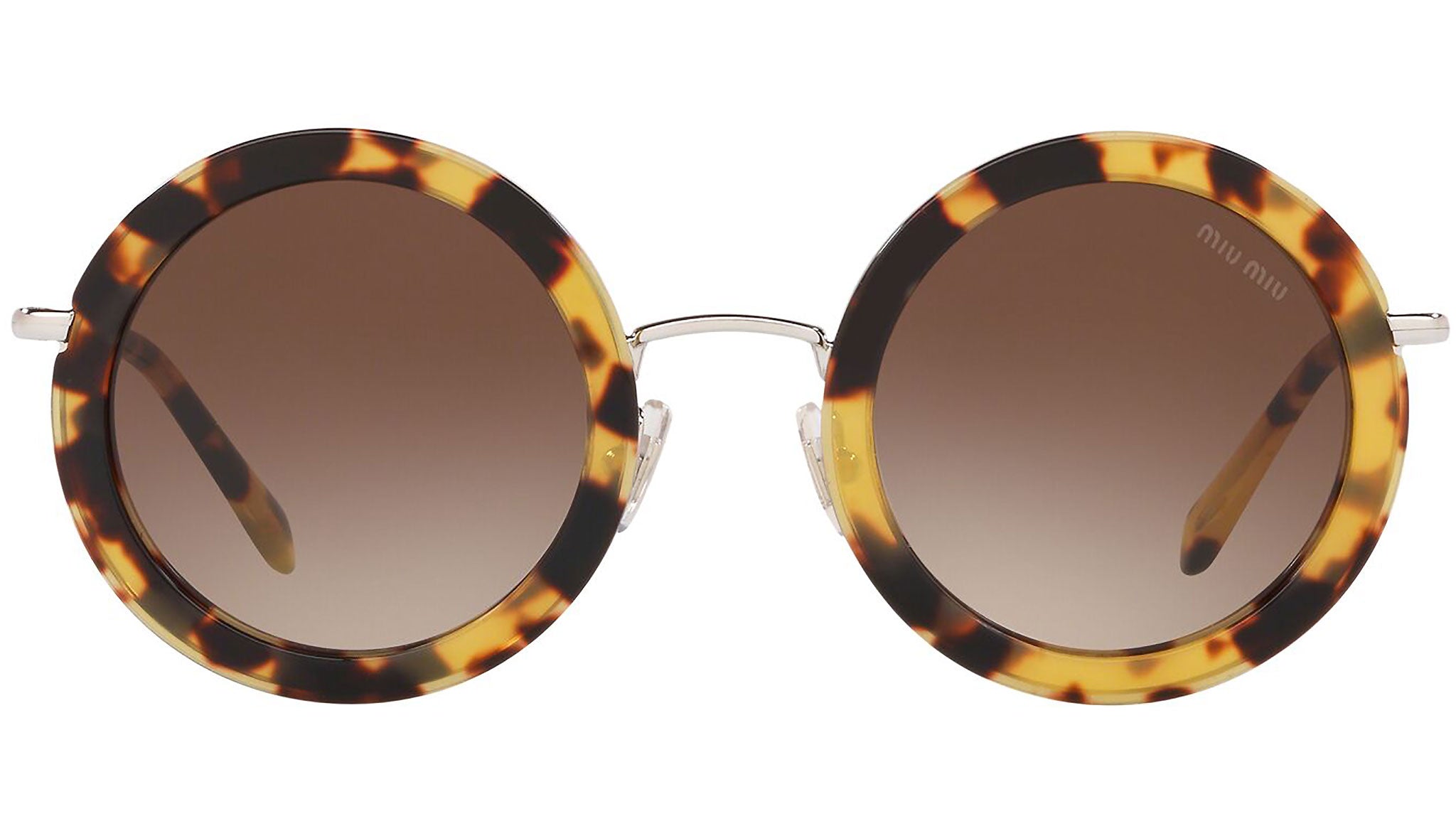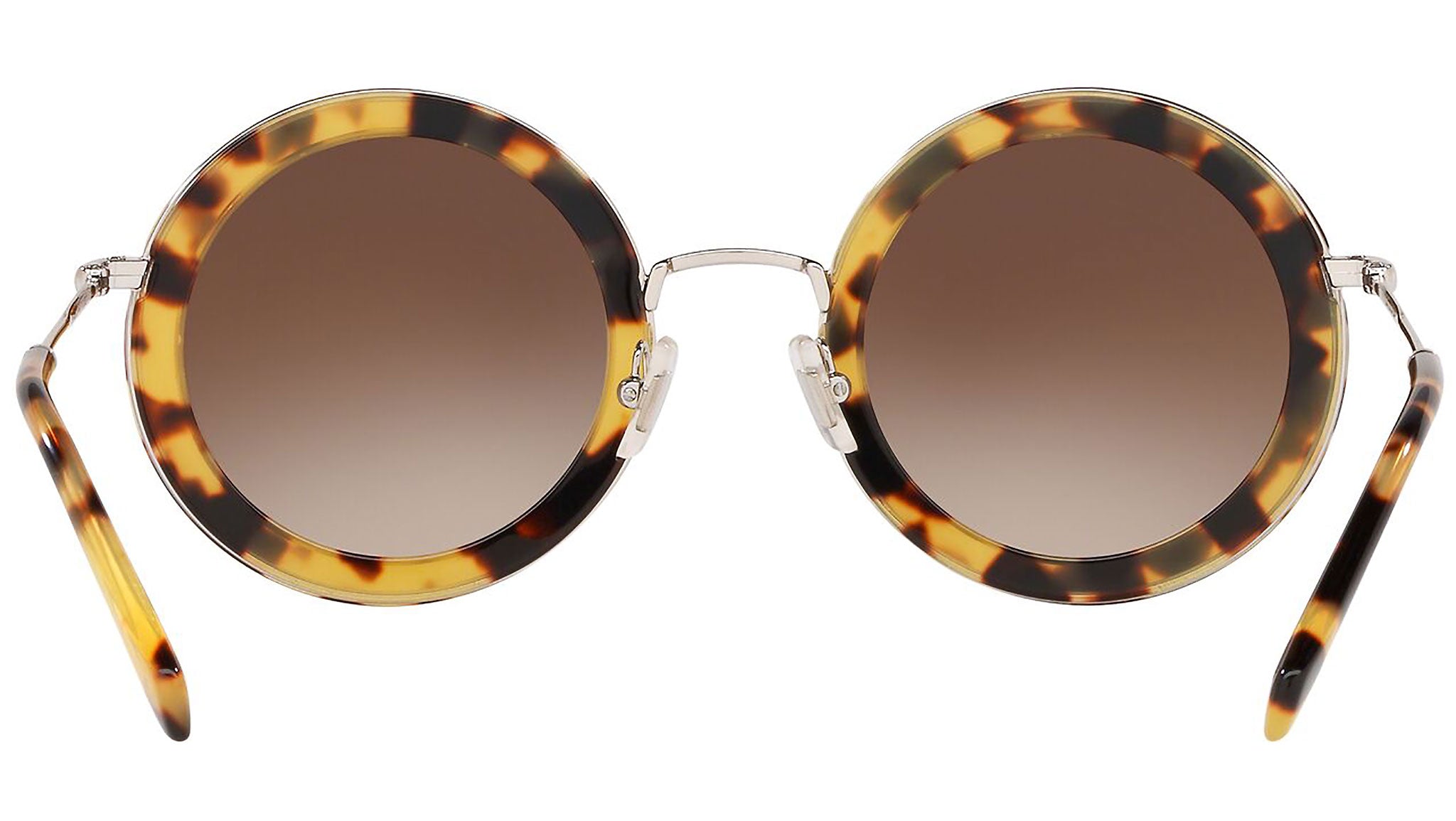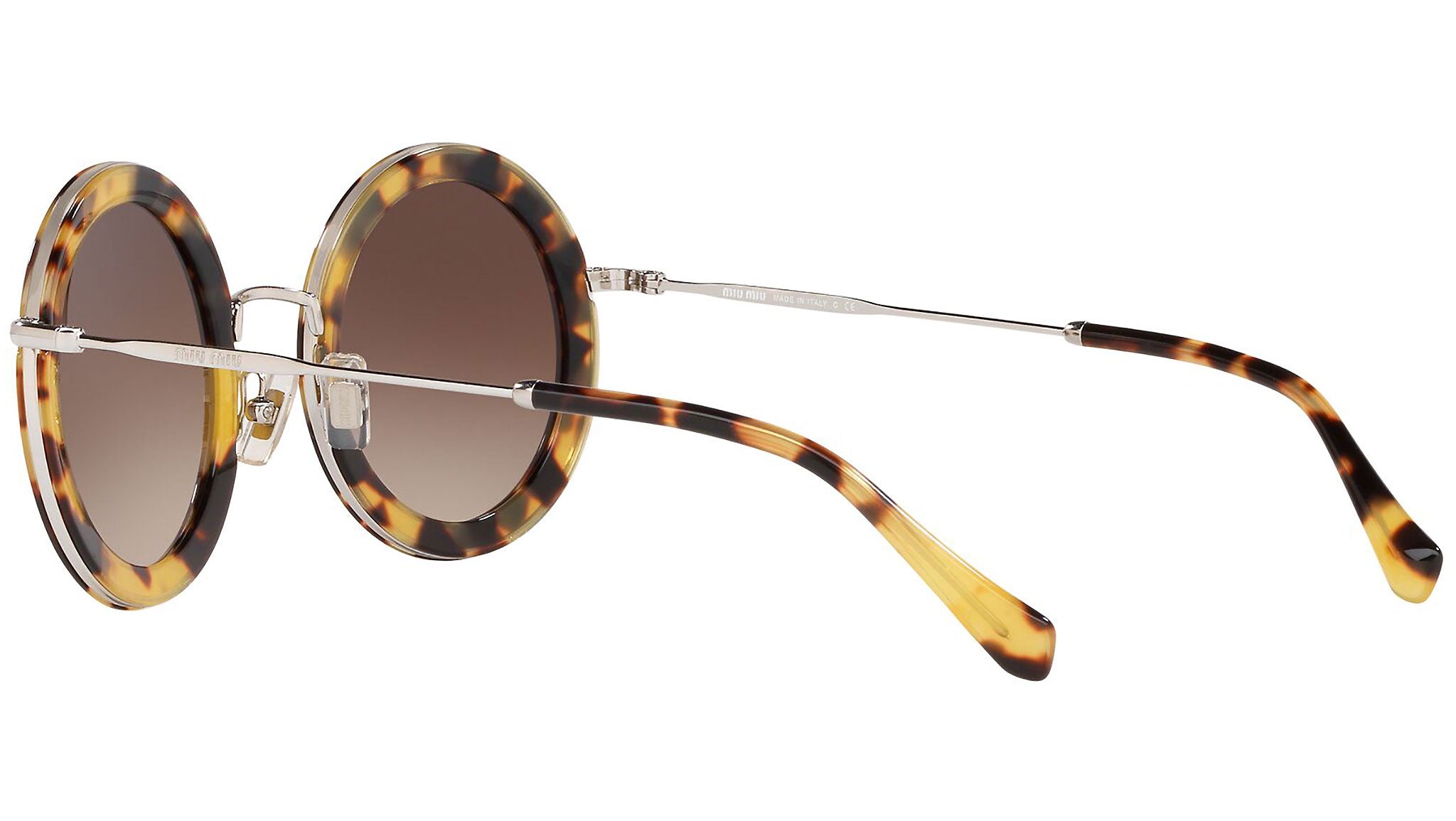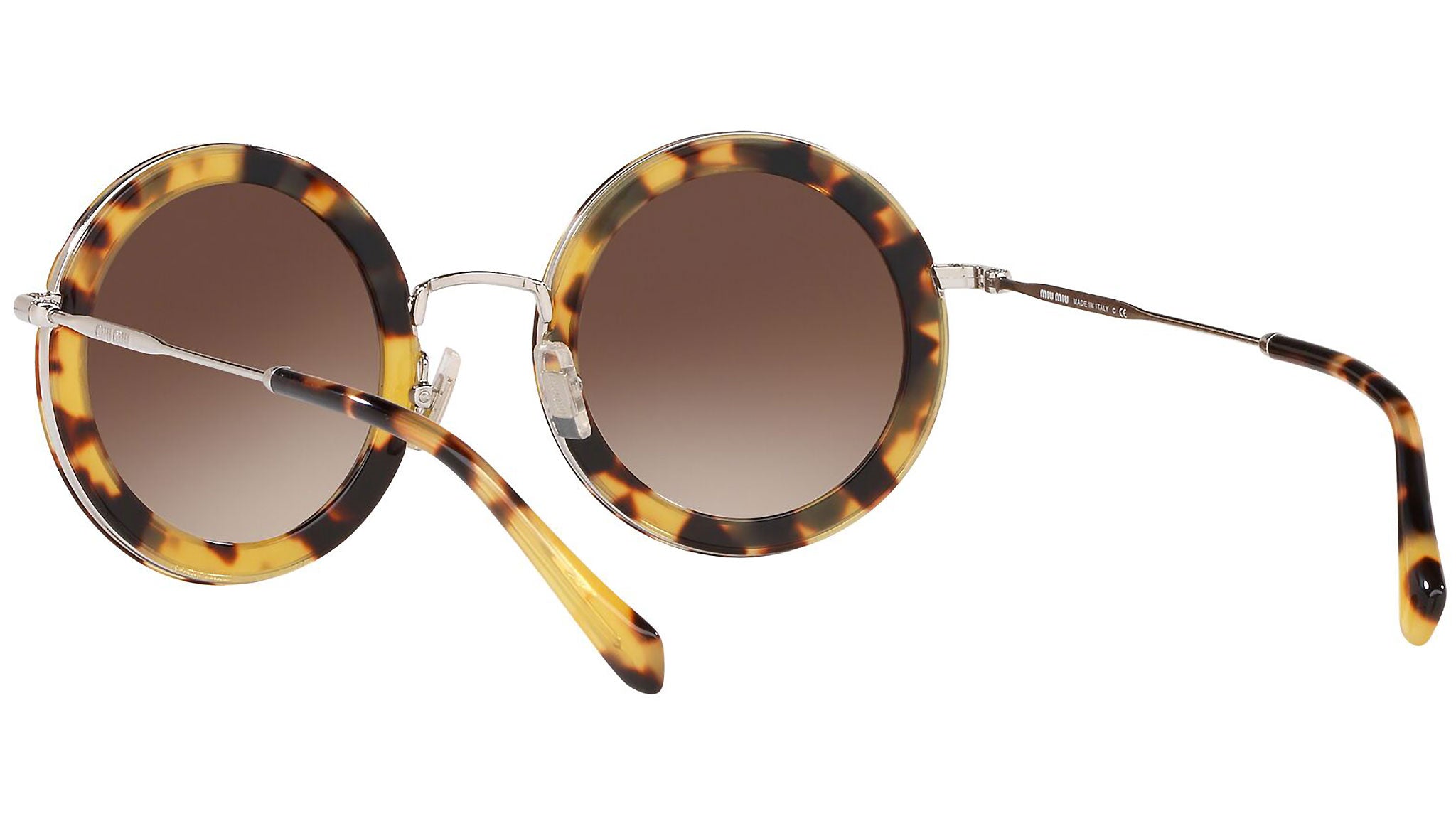 Occhiali da sole Miu Miu modello MU 59US variante colore 7S06S1 avana chiaro, con lenti color marrone sfumato. Miu Miu offre creazioni uniche, in cui la costante ricerca stilistica si combina perfettamente con la maestria artigianale della lavorazione. Le silhouette femminili e sinuose delle montature sono espressione di una ricchezza dei dettagli che rispecchia pienamente i codici stilistici e l’indiscusso talento del brand nell’unire il design non convenzionale ad un romanticismo dai rimandi retrò.