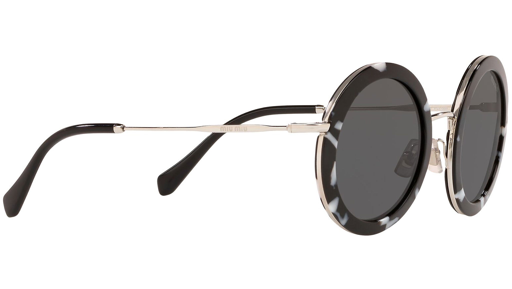 Occhiali da sole Miu Miu modello MU 59US variante colore PC75S0 avana scuro e bianco, con lenti color grigio scuro. Miu Miu offre creazioni uniche, in cui la costante ricerca stilistica si combina perfettamente con la maestria artigianale della lavorazione. Le silhouette femminili e sinuose delle montature sono espressione di una ricchezza dei dettagli che rispecchia pienamente i codici stilistici e l’indiscusso talento del brand nell’unire il design non convenzionale ad un romanticismo dai rimandi retrò.