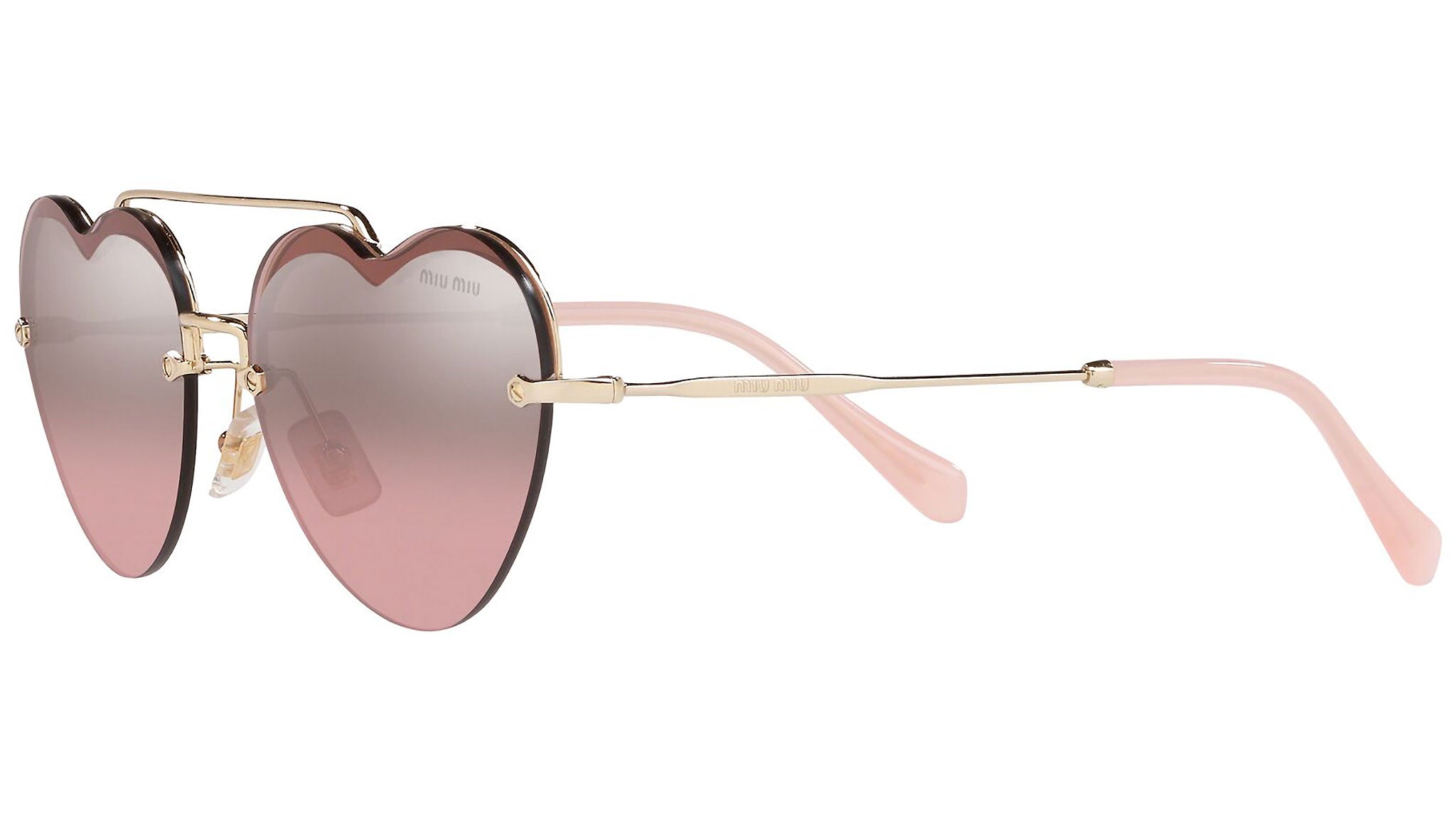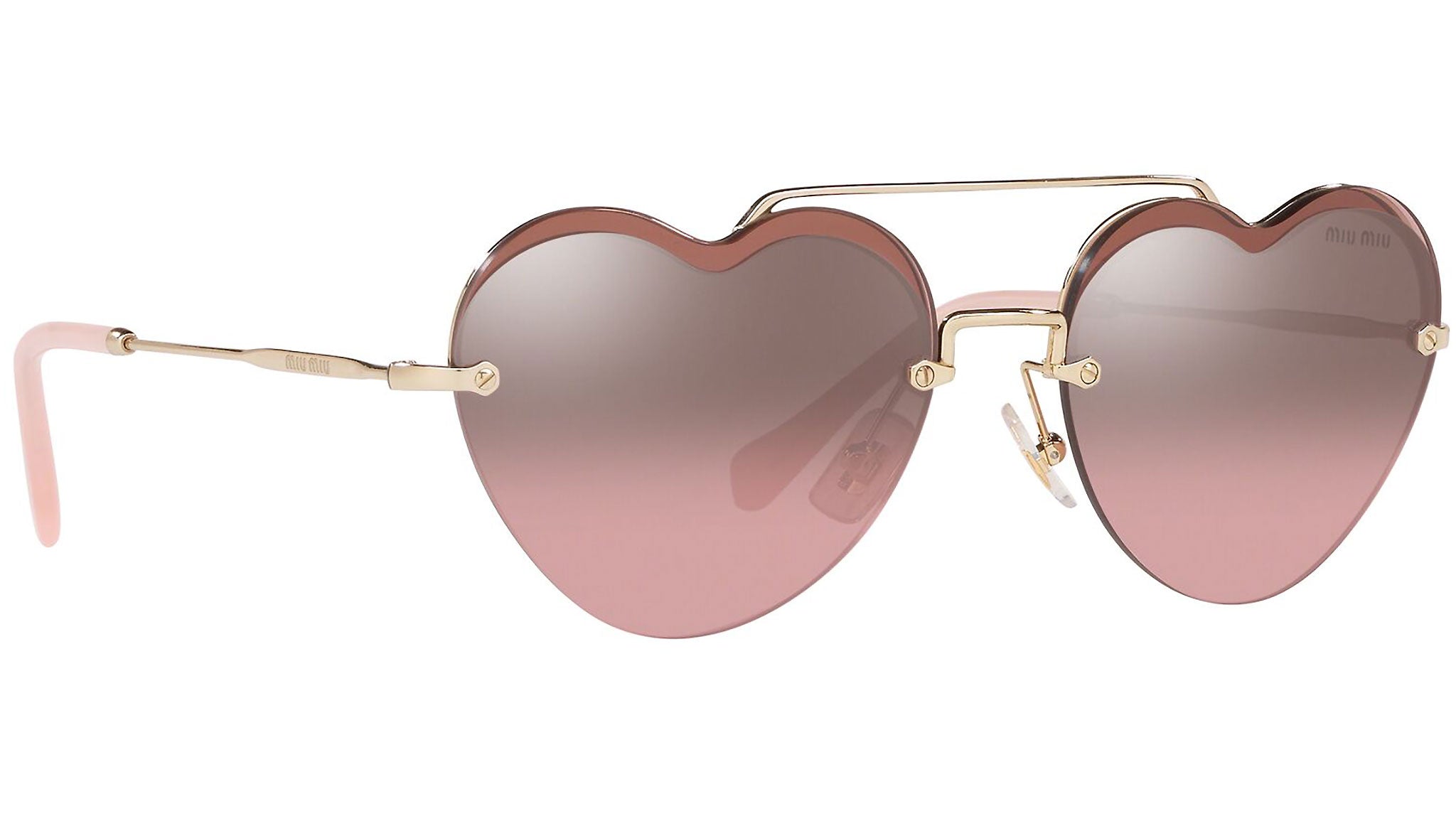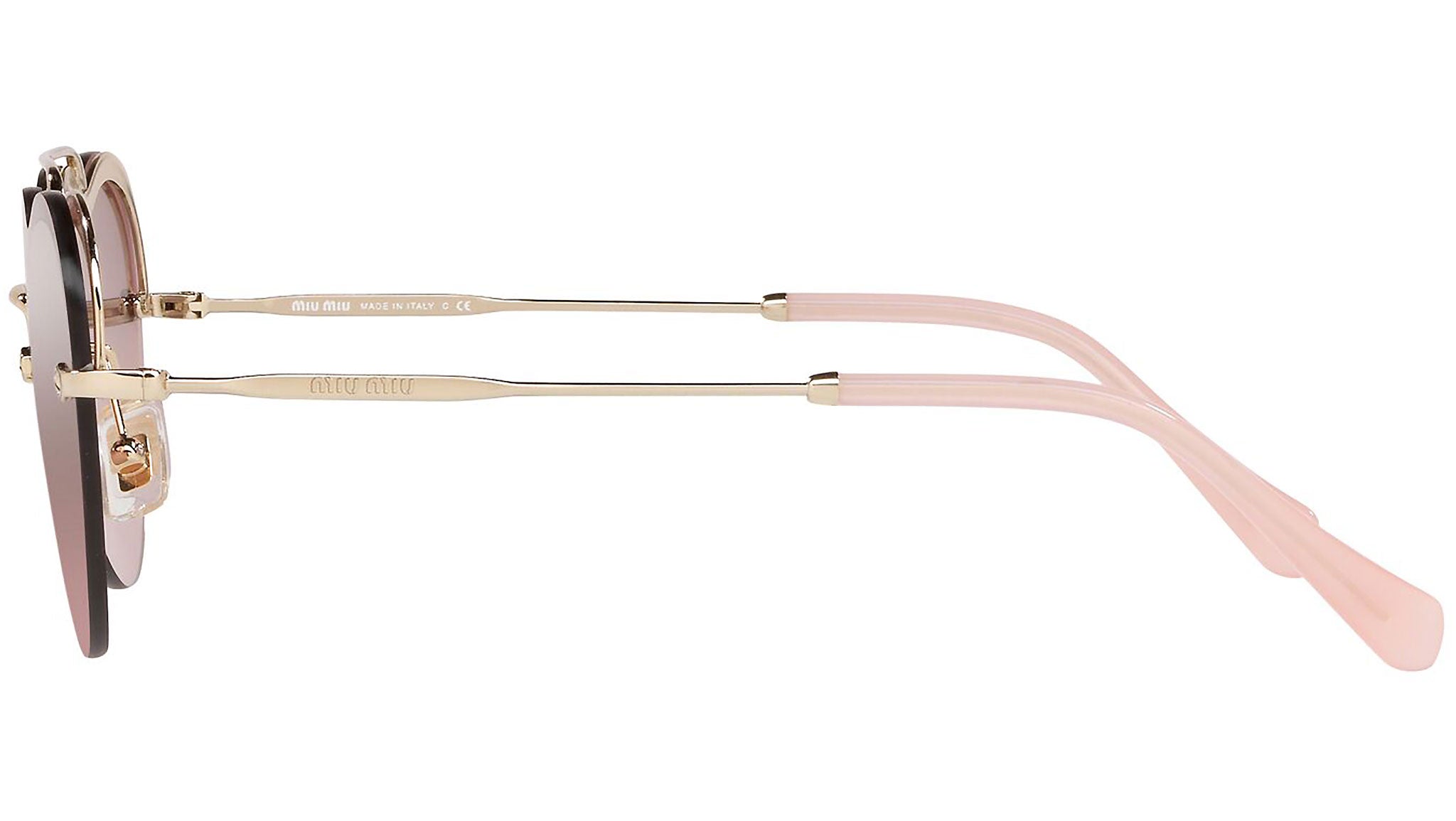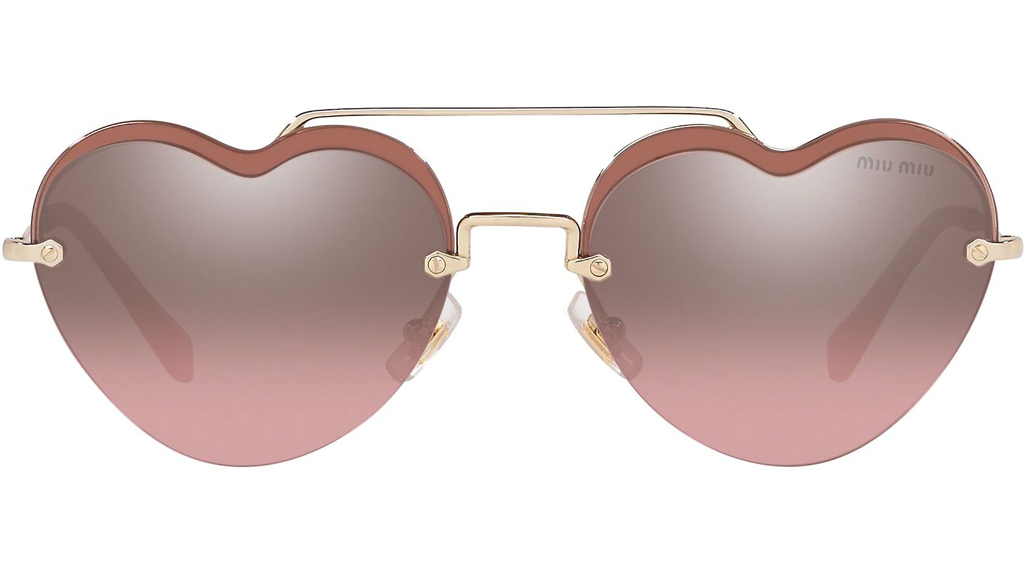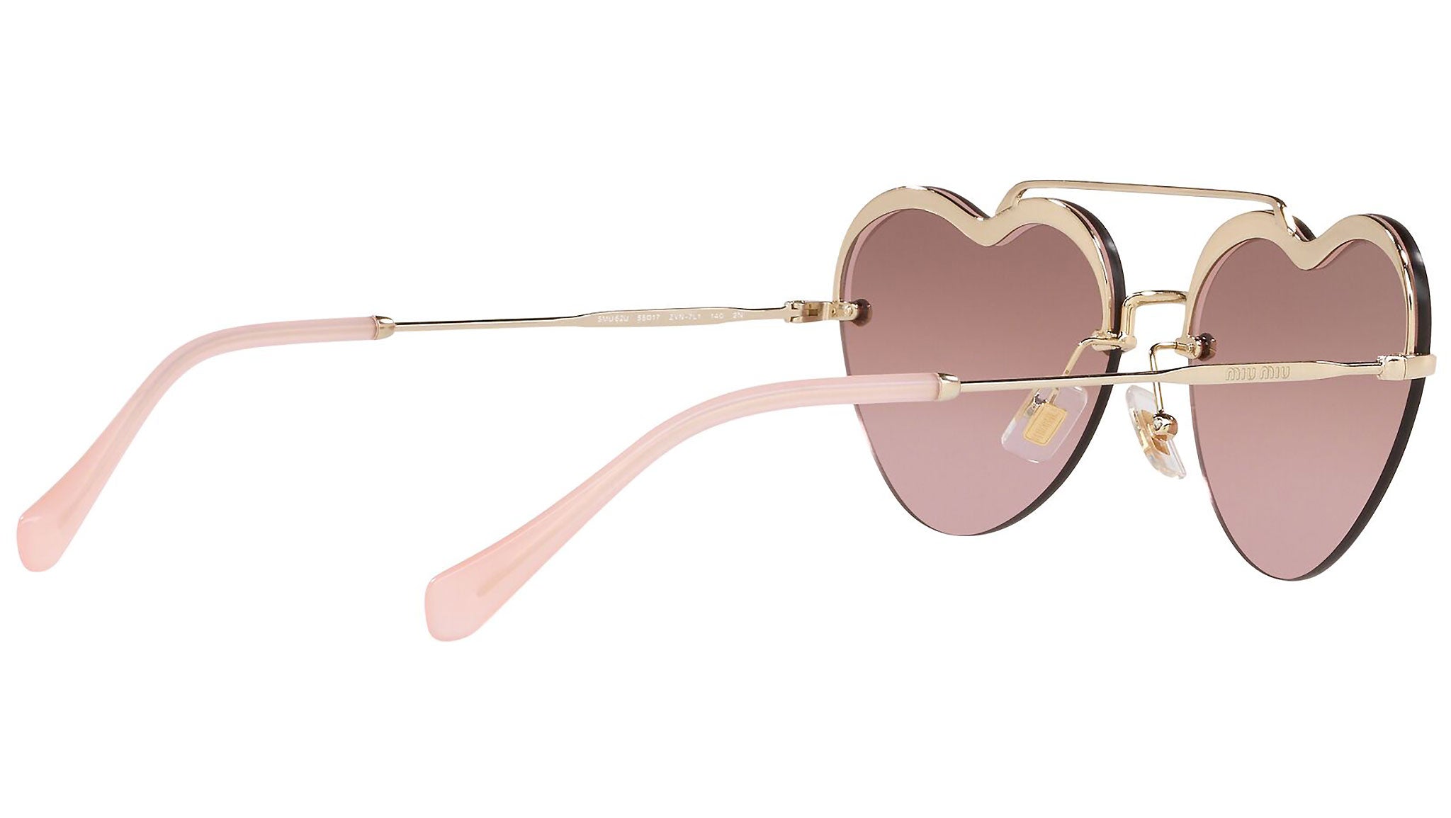 Occhiali da sole Miu Miu modello MU 62US variante colore ZVN7L1 oro chiaro, con lenti color rosa sfumato argento a specchio. Miu Miu offre creazioni uniche, in cui la costante ricerca stilistica si combina perfettamente con la maestria artigianale della lavorazione. Le silhouette femminili e sinuose delle montature sono espressione di una ricchezza dei dettagli che rispecchia pienamente i codici stilistici e l’indiscusso talento del brand nell’unire il design non convenzionale ad un romanticismo dai rimandi retrò.
