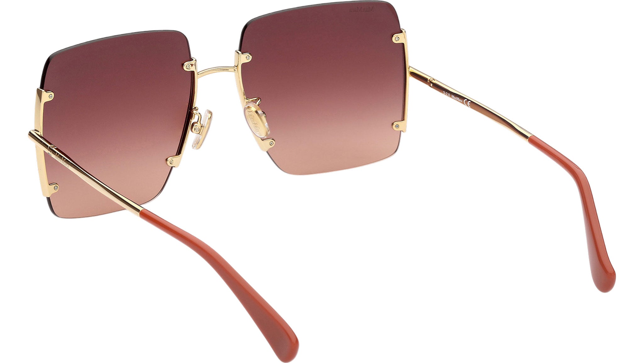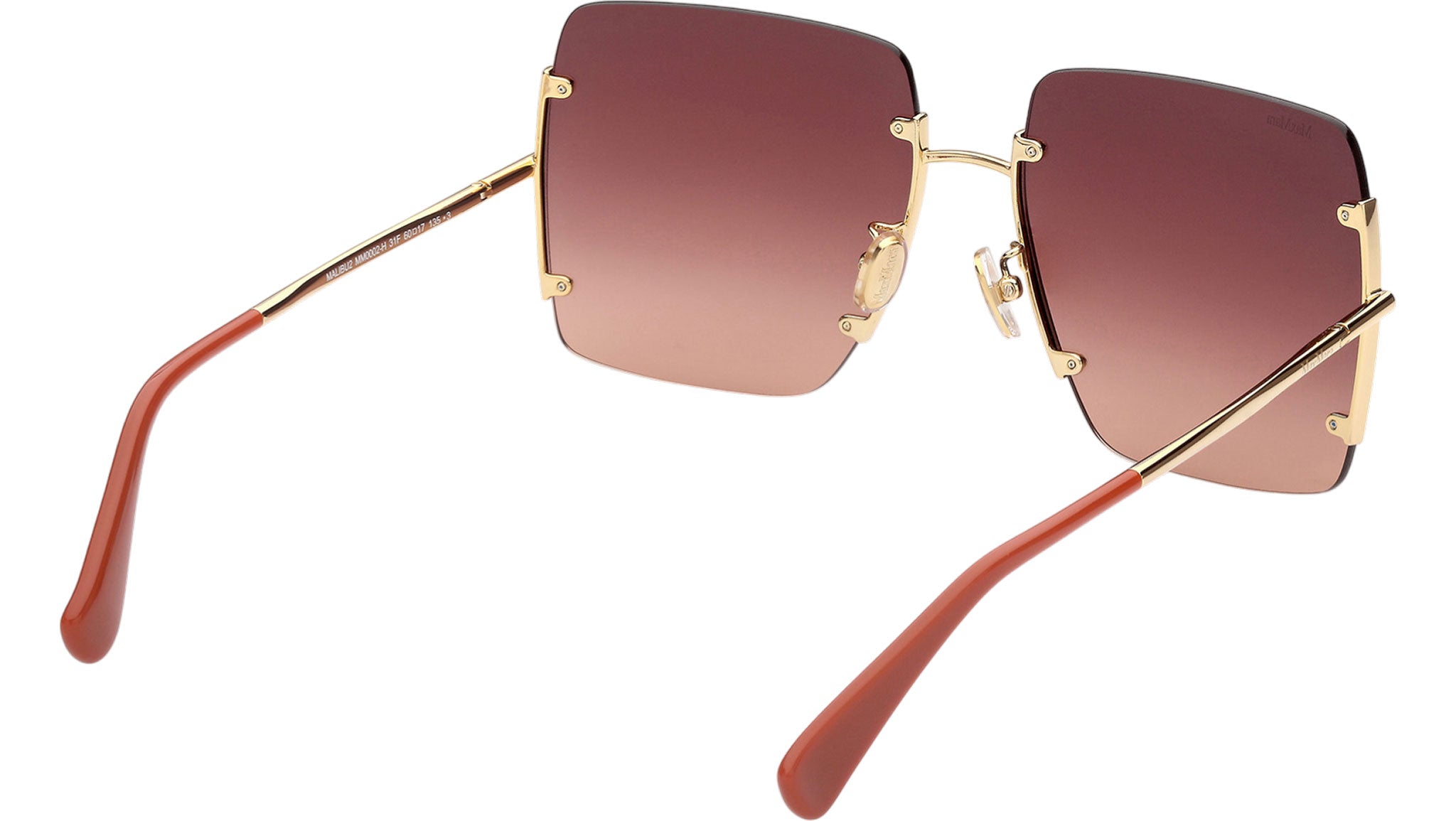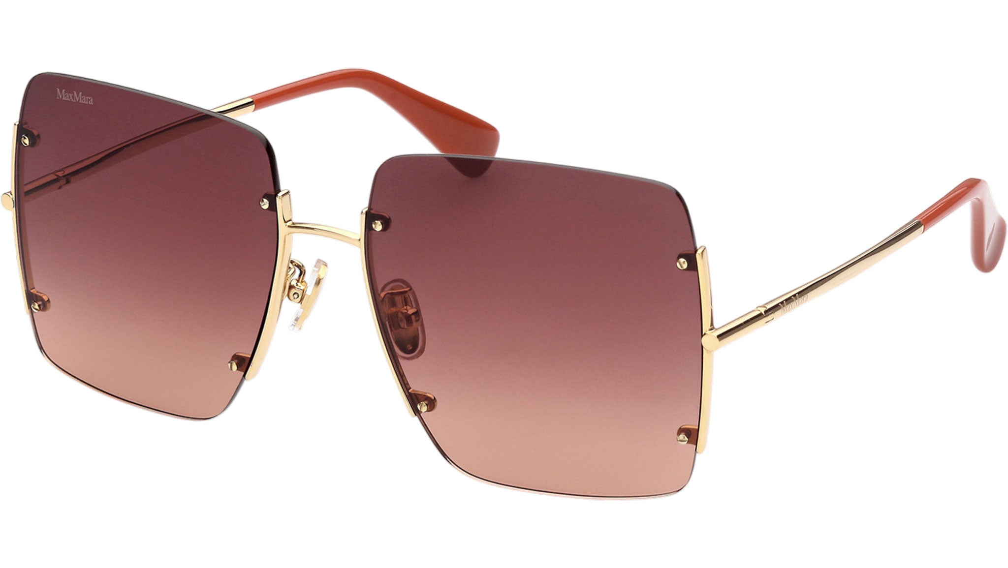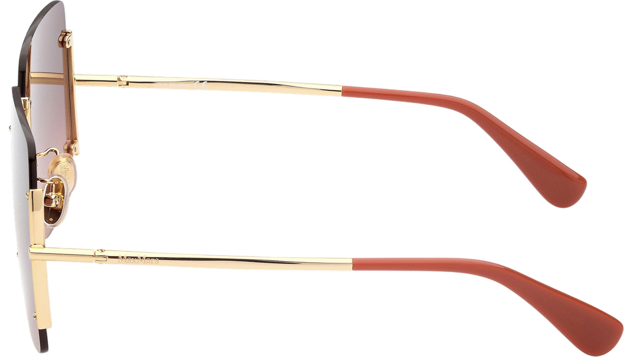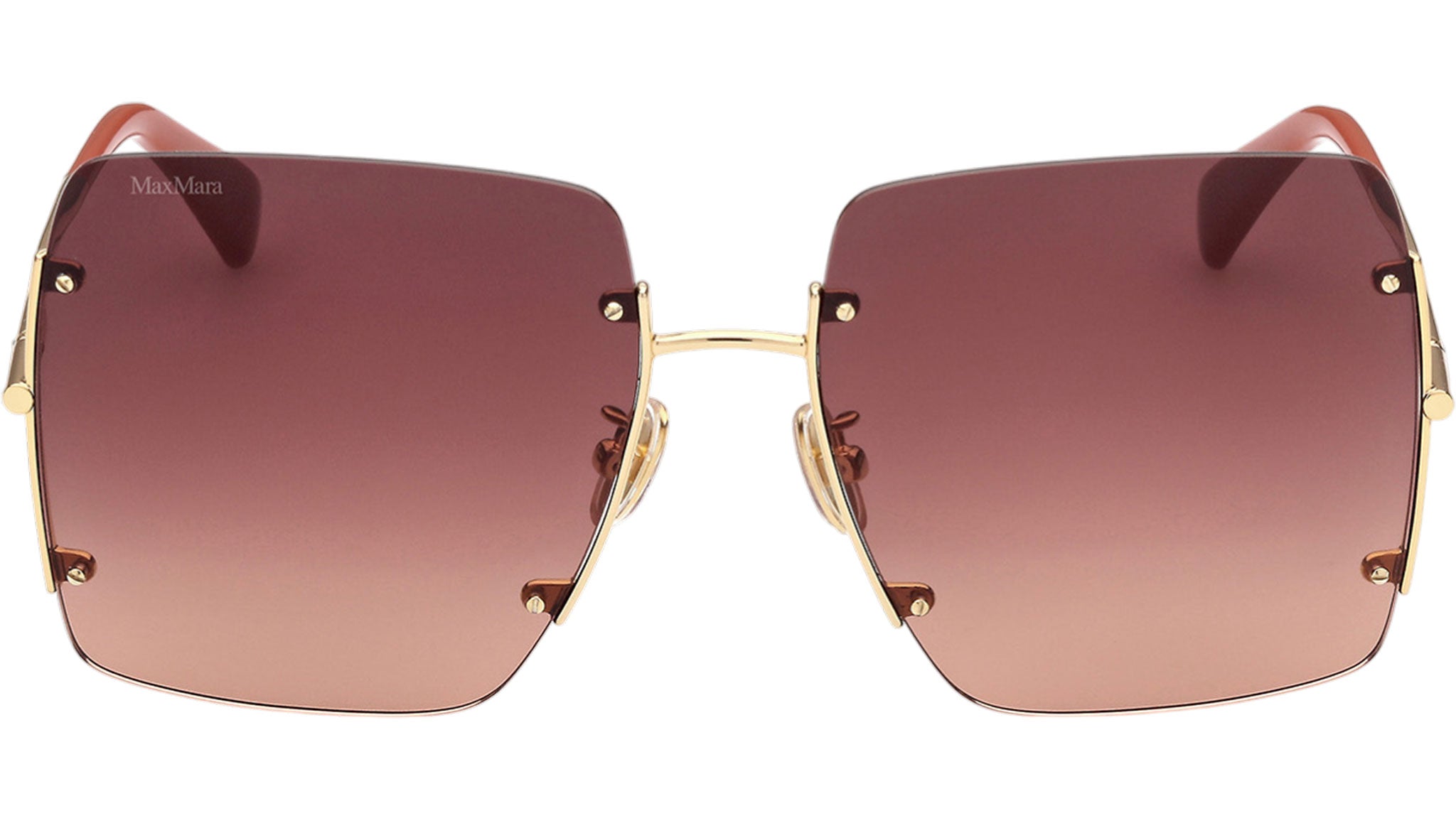 Occhiali da sole Max Mara donna modello Malibu2 MM0002-H con montatura squadrata rimless in metallo oro opaco e lenti color marrone sfumato. Made in Italy. Codice Brand: MM 0002-H. Codice colore: 31F. Rivenditore autorizzato Max Mara online. Gli occhiali vengono consegnati con custodia e accessori originali e sono coperti da garanzia standard di 12 mesi del produttore.