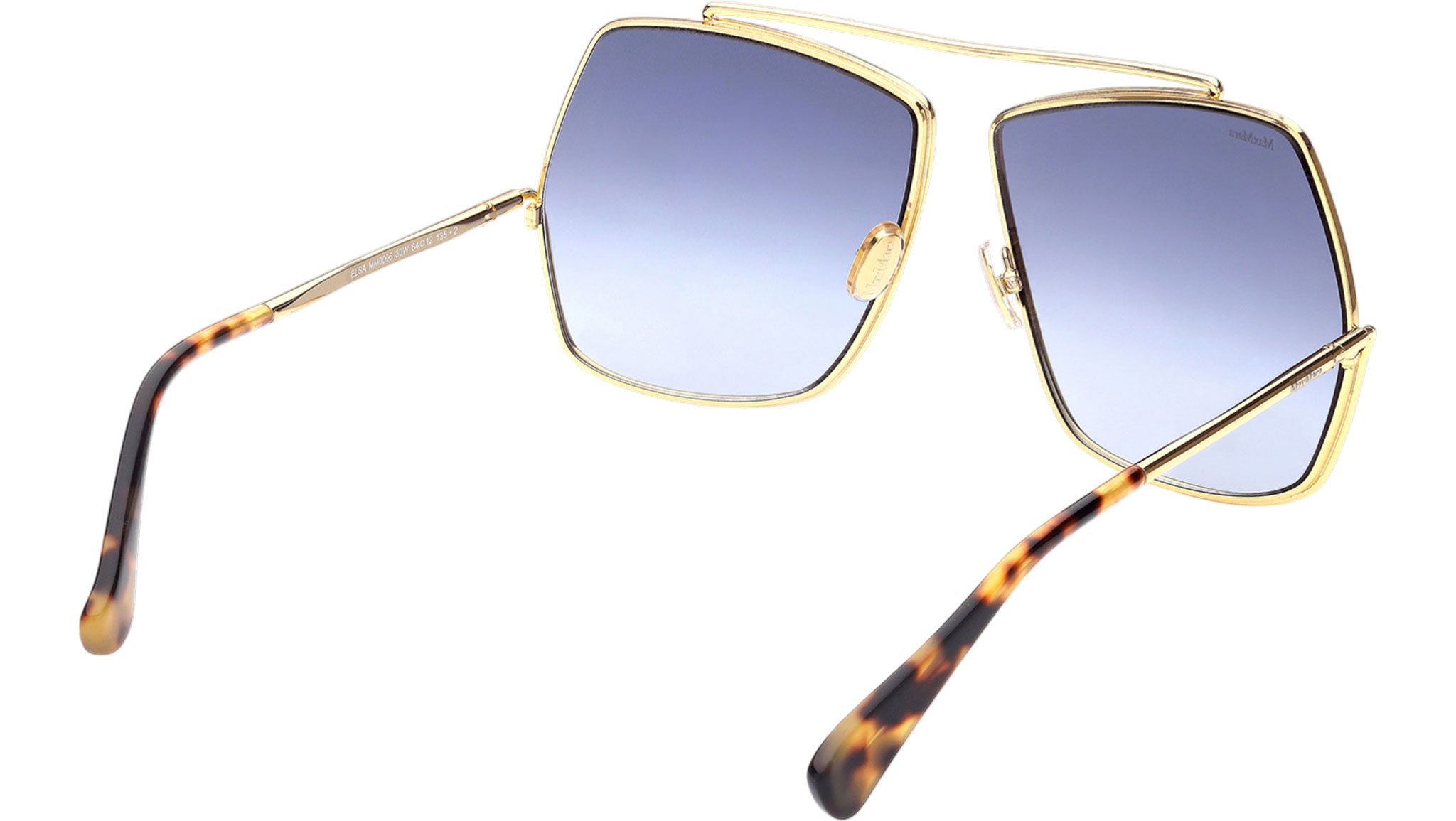 Occhiali da sole Max Mara donna modello Elsa MM0006 con montatura geometrica full-rim in metallo oro intenso lucido e lenti color blu sfumato. Made in Italy. Codice Brand: MM 0006. Codice colore: 30W. Rivenditore autorizzato Max Mara online. Gli occhiali vengono consegnati con custodia e accessori originali e sono coperti da garanzia standard di 12 mesi del produttore.