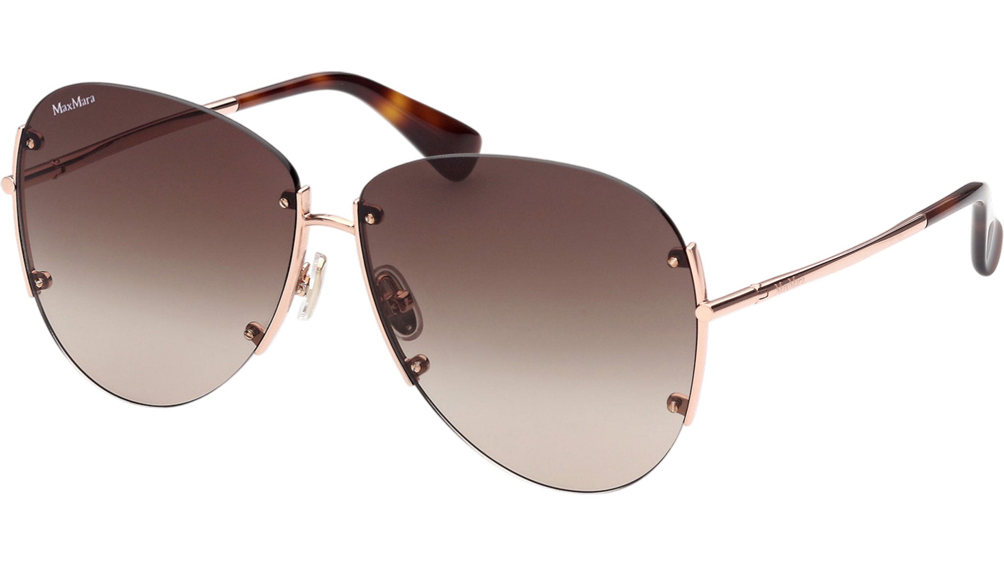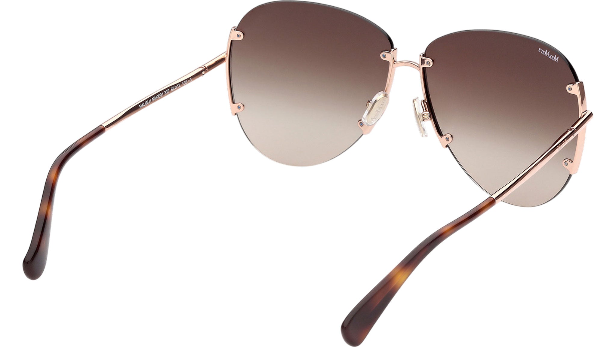 Occhiali da sole Max Mara donna modello Malibu1 MM0001 con montatura navigator rimless in metallo oro rosa e lenti color marrone sfumato. Made in Italy. Codice Brand: MM 0001. Codice colore: 33F. Rivenditore autorizzato Max Mara online. Gli occhiali vengono consegnati con custodia e accessori originali e sono coperti da garanzia standard di 12 mesi del produttore.