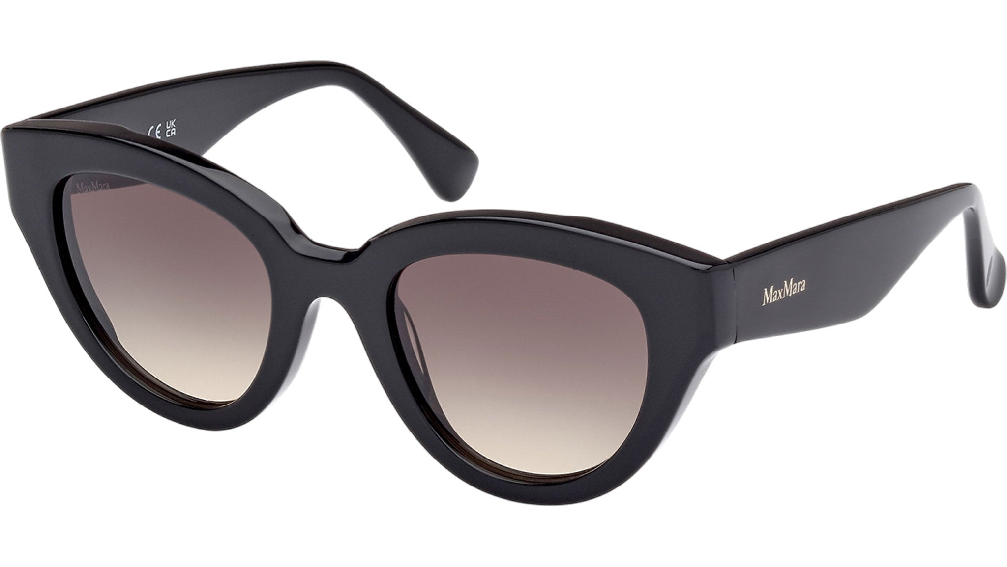 Occhiali da sole Max Mara donna modello Glimpse1 MM0077 con montatura cat eye full-rim in acetato nero lucido e lenti color grigio fumo sfumato. Made in Italy. Codice Brand: MM 0077. Codice colore: 01B. Rivenditore autorizzato Max Mara online. Gli occhiali vengono consegnati con custodia e accessori originali e sono coperti da garanzia standard di 12 mesi del produttore.