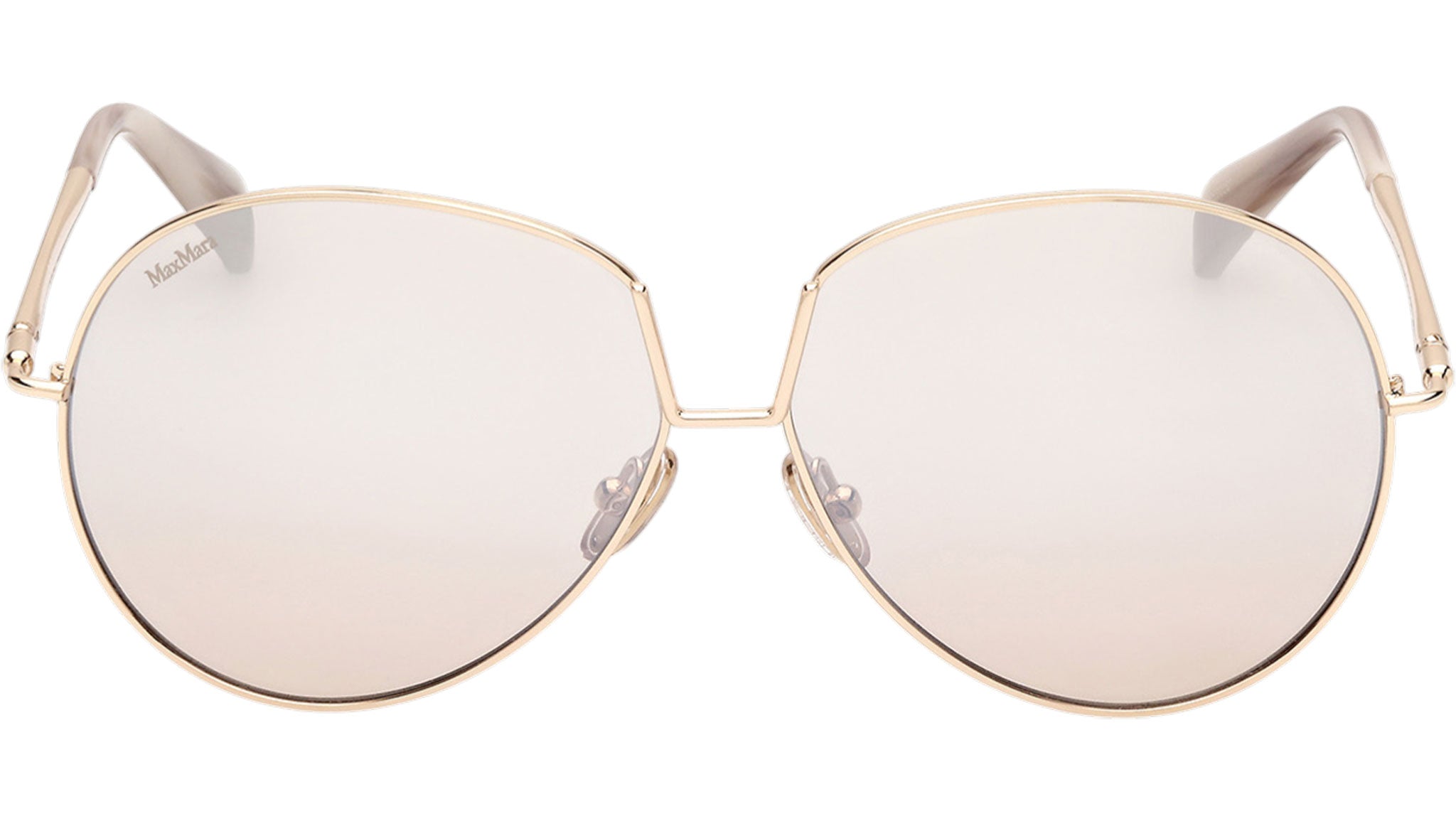 Occhiali da sole Max Mara donna modello Design8 MM0081 con montatura navigator full-rim in metallo oro chiaro lucido e lenti color marrone. Made in Italy. Codice Brand: MM 0081. Codice colore: 32G. Rivenditore autorizzato Max Mara online. Gli occhiali vengono consegnati con custodia e accessori originali e sono coperti da garanzia standard di 12 mesi del produttore.