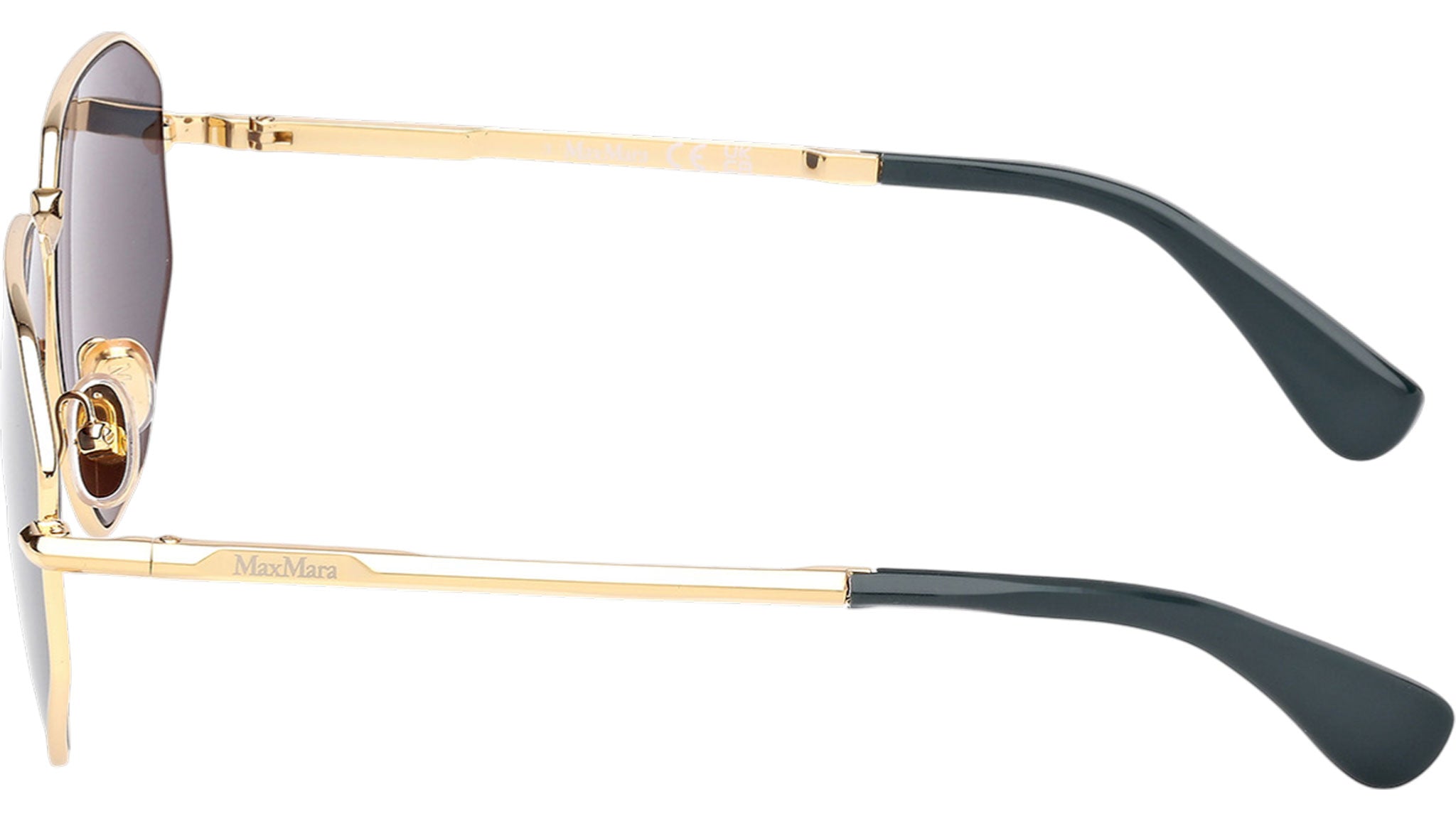 Occhiali da sole Max Mara donna modello Miller-4 MM0143 con montatura navigator full-rim in metallo oro intenso lucido e lenti color verde. Made in Italy. Codice Brand: MM 0143. Codice colore: 30N. Rivenditore autorizzato Max Mara online. Gli occhiali vengono consegnati con custodia e accessori originali e sono coperti da garanzia standard di 12 mesi del produttore.