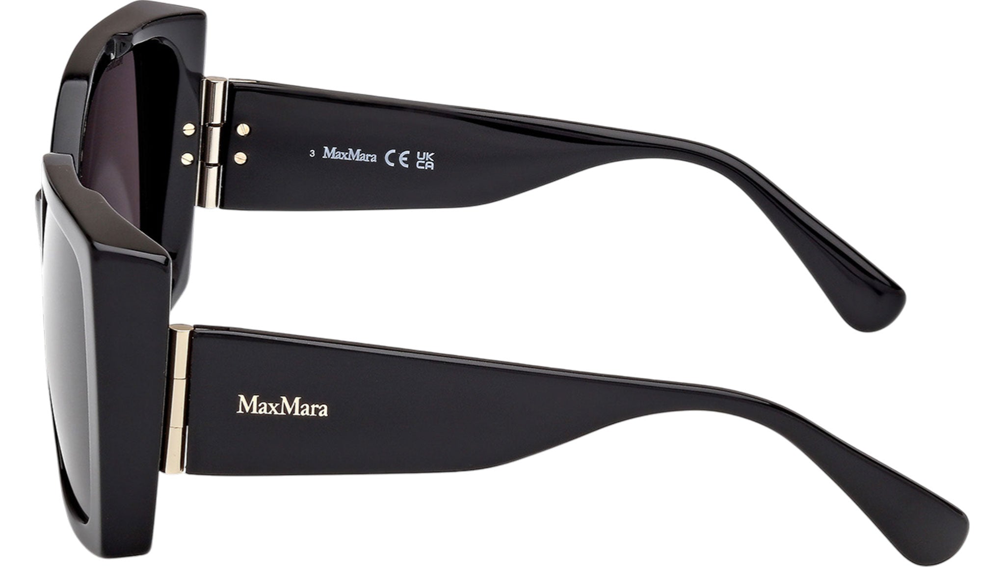 Occhiali da sole Max Mara donna modello Hinge MM0131 con montatura squadrata full-rim in acetato nero lucido e lenti color grigio fumo. Made in Italy. Codice Brand: MM 0131. Codice colore: 01A. Rivenditore autorizzato Max Mara online. Gli occhiali vengono consegnati con custodia e accessori originali e sono coperti da garanzia standard di 12 mesi del produttore.