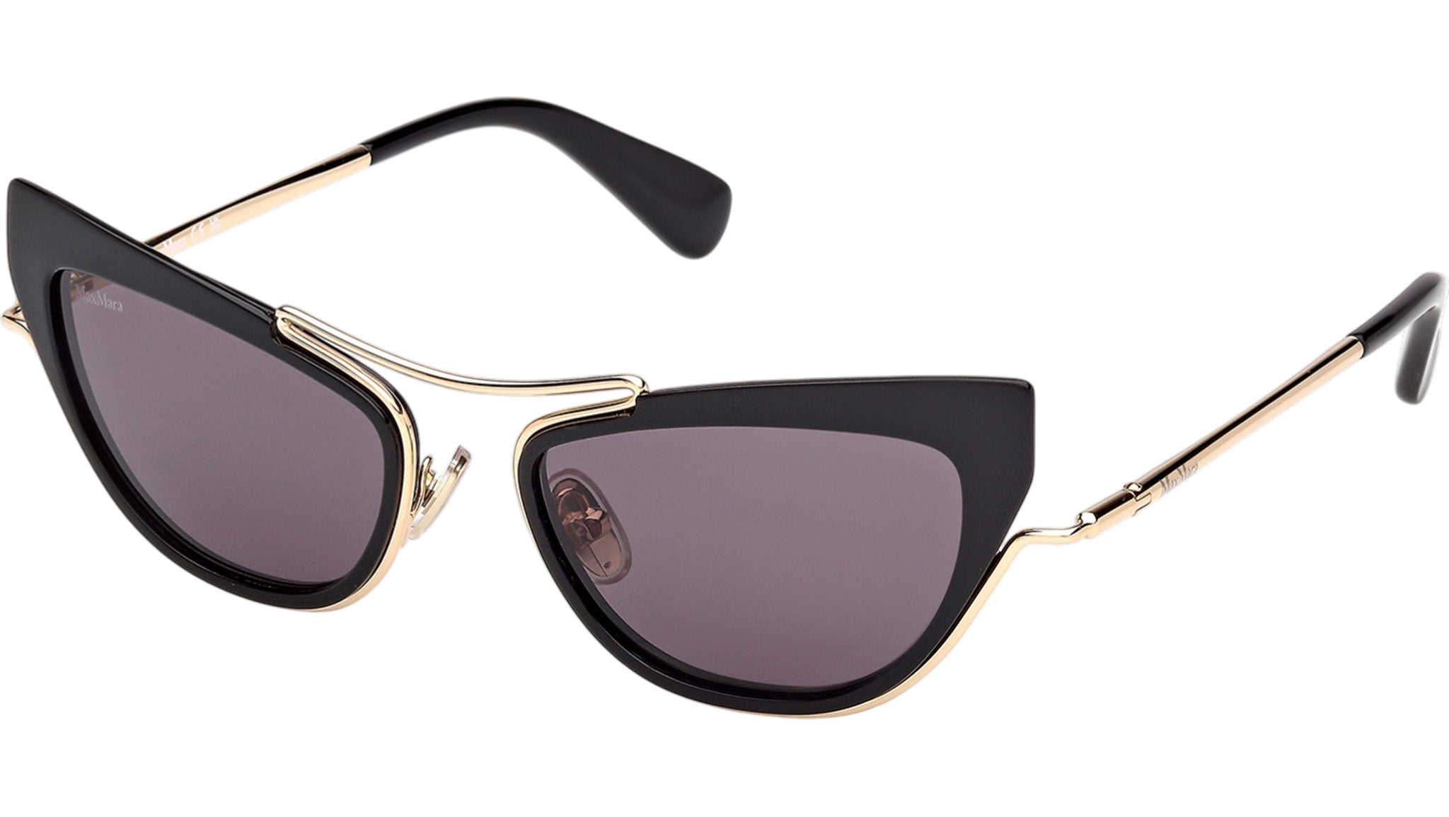Occhiali da sole Max Mara donna modello Ruth MM0172 con montatura cat eye full-rim in acetato nero lucido e lenti color grigio fumo. Made in Italy. Codice Brand: MM 0172. Codice colore: 01A. Rivenditore autorizzato Max Mara online. Gli occhiali vengono consegnati con custodia e accessori originali e sono coperti da garanzia standard di 12 mesi del produttore.