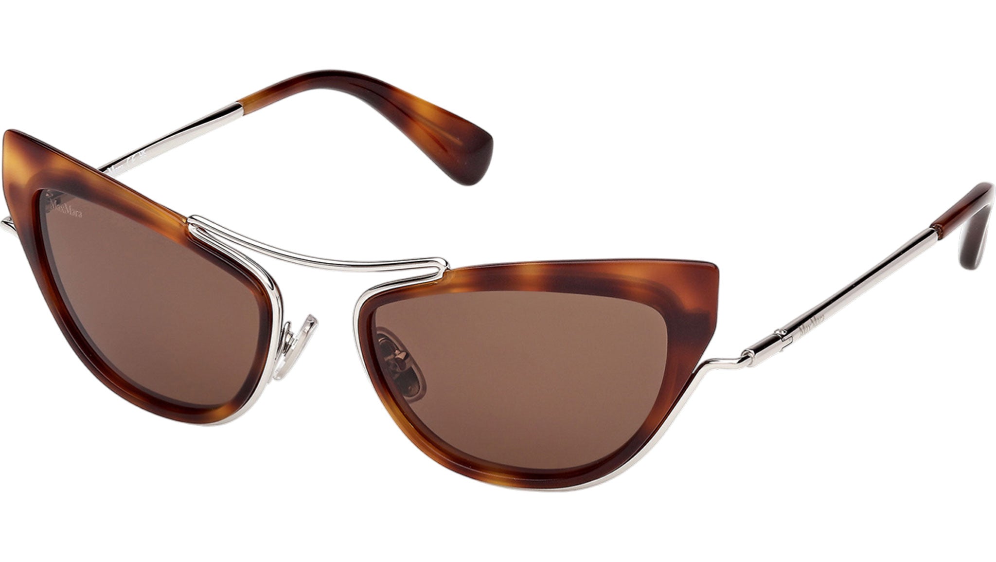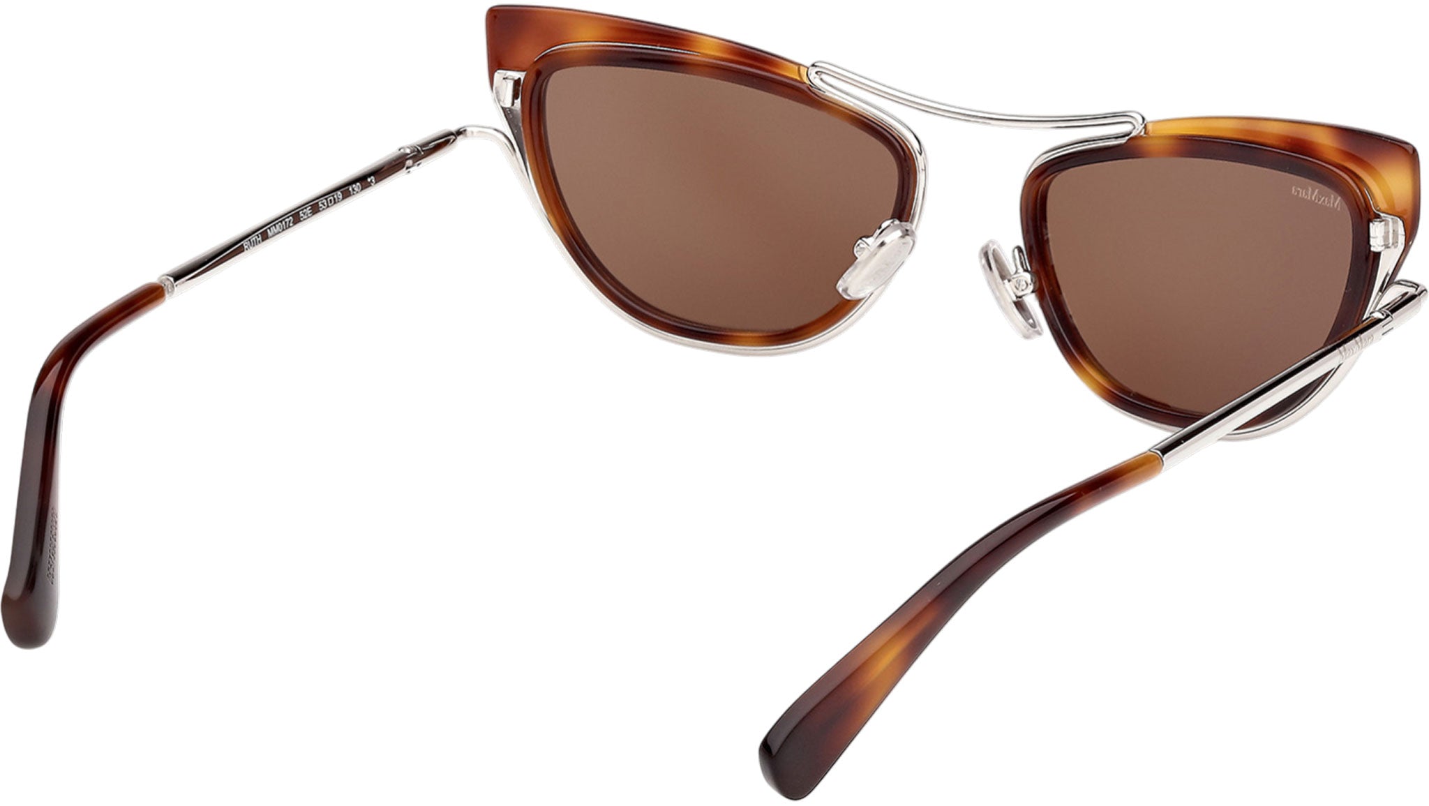 Occhiali da sole Max Mara donna modello Ruth MM0172 con montatura cat eye full-rim in acetato avana scuro e lenti color marrone. Made in Italy. Codice Brand: MM 0172. Codice colore: 52E. Rivenditore autorizzato Max Mara online. Gli occhiali vengono consegnati con custodia e accessori originali e sono coperti da garanzia standard di 12 mesi del produttore.