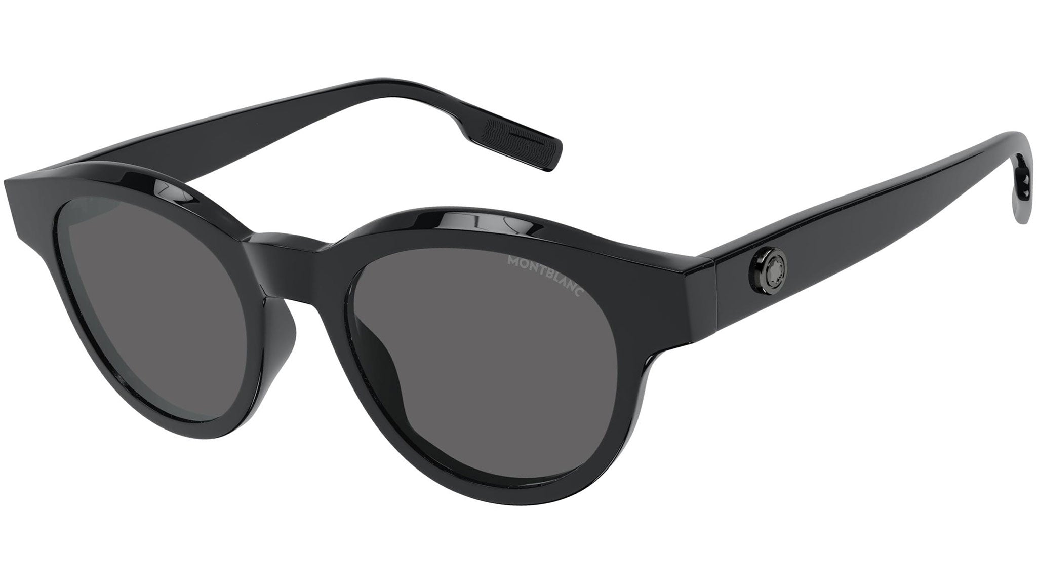 Occhiali da sole Montblanc linea Millennials modello MB0200S variante colore 001 nero lucido con lenti color grigio tinta unita.