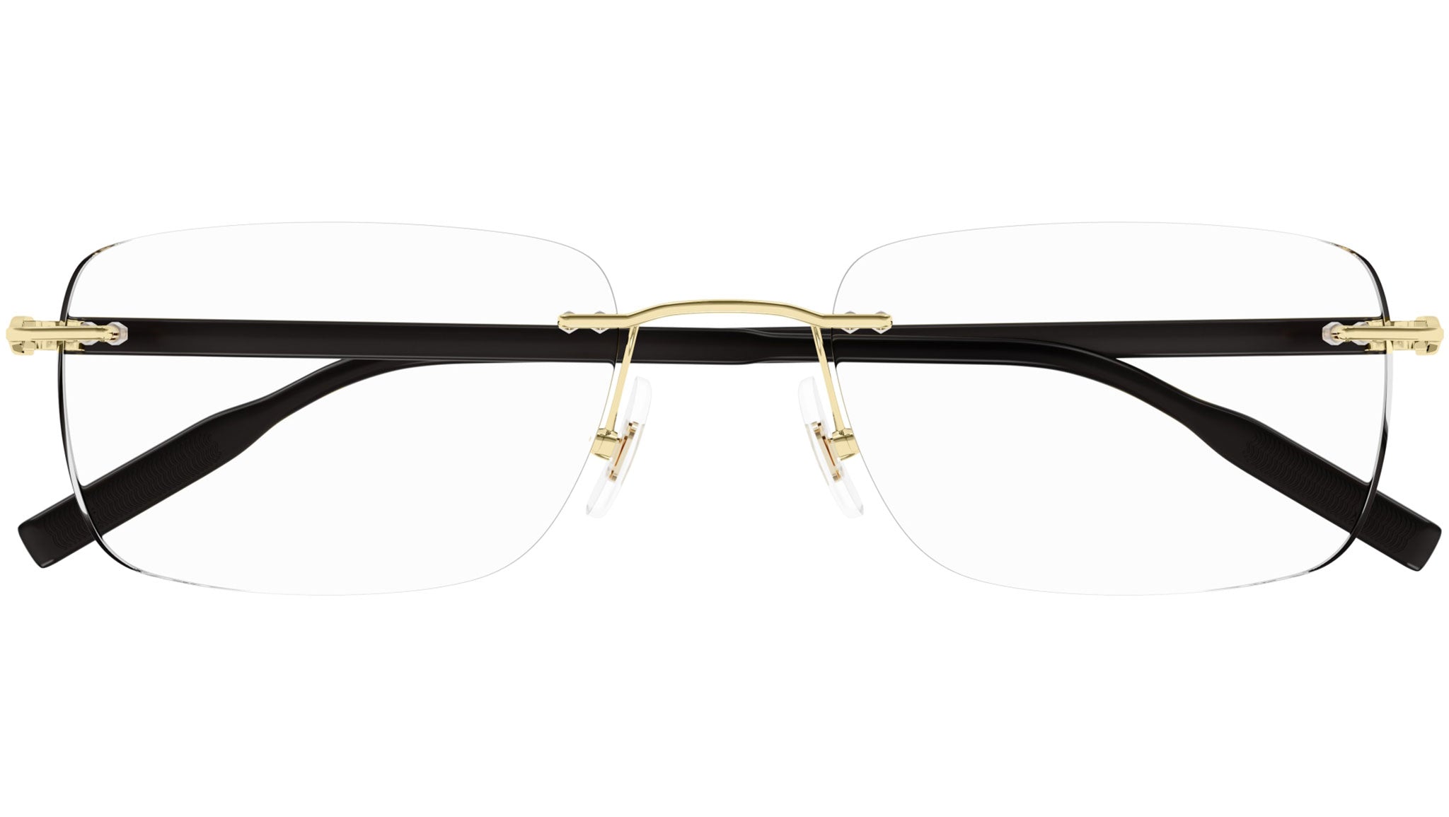 Occhiali da vista Monblanc linea Established modello MB0221O variante colore 015 oro chiaro lucido con astine color lenti demo.