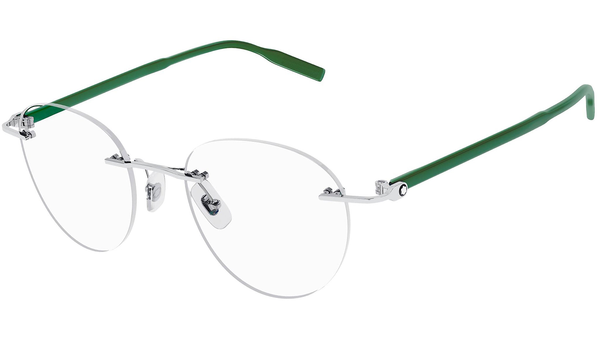 Occhiali da vista Montblanc linea Established modello 0224O, variante colore 004 argento lucido con astine color verde. Nella sua storia, Montblanc ha rivoluzionato la cultura della scrittura, con innovazioni straordinarie. Oggi, la Maison continua a spingersi oltre i confini, progredendo nell'espressione di un artigianato raffinato, in ciascuna delle sue categorie di prodotti: ai vertici negli strumenti di scrittura di lusso, nell'orologeria, nella pelletteria, nei profumi e negli occhiali.