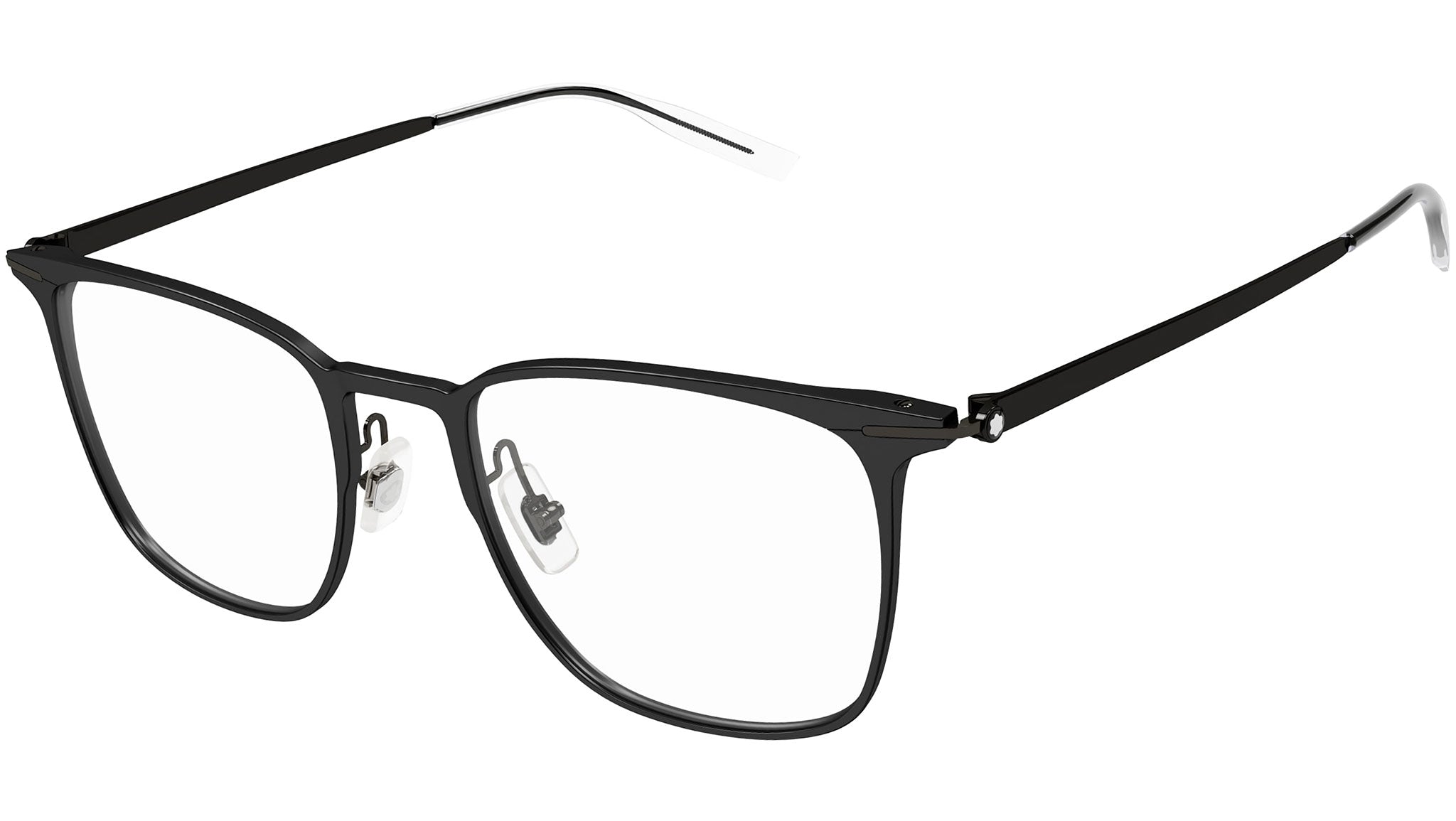 Occhiali da vista Montblanc linea Established modello MB0232O variante colore nero semiopaco con astine color lenti demo.