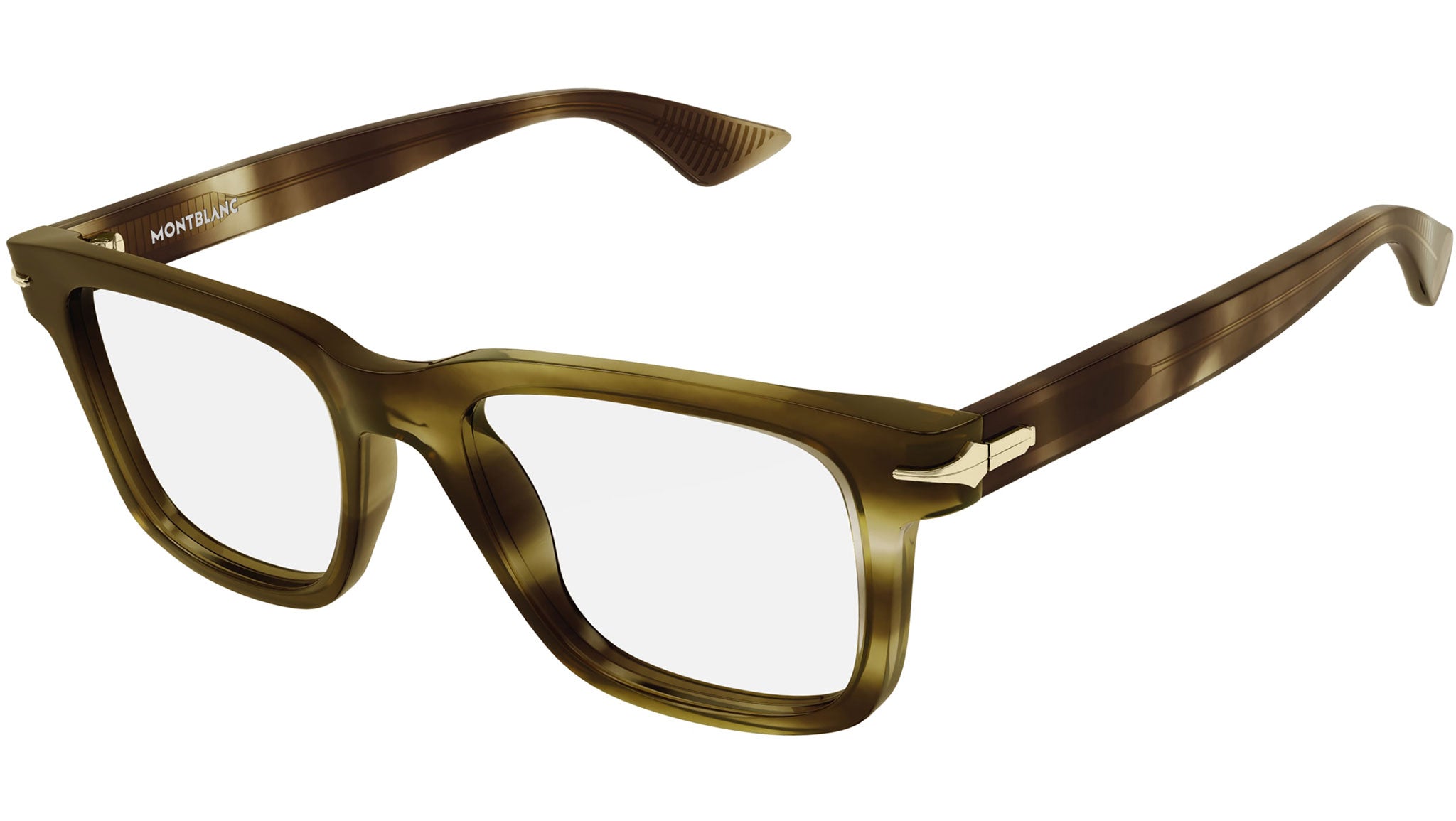 Occhiali da vista Montblanc Nib modello MB0266O in acetato riciclato rettangolare codice colore 010 kaki melange avana con aste in tartaruga e lenti demo. Rivenditore autorizzato Montblanc online. Gli occhiali vengono consegnati con custodia e accessori originali e sono coperti dalla garanzia ufficiale di 12 mesi del produttore.