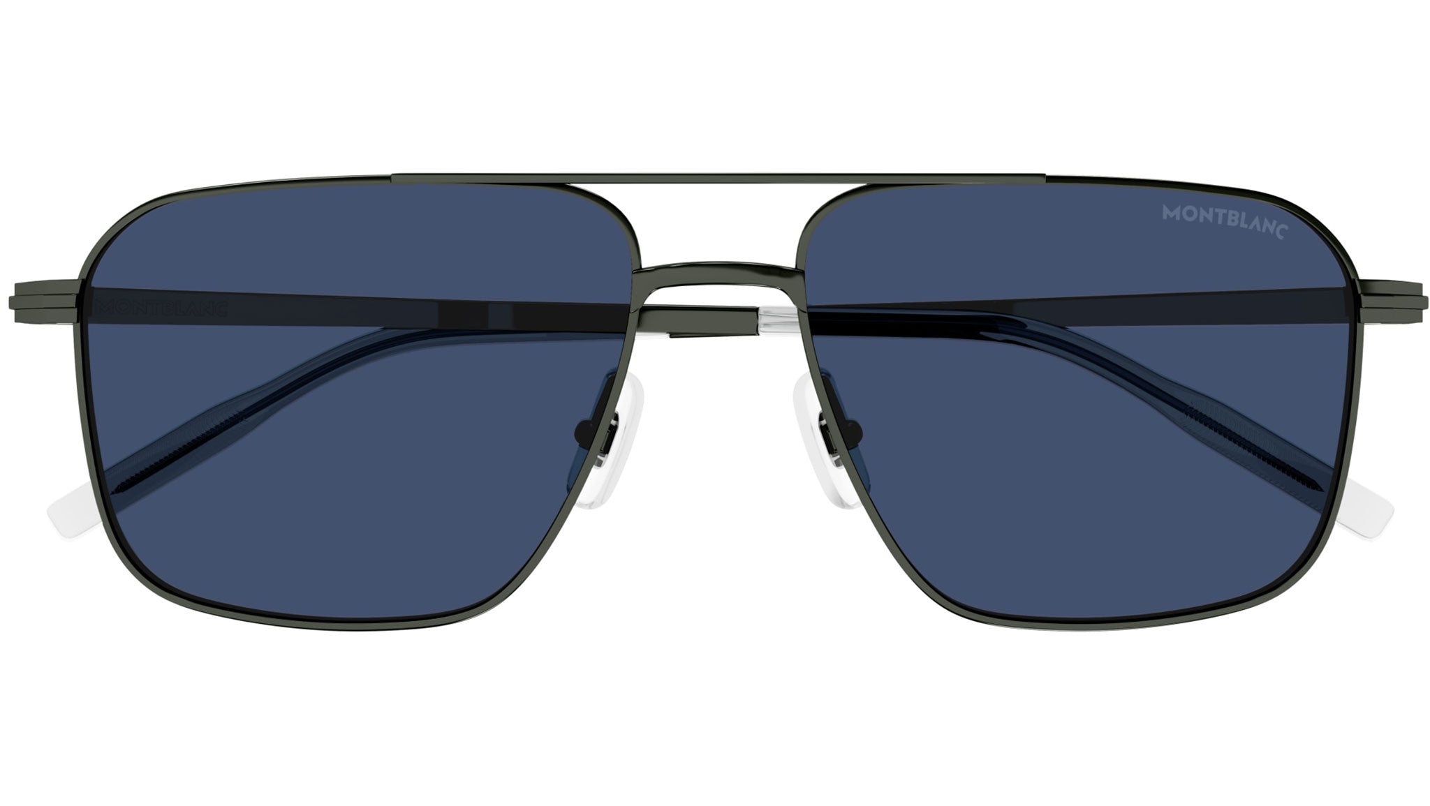 Occhiali da sole Montblanc linea Established modello MB0278S variante colore 003 rutenio scuro lucido con lenti color blu tinta unita.