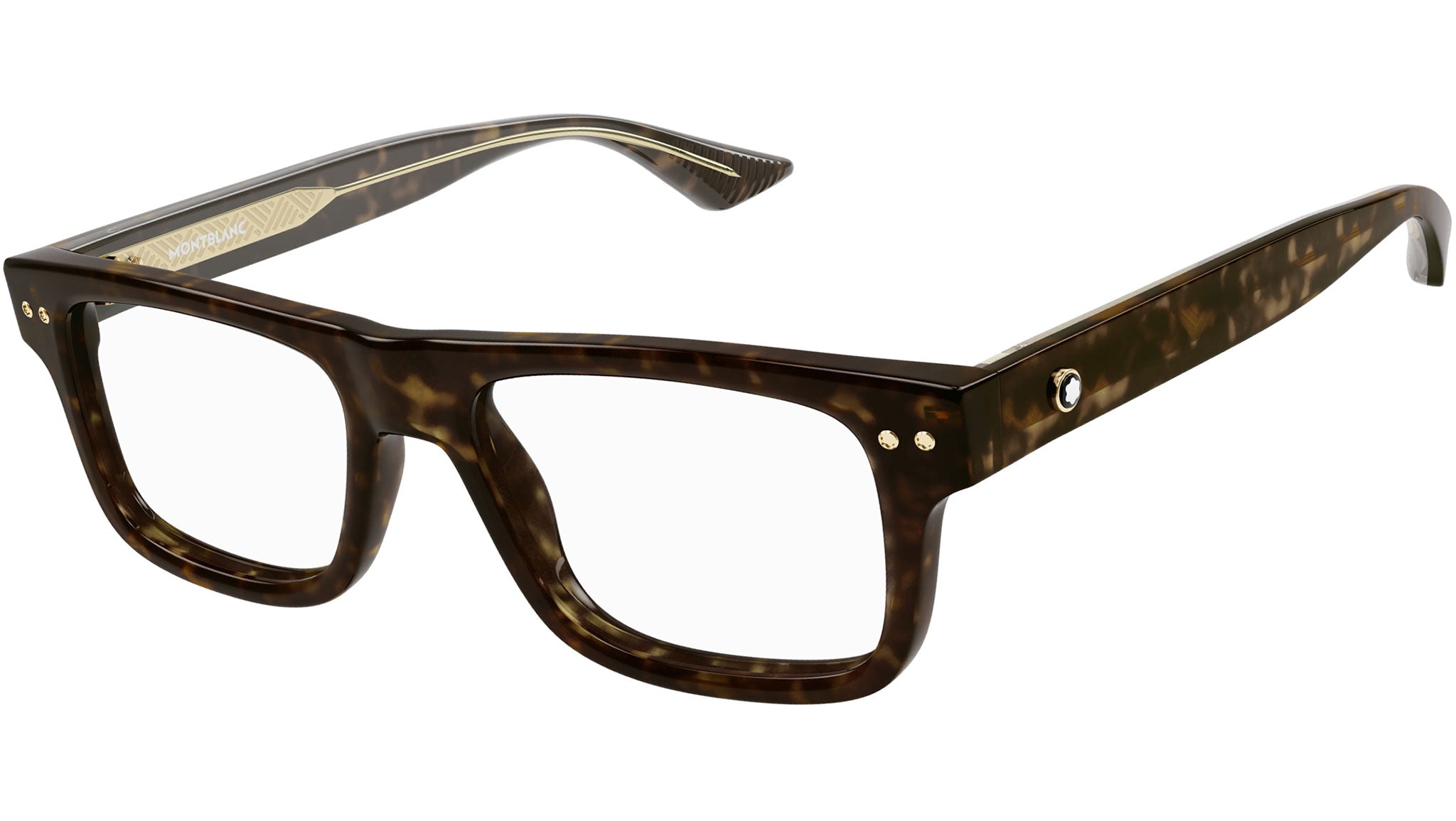 Occhiali da vista Montblanc modello MB0289O rectangle linea Snowcap in acetato riciclato, codice colore 002 tartaruga scuro lucido con aste color tartaruga e lenti demo.