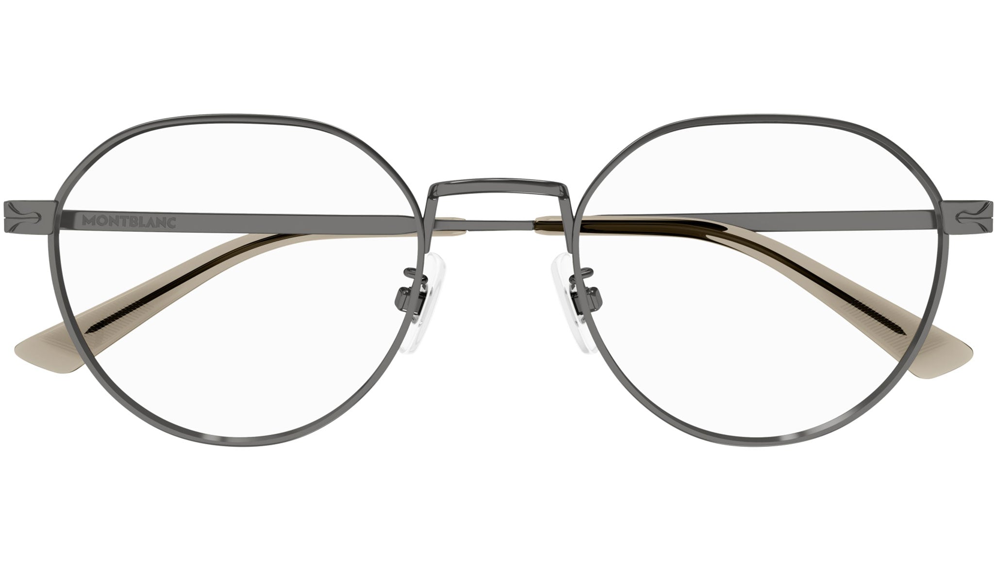 Occhiali da vista Montblanc modello MB0310OA panthos linea Nib in metallo, codice colore 002 rutenio scuro lucido con aste color rutenio e lenti demo.