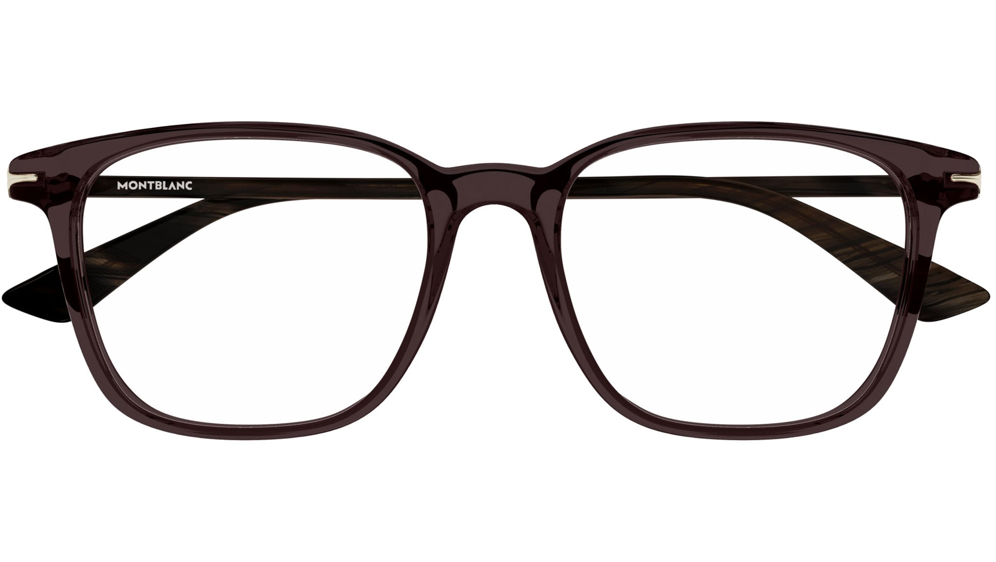 Occhiali da vista Montblanc Nib modello MB0338O in acetato riciclato rettangolare marrone tortora trasparente lucido con aste in marrone e lenti demo. Rivenditore autorizzato Montblanc online. Gli occhiali vengono consegnati con custodia e accessori originali e sono coperti dalla garanzia ufficiale di 12 mesi del produttore.