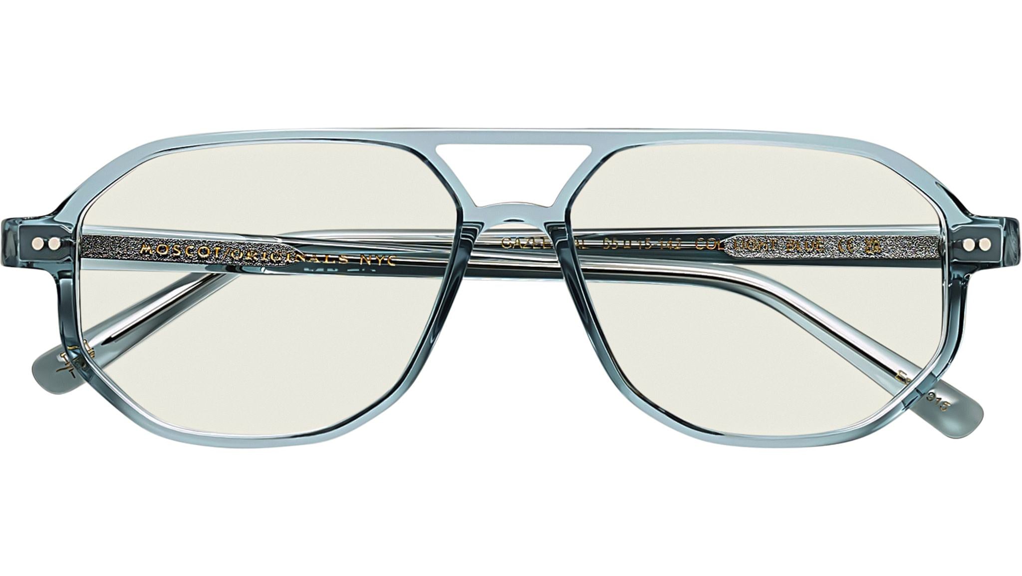Occhiali da vista Moscot Gazeektal unisex con montatura geometrica in acetato azzurro e lenti demo. Linea: Originals. Codice modello: Gazeektal. Codice colore: 1206. Rivenditore autorizzato Moscot online. Gli occhiali vengono consegnati con custodia e accessori originali e sono coperti dalla garanzia ufficiale di 12 mesi del produttore.