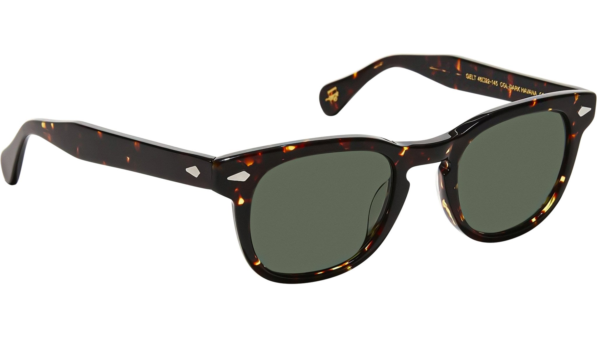 Occhiali da sole Moscot Gelt Sun unisex con montatura squadrata in acetato avana scuro e lenti verde G-15. Linea: Originals. Codice modello: Gelt Sun. Codice colore: 0400. Rivenditore autorizzato Moscot online. Gli occhiali vengono consegnati con custodia e accessori originali e sono coperti dalla garanzia ufficiale di 12 mesi del produttore.