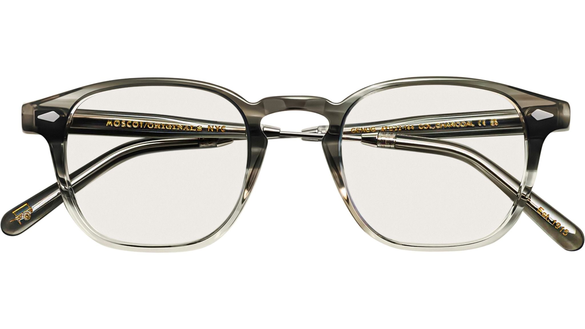 Occhiali da vista Moscot Genug unisex con montatura squadrata in acetato-metallo carbone di legna e lenti demo. Linea: Originals. Codice modello: Genug. Codice colore: 0310. Rivenditore autorizzato Moscot online. Gli occhiali vengono consegnati con custodia e accessori originali e sono coperti dalla garanzia ufficiale di 12 mesi del produttore.