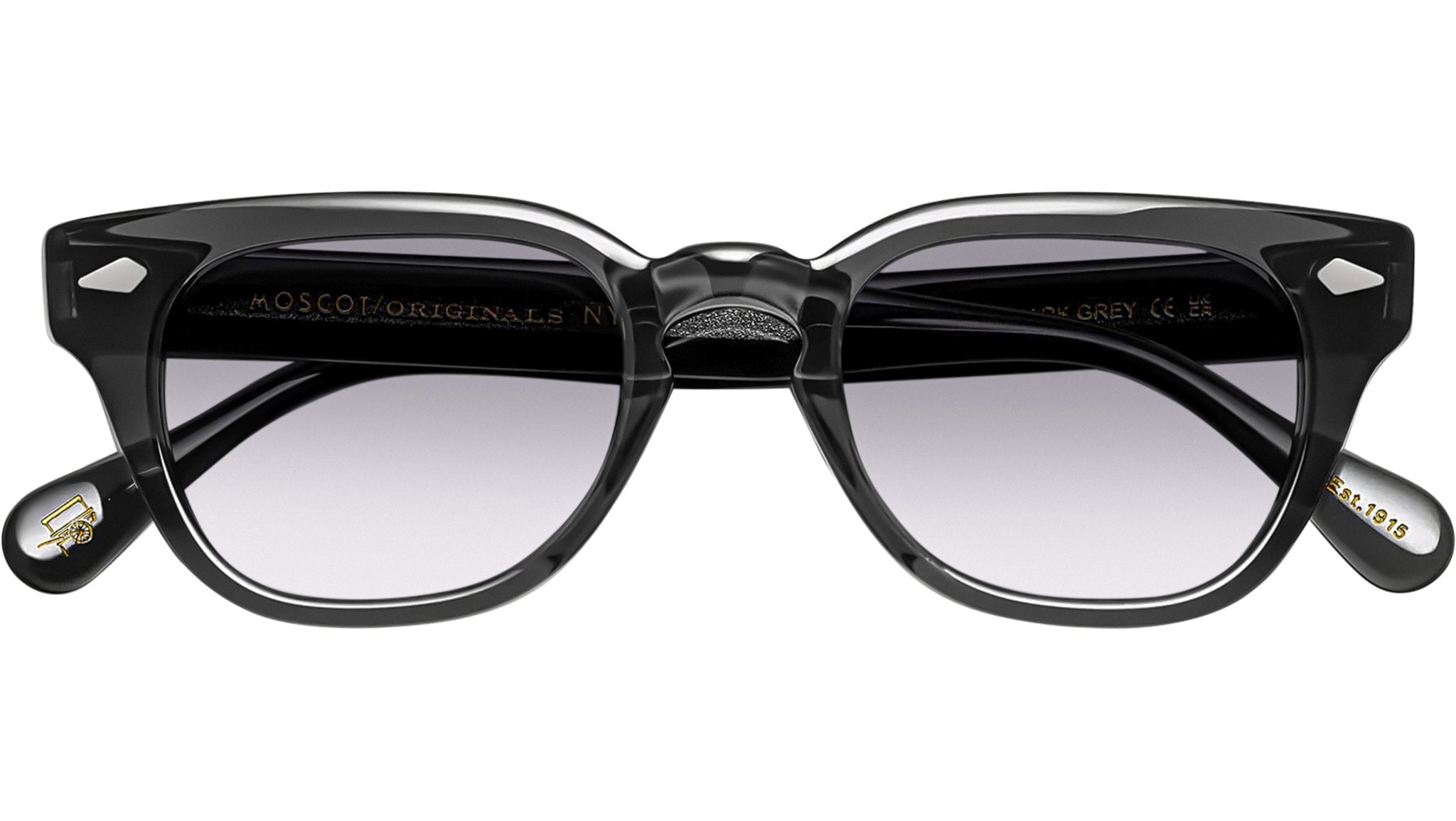 Occhiali da sole Moscot Hazen Sun unisex con montatura rotonda in acetato grigio scuro e lenti grigio sfumato. Linea: Originals. Codice modello: Hazen Sun. Codice colore: 0408. Rivenditore autorizzato Moscot online. Gli occhiali vengono consegnati con custodia e accessori originali e sono coperti dalla garanzia ufficiale di 12 mesi del produttore.