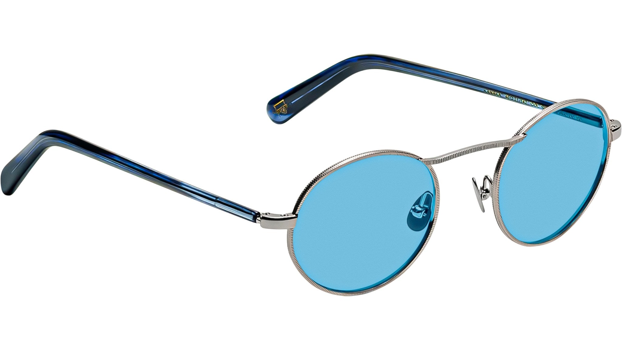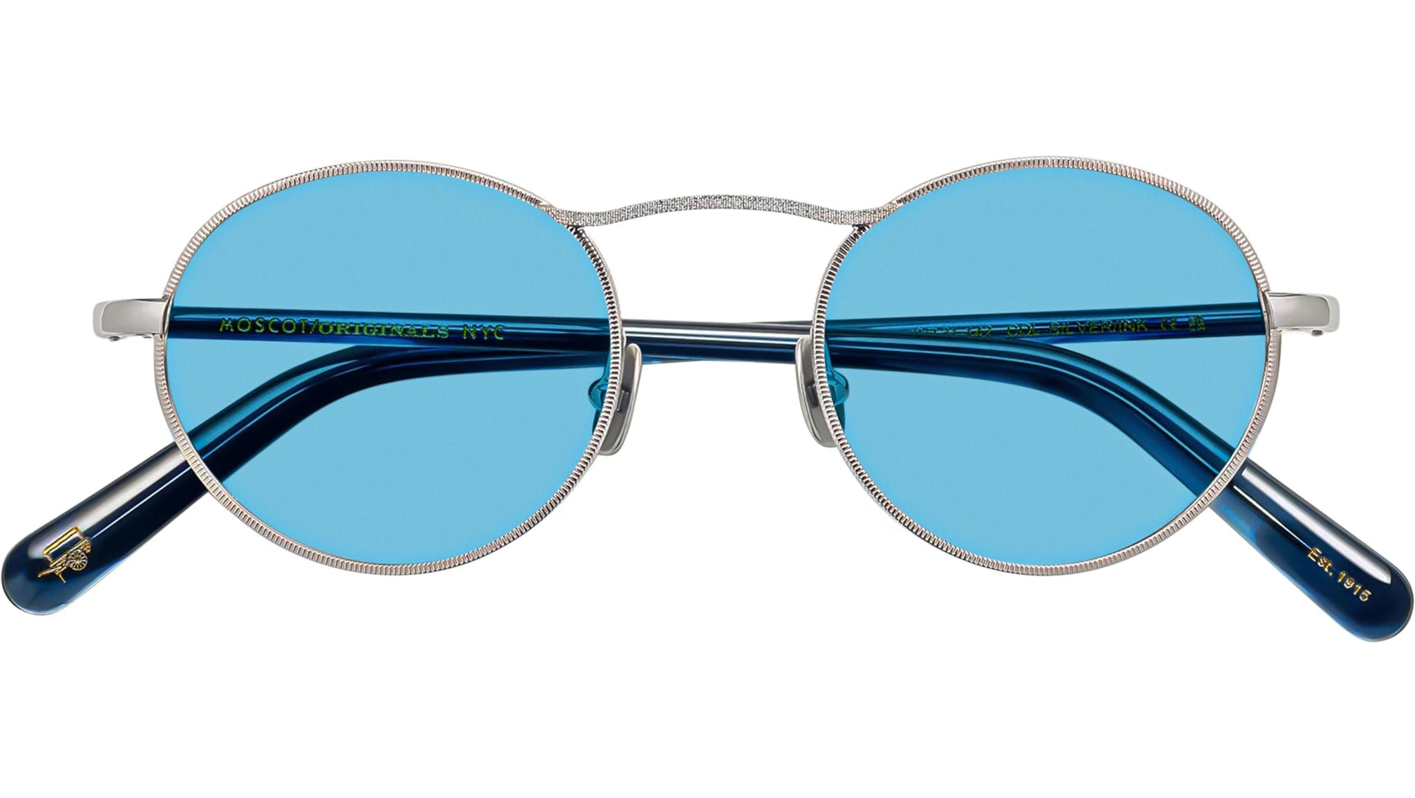 Occhiali da sole Moscot Kanaka Sun unisex con montatura rotonda in metallo argento / inchiostro e lenti blu mineral. Linea: Originals. Codice modello: Kanaka Sun. Codice colore: 0863. Rivenditore autorizzato Moscot online. Gli occhiali vengono consegnati con custodia e accessori originali e sono coperti dalla garanzia ufficiale di 12 mesi del produttore.
