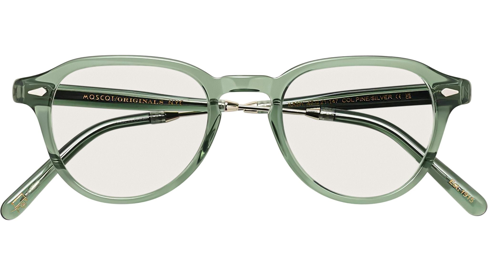 Occhiali da vista Moscot Kash unisex con montatura rotonda in acetato-metallo pino / argento e lenti demo. Linea: Originals. Codice modello: Kash. Codice colore: 2901. Rivenditore autorizzato Moscot online. Gli occhiali vengono consegnati con custodia e accessori originali e sono coperti dalla garanzia ufficiale di 12 mesi del produttore.