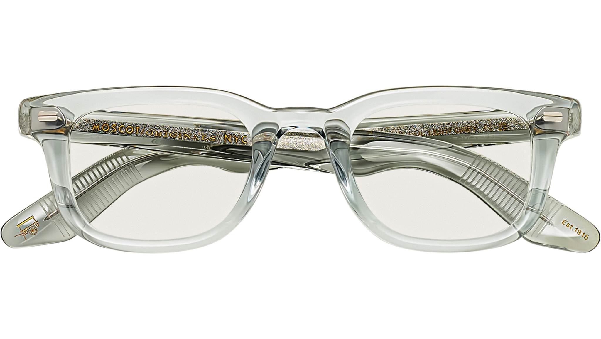 Occhiali da vista Moscot Klutz unisex con montatura squadrata in acetato grigio chiaro e lenti demo. Linea: Originals. Codice modello: Klutz. Codice colore: 1202. Rivenditore autorizzato Moscot online. Gli occhiali vengono consegnati con custodia e accessori originali e sono coperti dalla garanzia ufficiale di 12 mesi del produttore.