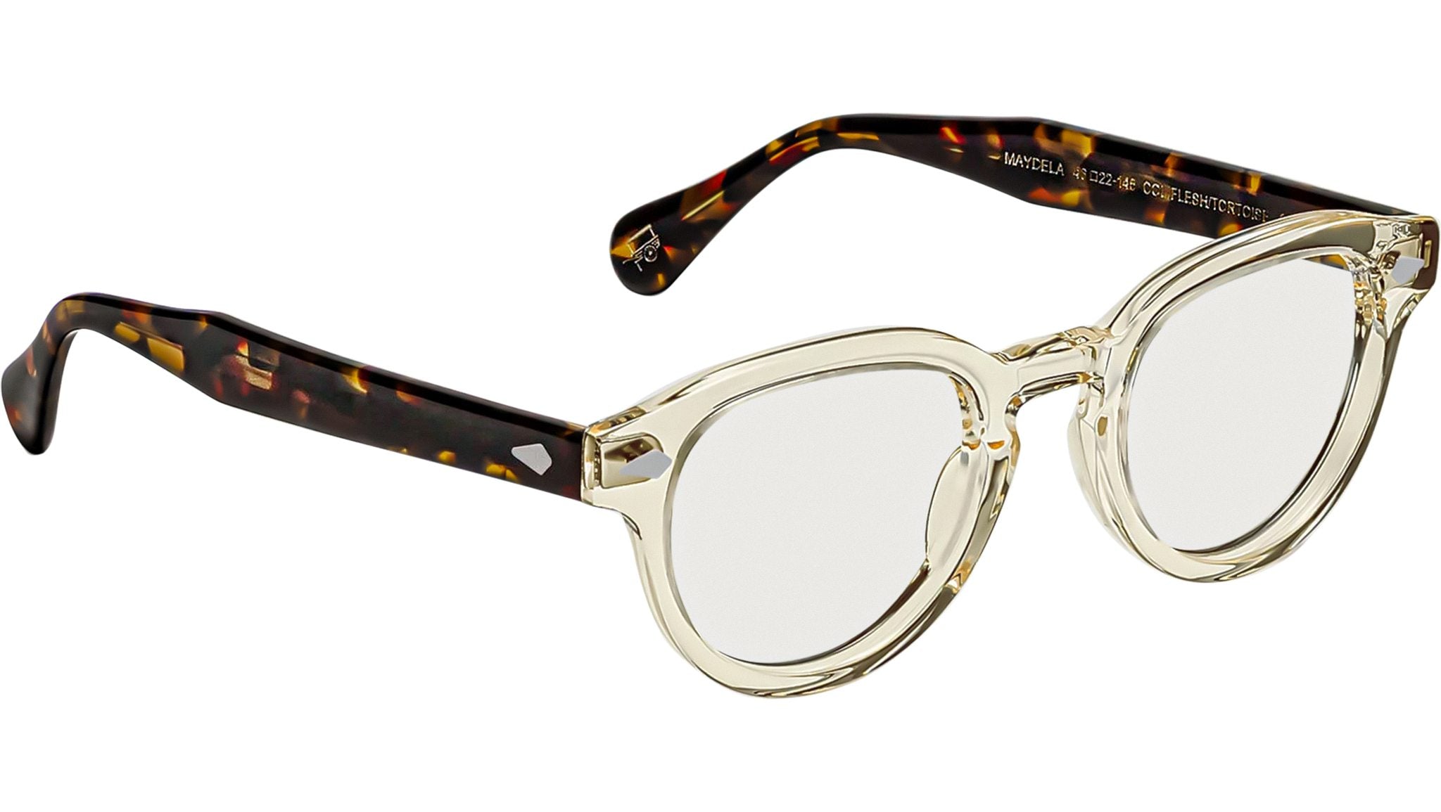 Occhiali da vista Moscot Maydela unisex con montatura rotonda in acetato carne e lenti demo. Linea: Originals. Codice modello: Maydela. Codice colore: 0601. Rivenditore autorizzato Moscot online. Gli occhiali vengono consegnati con custodia e accessori originali e sono coperti dalla garanzia ufficiale di 12 mesi del produttore.