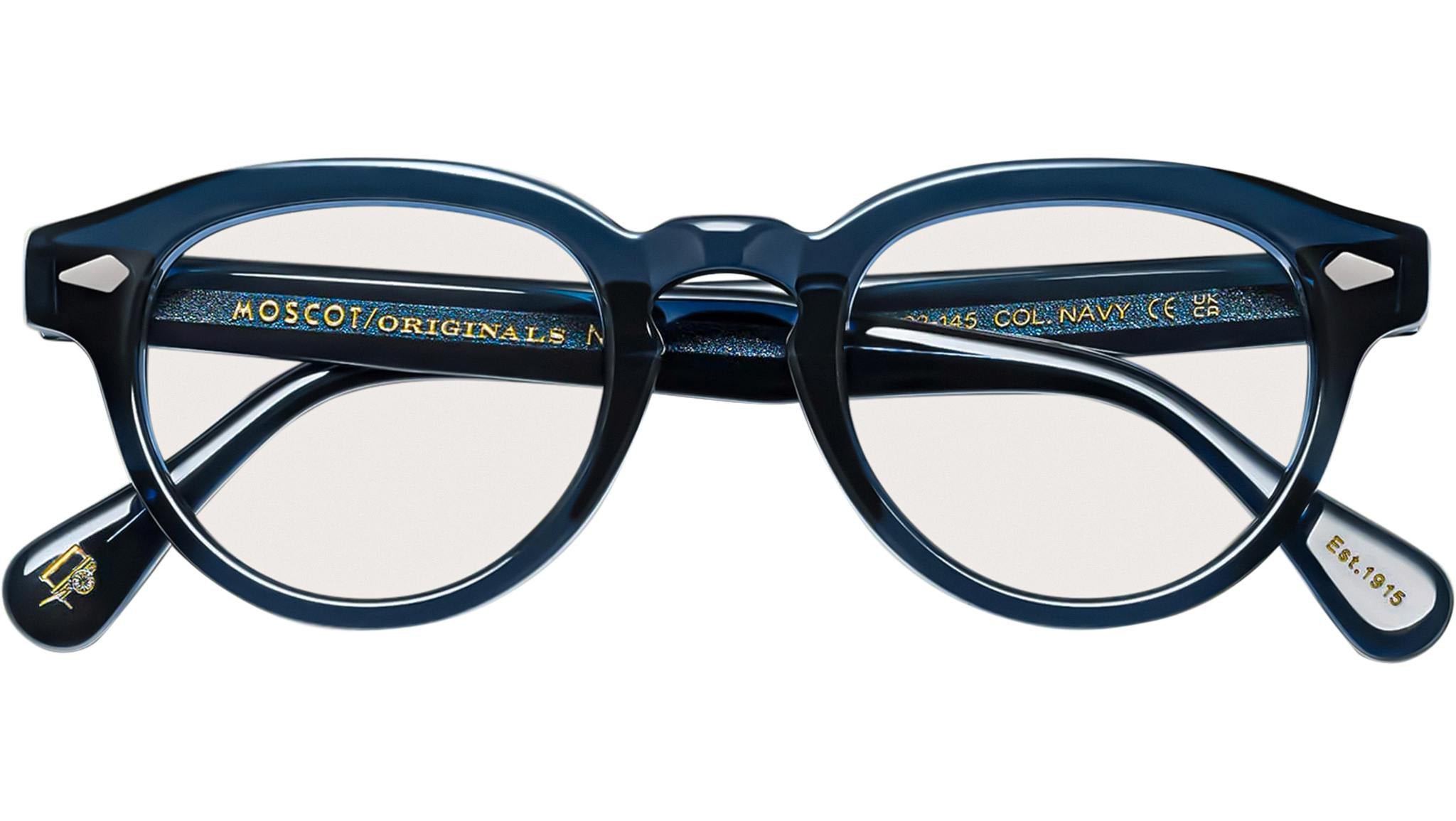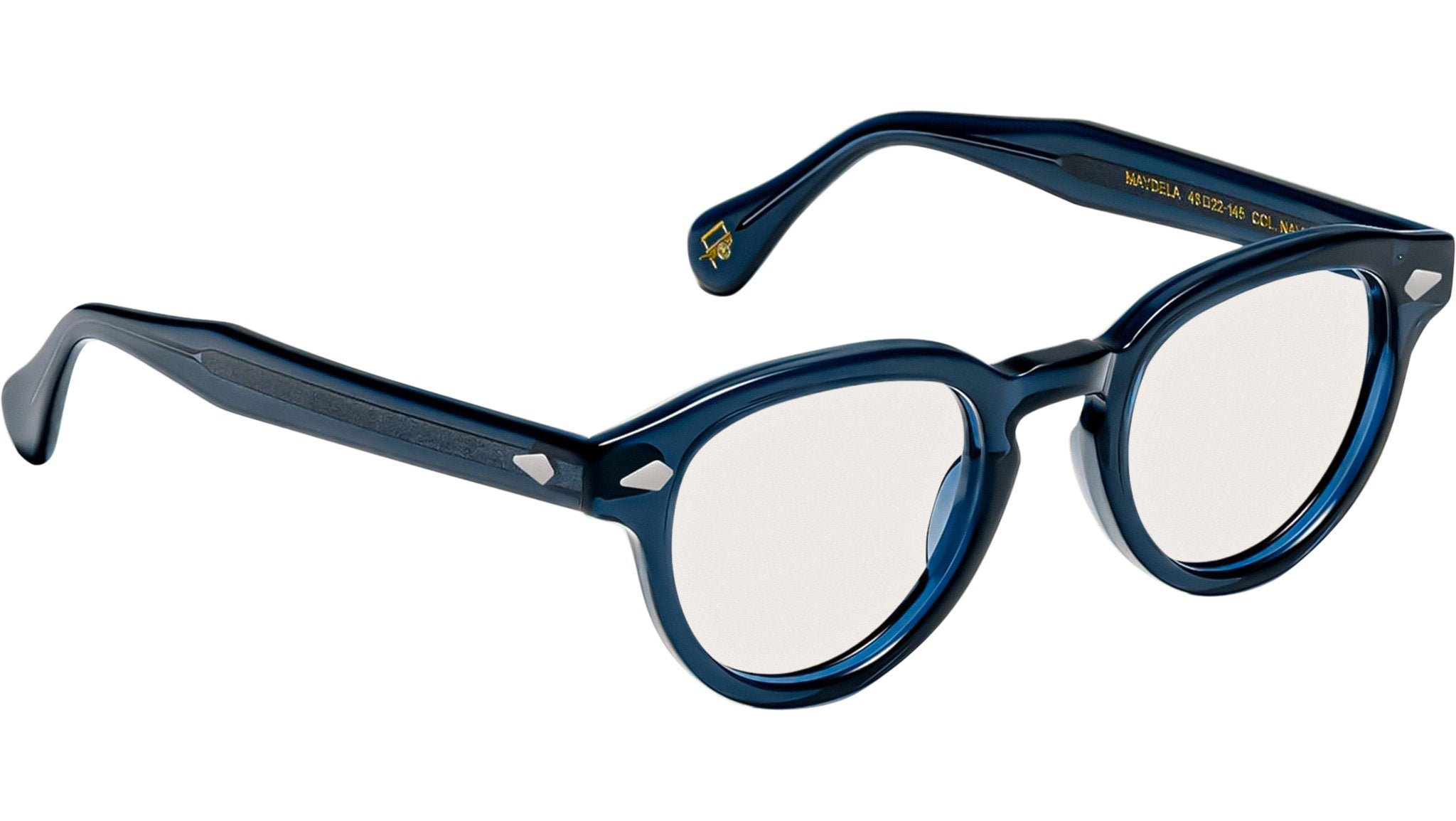 Occhiali da vista Moscot Maydela unisex con montatura rotonda in acetato blu scuro e lenti demo. Linea: Originals. Codice modello: Maydela. Codice colore: 1400. Rivenditore autorizzato Moscot online. Gli occhiali vengono consegnati con custodia e accessori originali e sono coperti dalla garanzia ufficiale di 12 mesi del produttore.