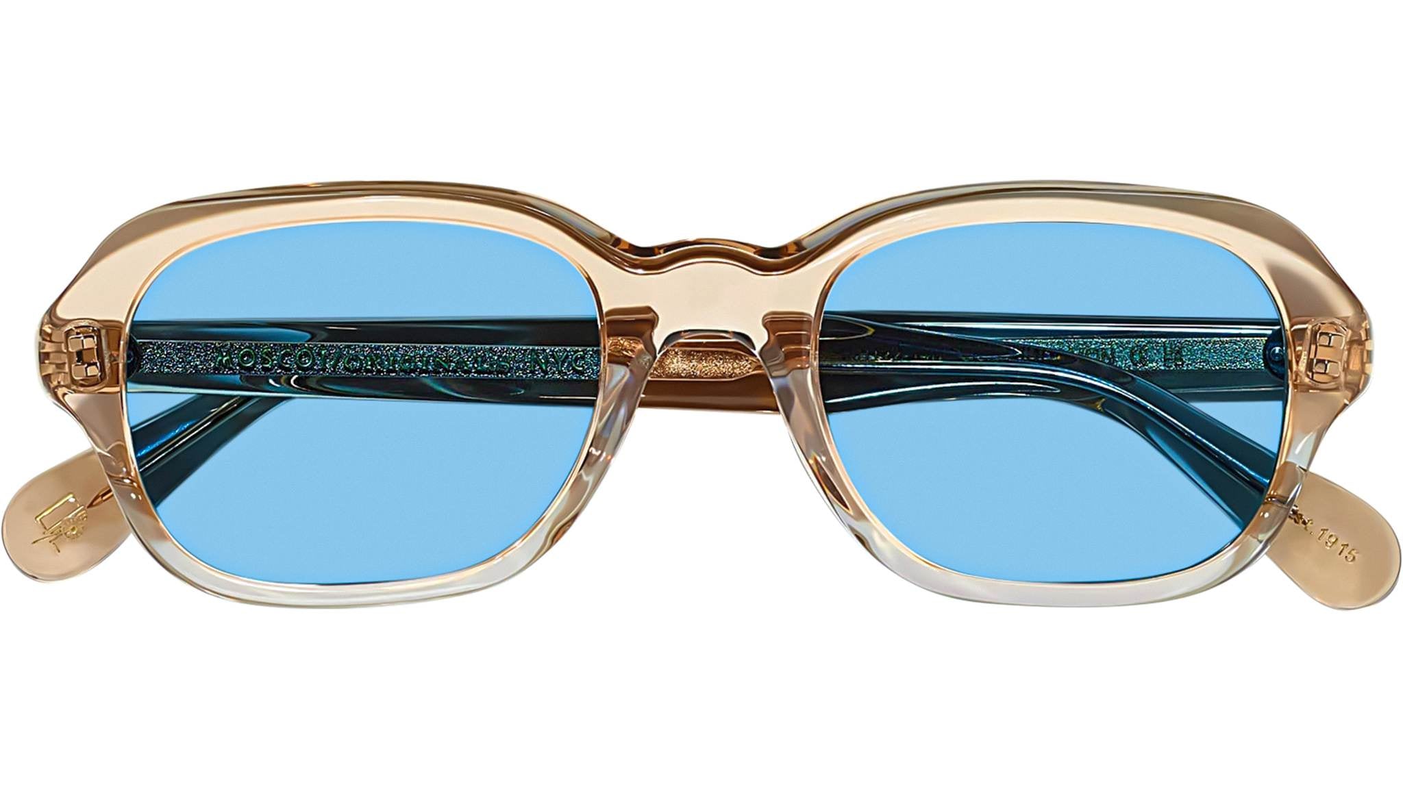Occhiali da sole Moscot Meshug Sun unisex con montatura rotonda in acetato cannella e lenti blu celebrity. Linea: Originals. Codice modello: Meshug Sun. Codice colore: 0312. Rivenditore autorizzato Moscot online. Gli occhiali vengono consegnati con custodia e accessori originali e sono coperti dalla garanzia ufficiale di 12 mesi del produttore.