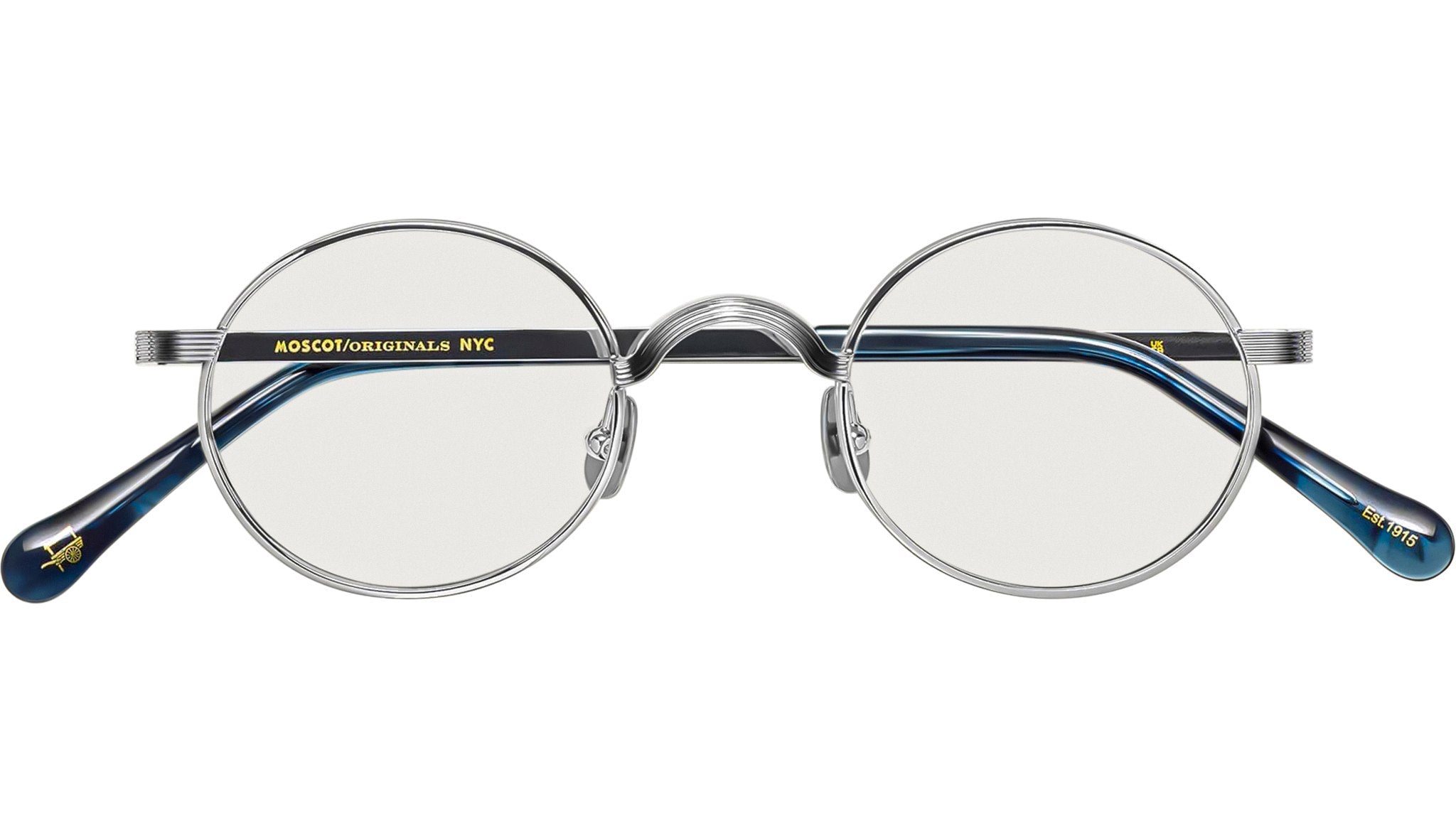 Occhiali da vista Moscot Moyel unisex con montatura rotonda in metallo argento e lenti demo. Linea: Originals. Codice modello: Moyel. Codice colore: 1902. Rivenditore autorizzato Moscot online. Gli occhiali vengono consegnati con custodia e accessori originali e sono coperti dalla garanzia ufficiale di 12 mesi del produttore.
