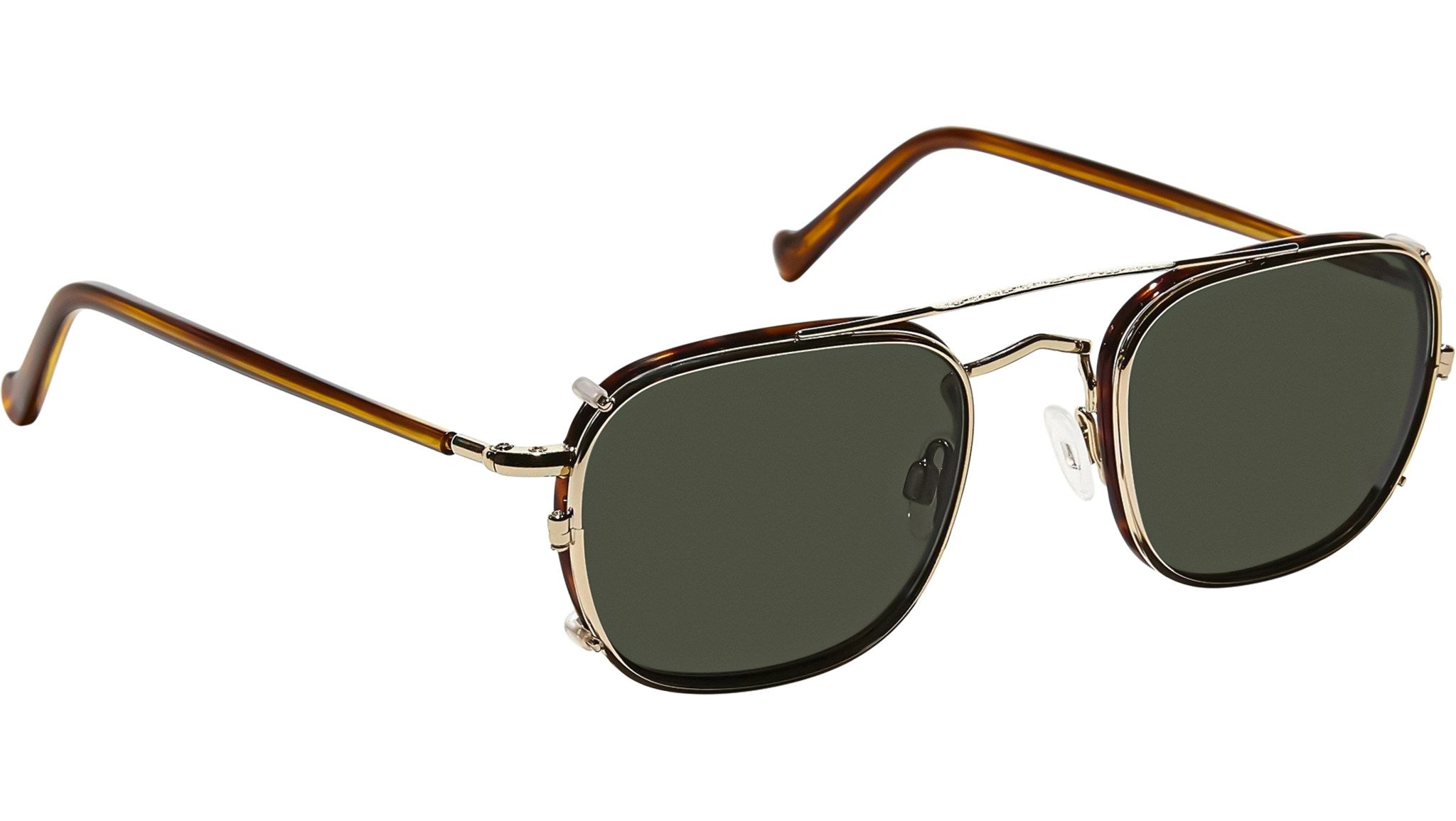 Clip per occhiali da vista Moscot Schlep Clip unisex con montatura squadrata in metallo oro e lenti verde G-15. Linea: Originals. Codice modello: Schlep Clip. Codice colore: 0700-02. Rivenditore autorizzato Moscot online. Gli occhiali vengono consegnati con custodia e accessori originali e sono coperti dalla garanzia ufficiale di 12 mesi del produttore.