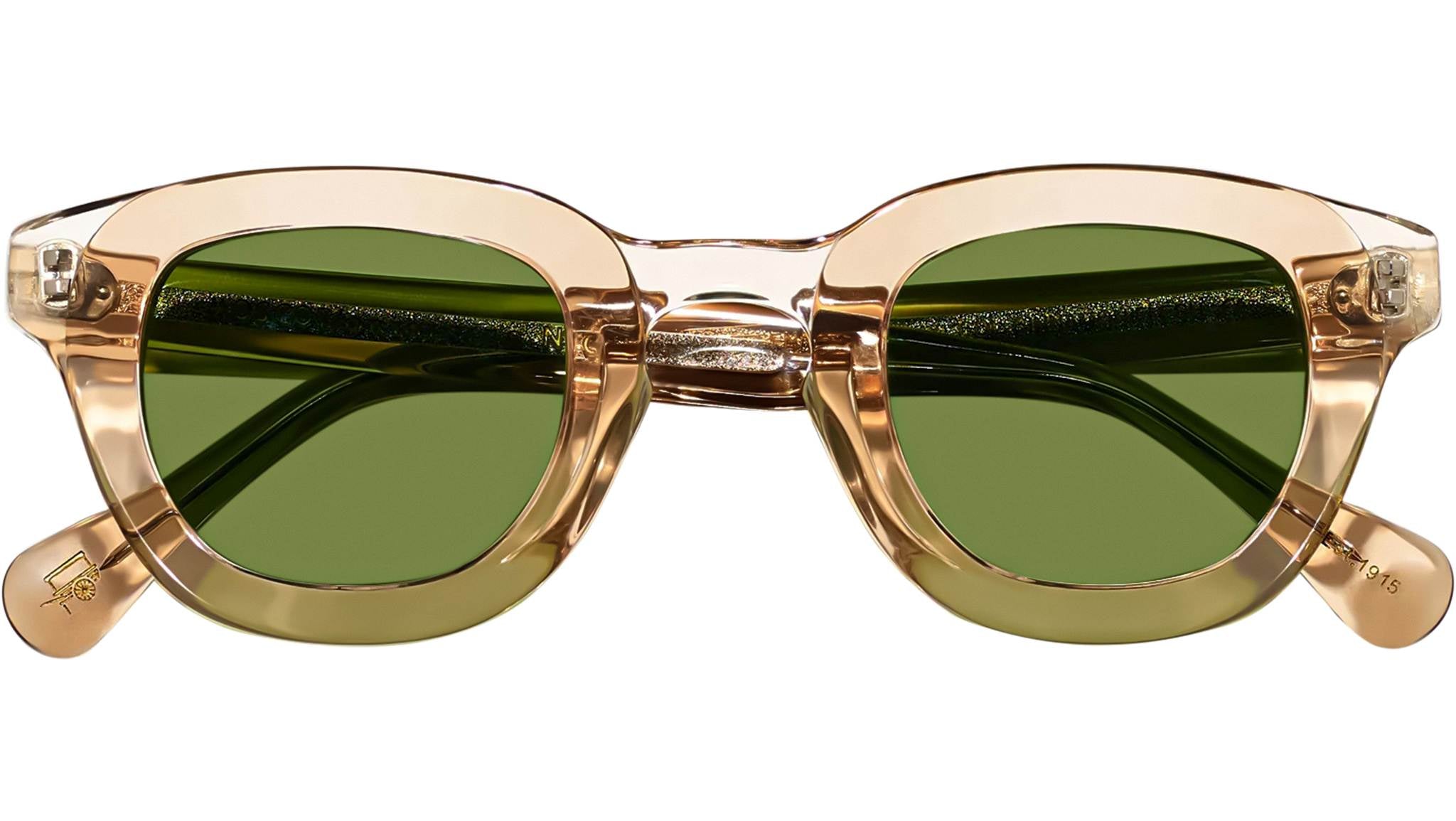 Occhiali da sole Moscot Telena Sun unisex con montatura squadrata in acetato cannella / carne e lenti verde calibar. Linea: Originals. Codice modello: Telena Sun. Codice colore: 0319. Rivenditore autorizzato Moscot online. Gli occhiali vengono consegnati con custodia e accessori originali e sono coperti dalla garanzia ufficiale di 12 mesi del produttore.