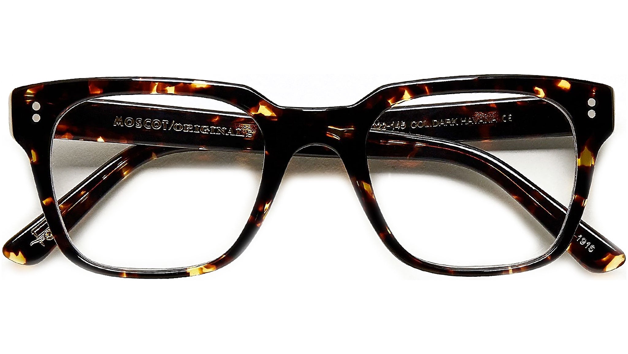 Handcrafted using Italian acetate featuring unique patterns distinctive to each frame. Features two dot rivets. Comfortable saddle nose bridge. Includes acetate nose pads. 5-Barrel hinge. Moscot temple engravings.