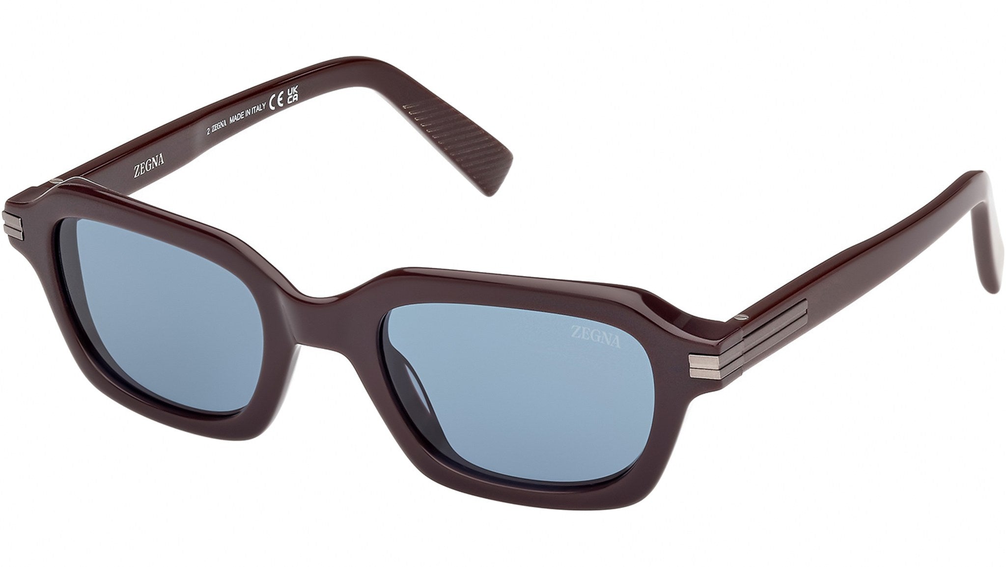 Occhiali da sole Zegna uomo modello EZ0239 con montatura marrone scuro lucido full-rim in acetato e lenti color blu. Codice Brand: EZ0239. Codice colore: 48V. Rivenditore autorizzato Ermenegildo Zegna online. Gli occhiali vengono consegnati con custodia e accessori originali e sono coperti da garanzia standard di 12 mesi del produttore.