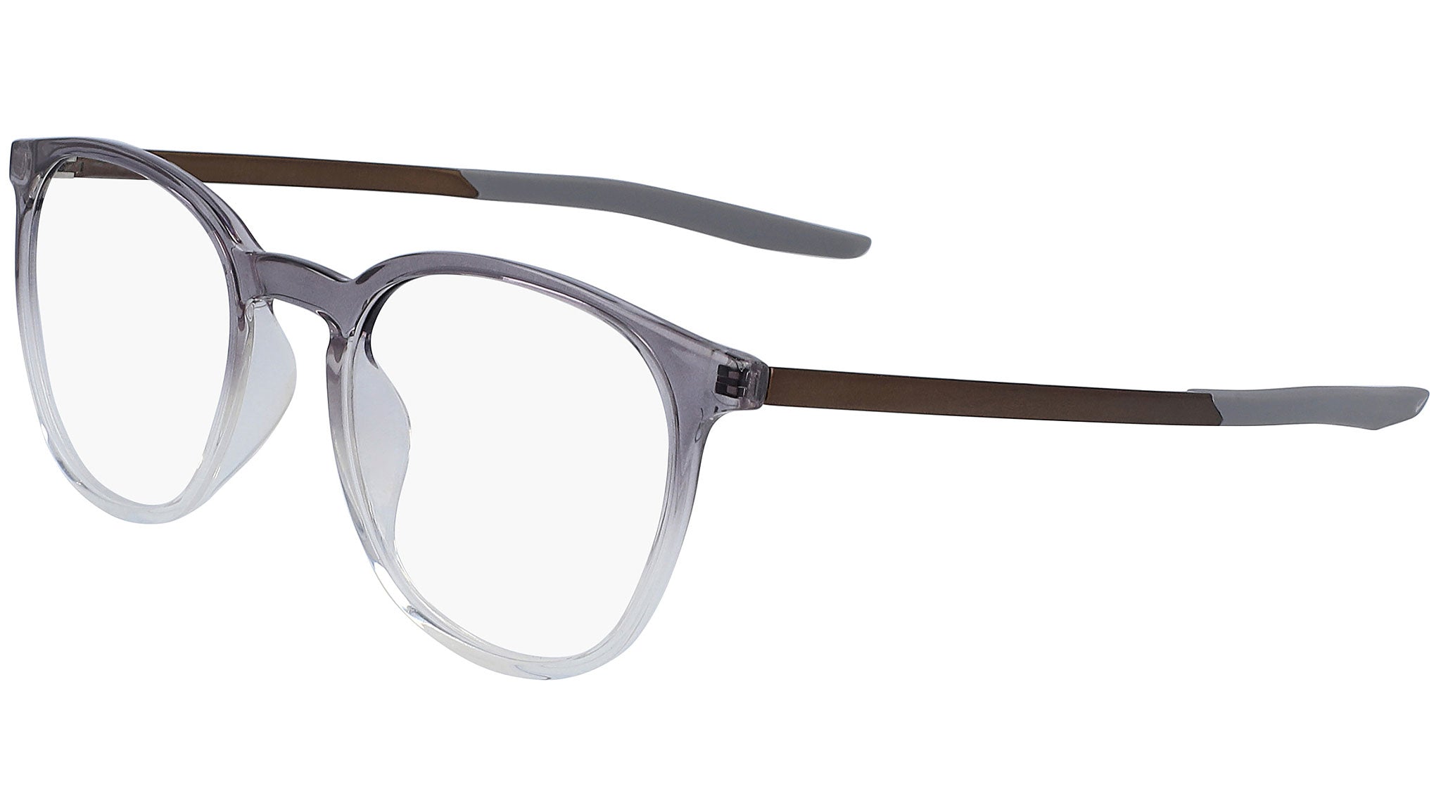 Lightweight, injected design. Thin metal temple with nylon temple tip. Pad print swoosh on right wearing temple. Debossed enamel filled nike swoosh on back, left wearing temple tip