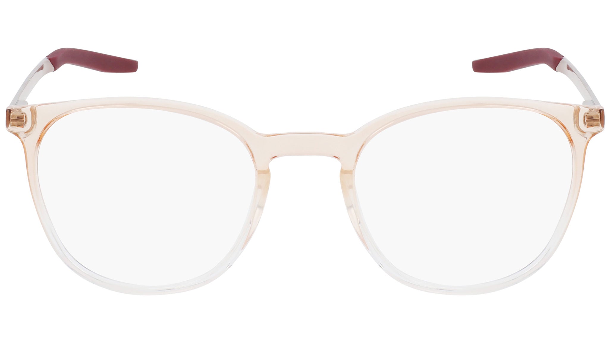 Lightweight, injected design. Thin metal temple with nylon temple tip. Pad print swoosh on right wearing temple. Debossed enamel filled nike swoosh on back, left wearing temple tip