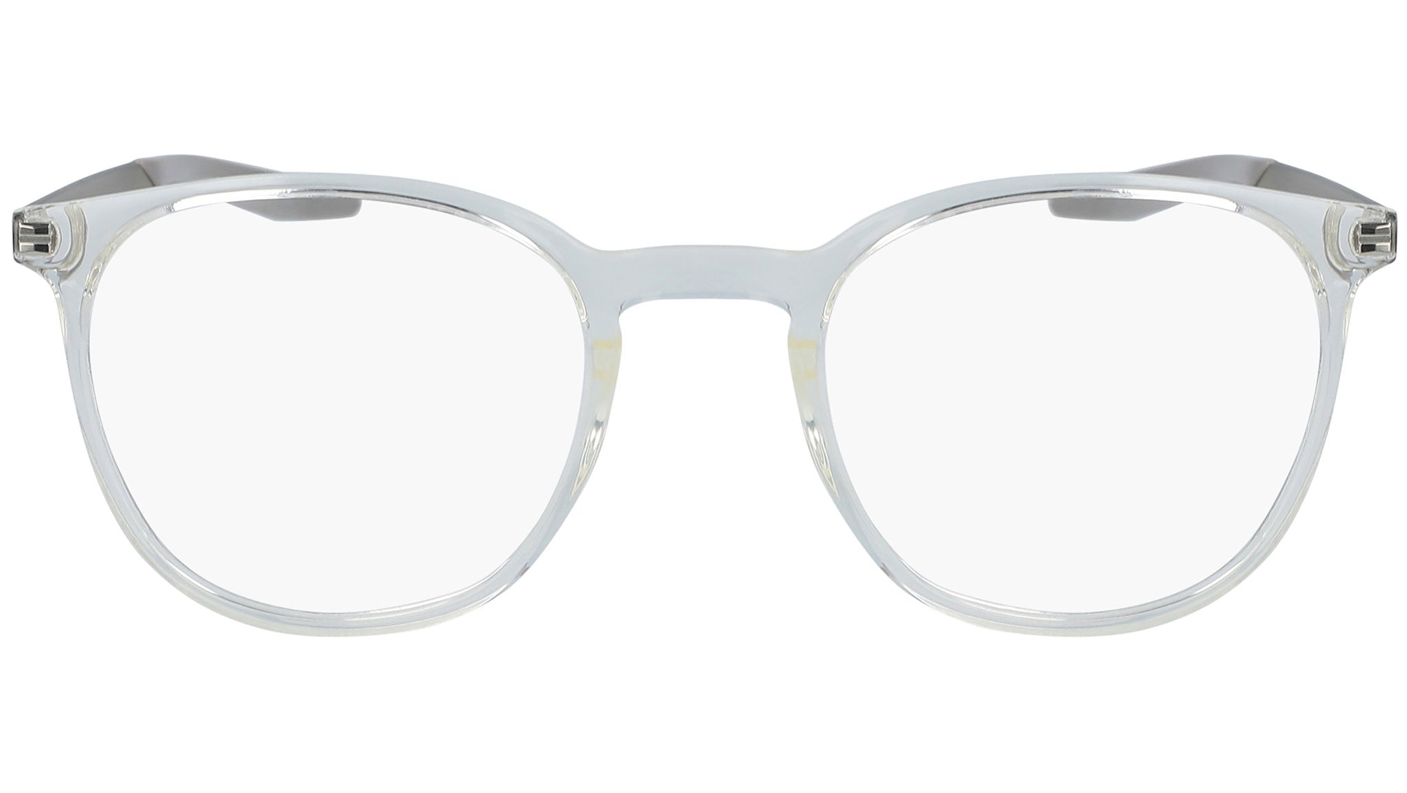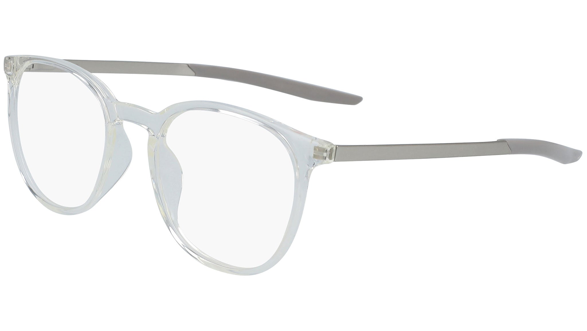 Lightweight, injected design. Thin metal temple with nylon temple tip. Pad print swoosh on right wearing temple. Debossed enamel filled nike swoosh on back, left wearing temple tip