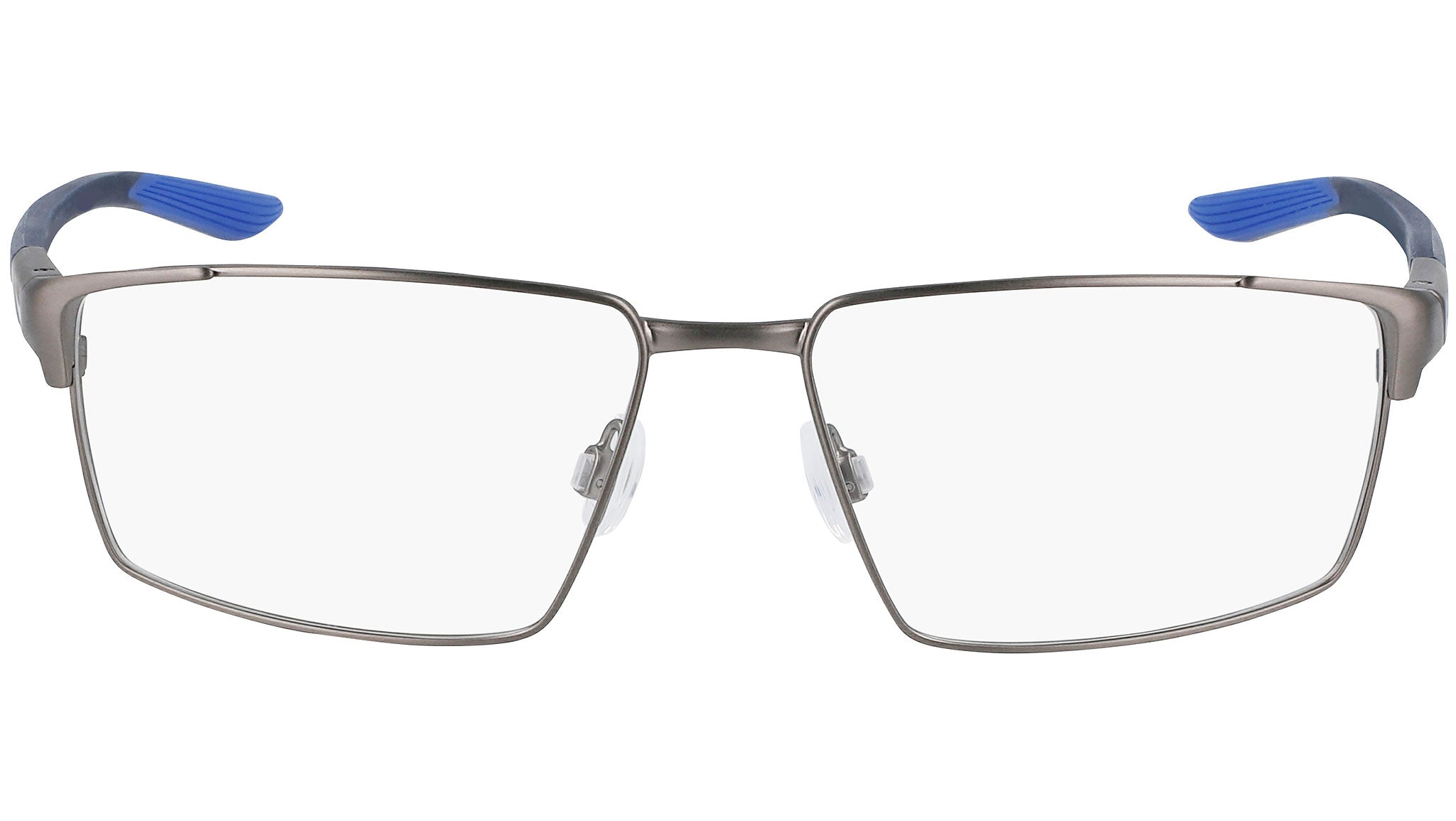 Nike Optical 8053 model featuring brushed gunmetal frame and matte obsidian temple. The stainless steel material is easier to tolerate because of the hypoallergenic materials that it is made from.